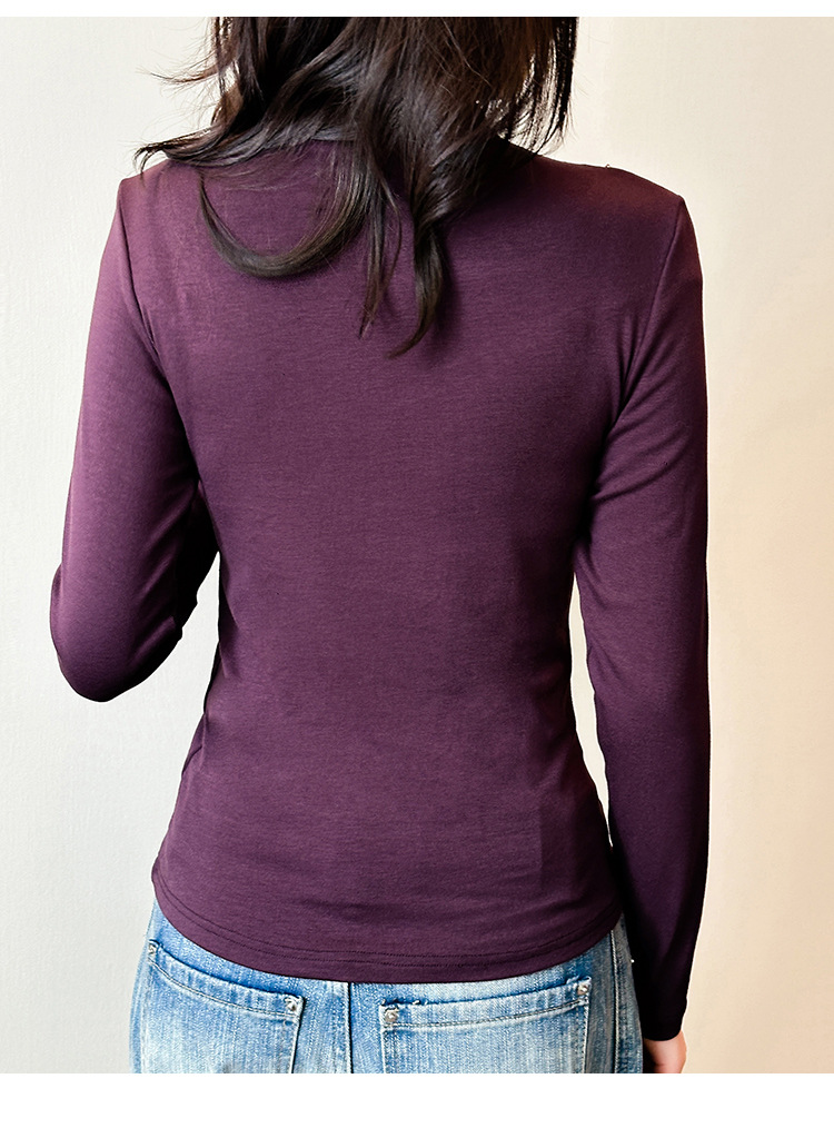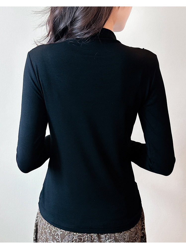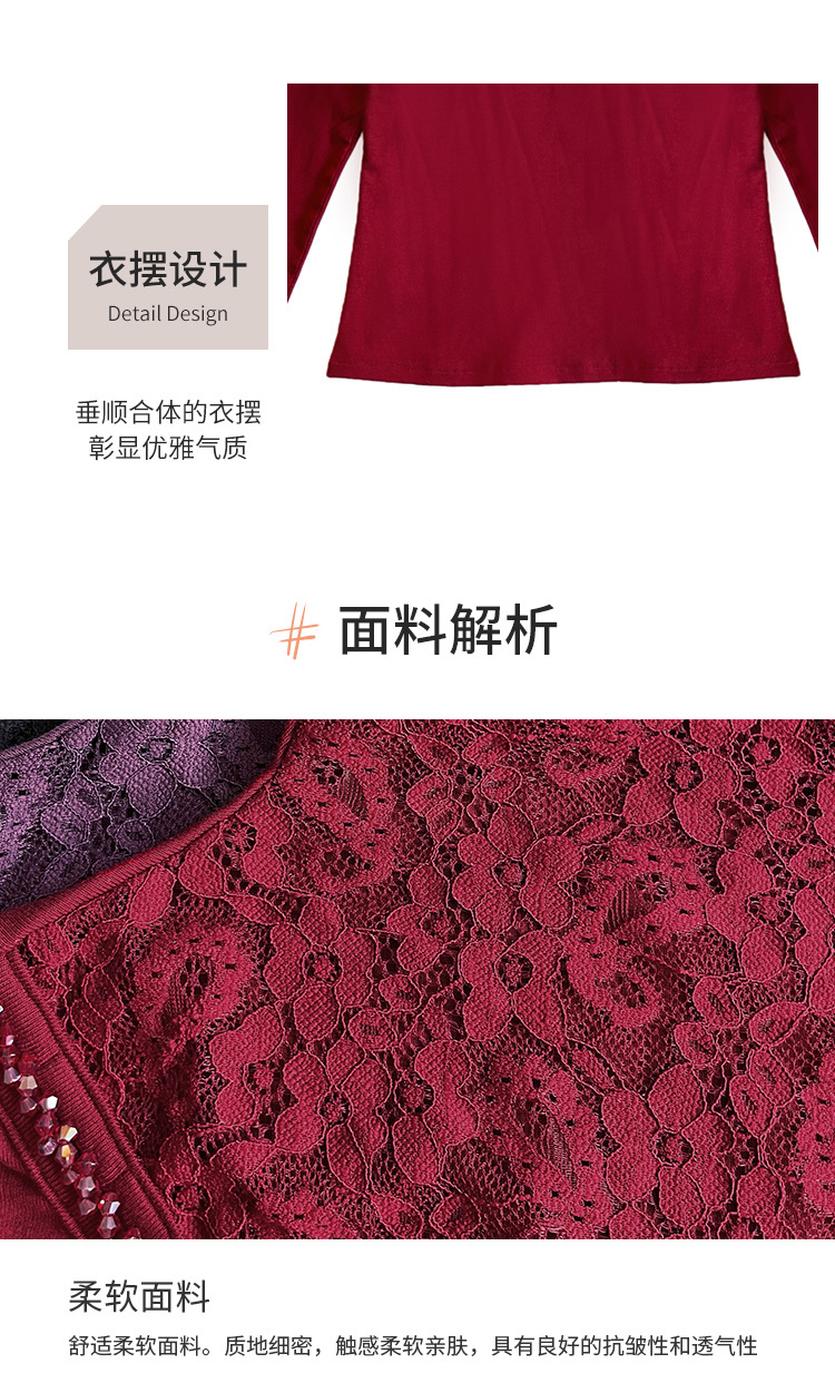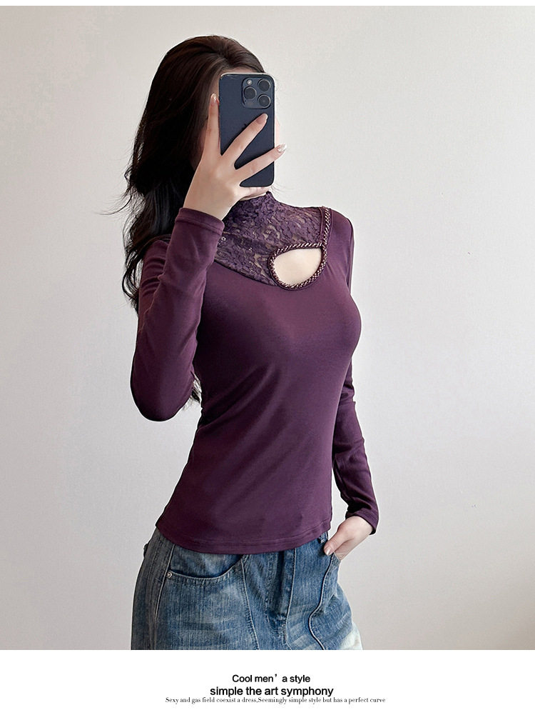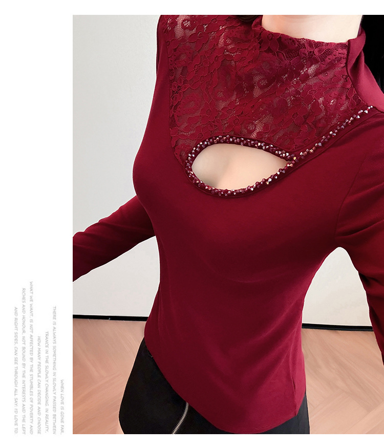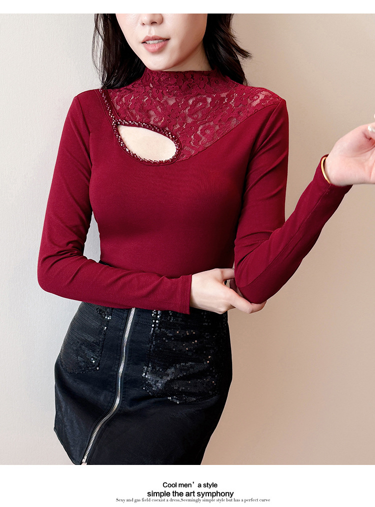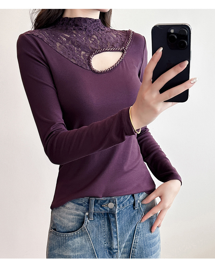 KQL 359H8362加厚磨毛蕾丝拼接半高领长袖订珠t恤修身打底衫