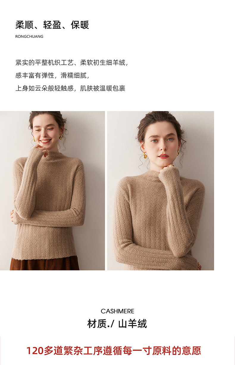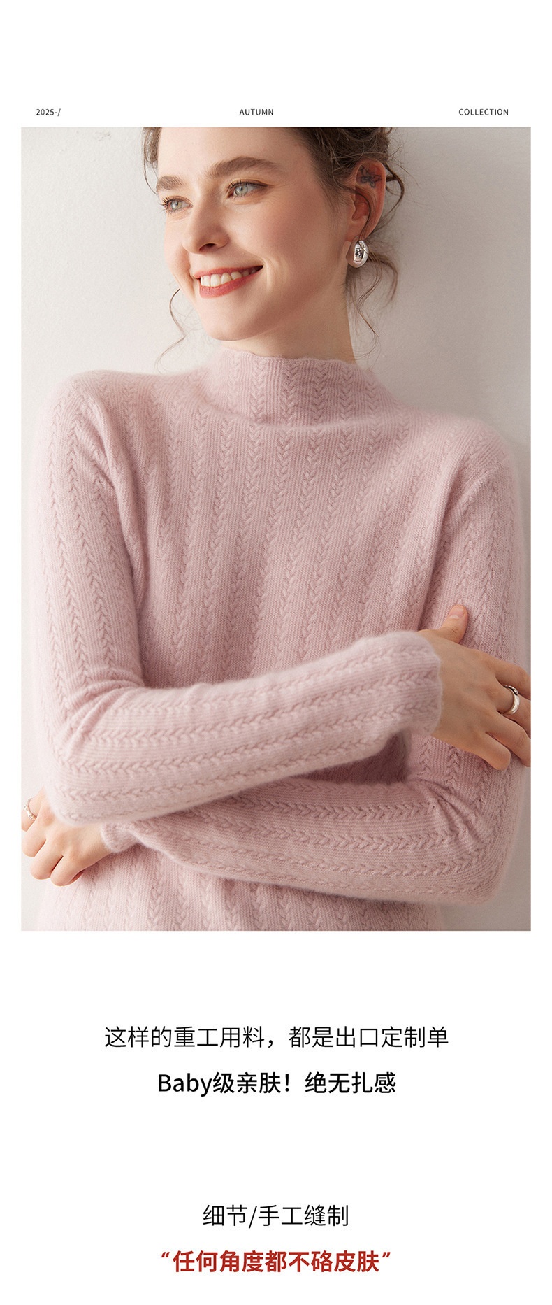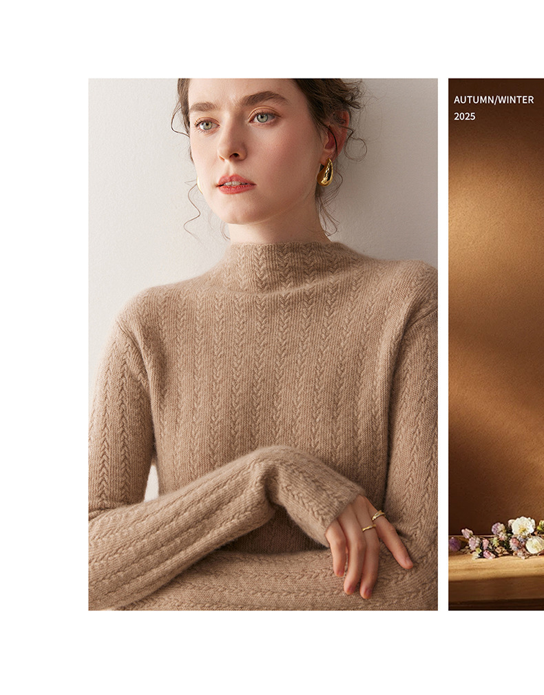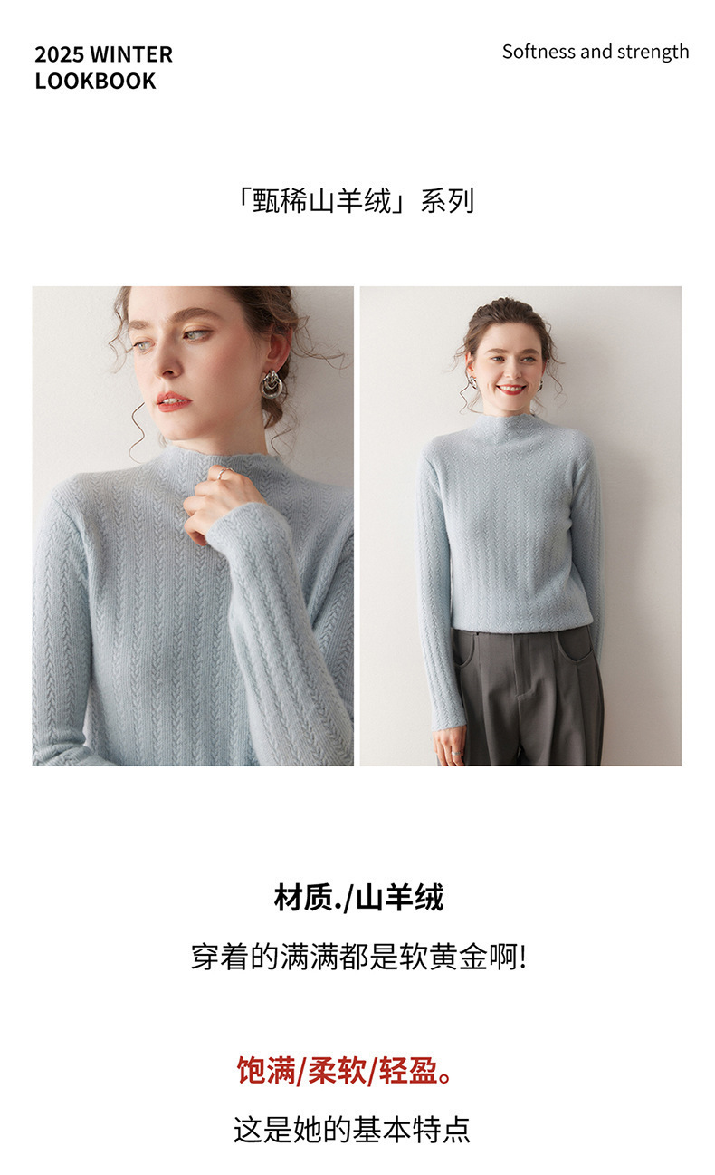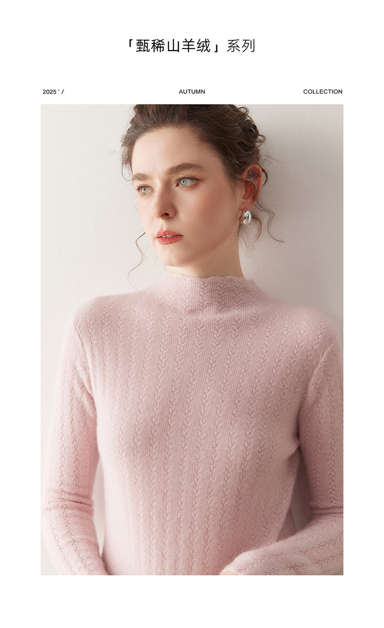 「高货QJ」全新升级【铂金会员404/天猫539/差价135】(92115)洛诗琳半高领树叶纹提花羊绒衫2025秋冬新款修身显瘦毛衣