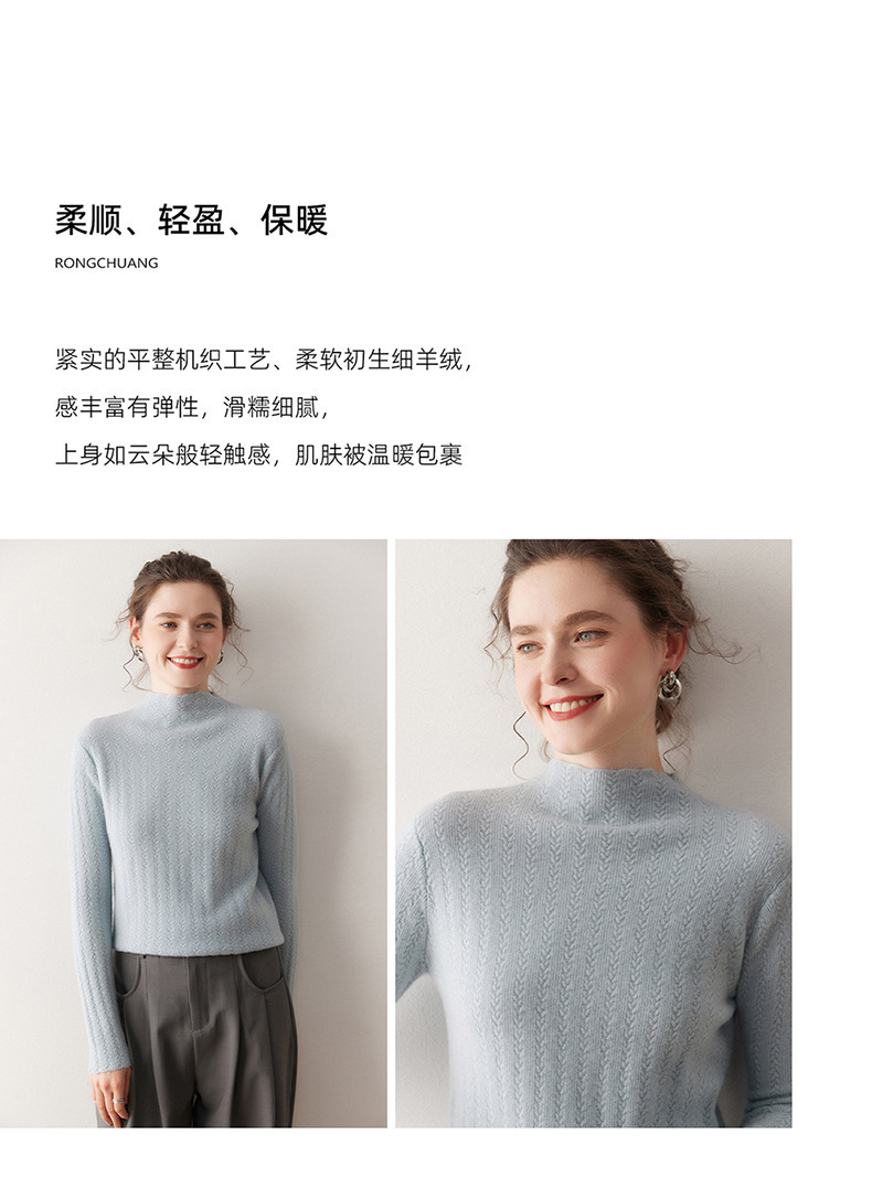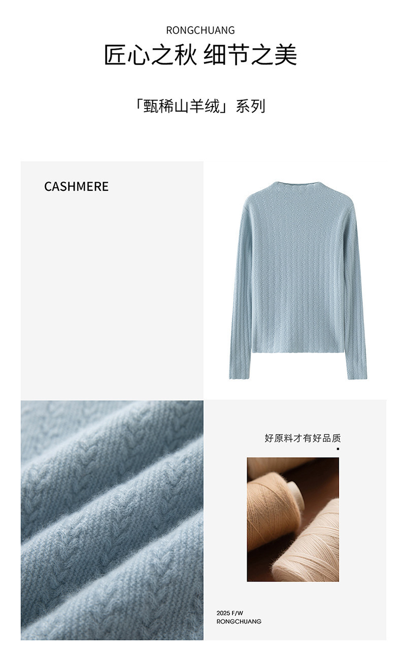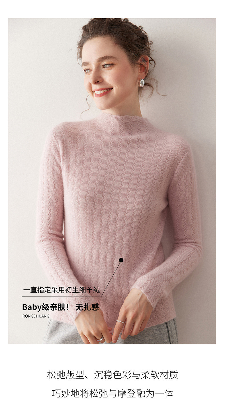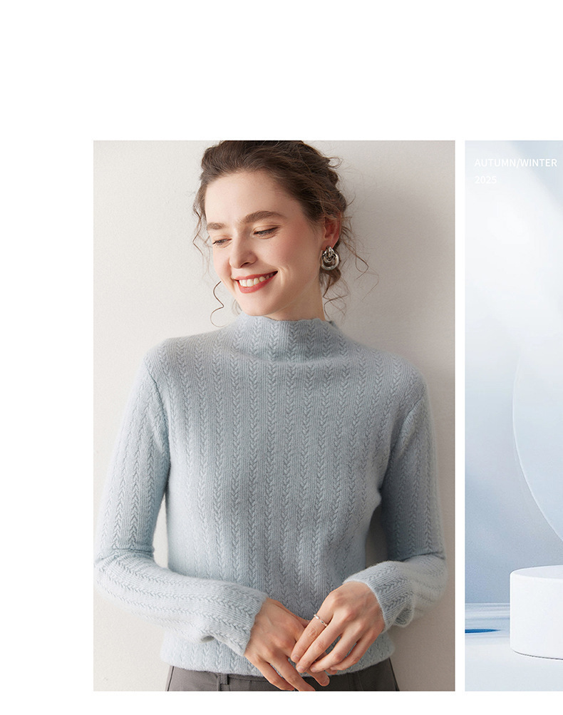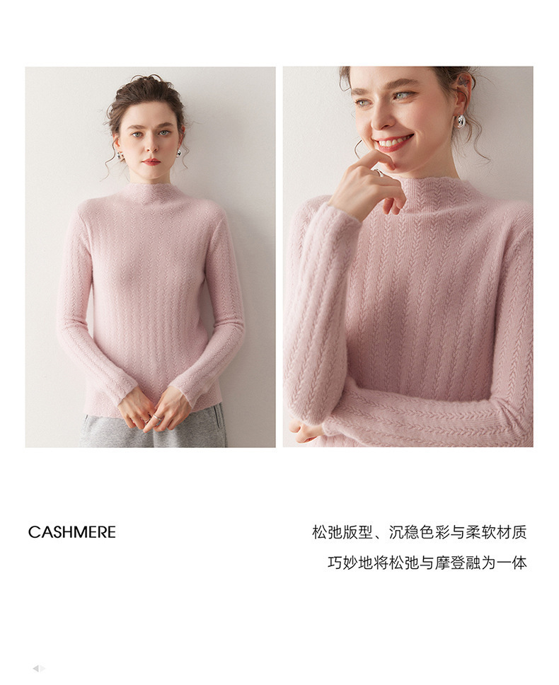 「高货QJ」全新升级【铂金会员404/天猫539/差价135】(92115)洛诗琳半高领树叶纹提花羊绒衫2025秋冬新款修身显瘦毛衣
