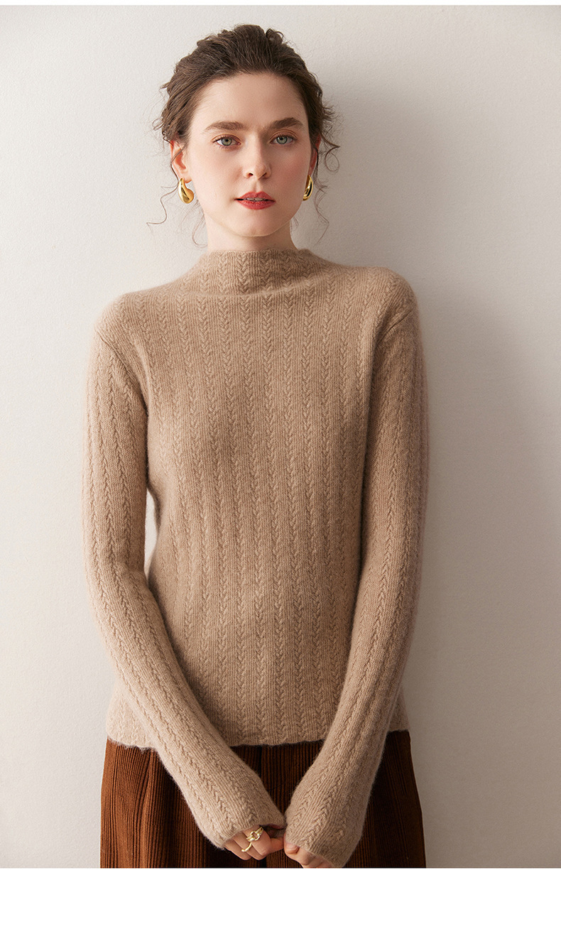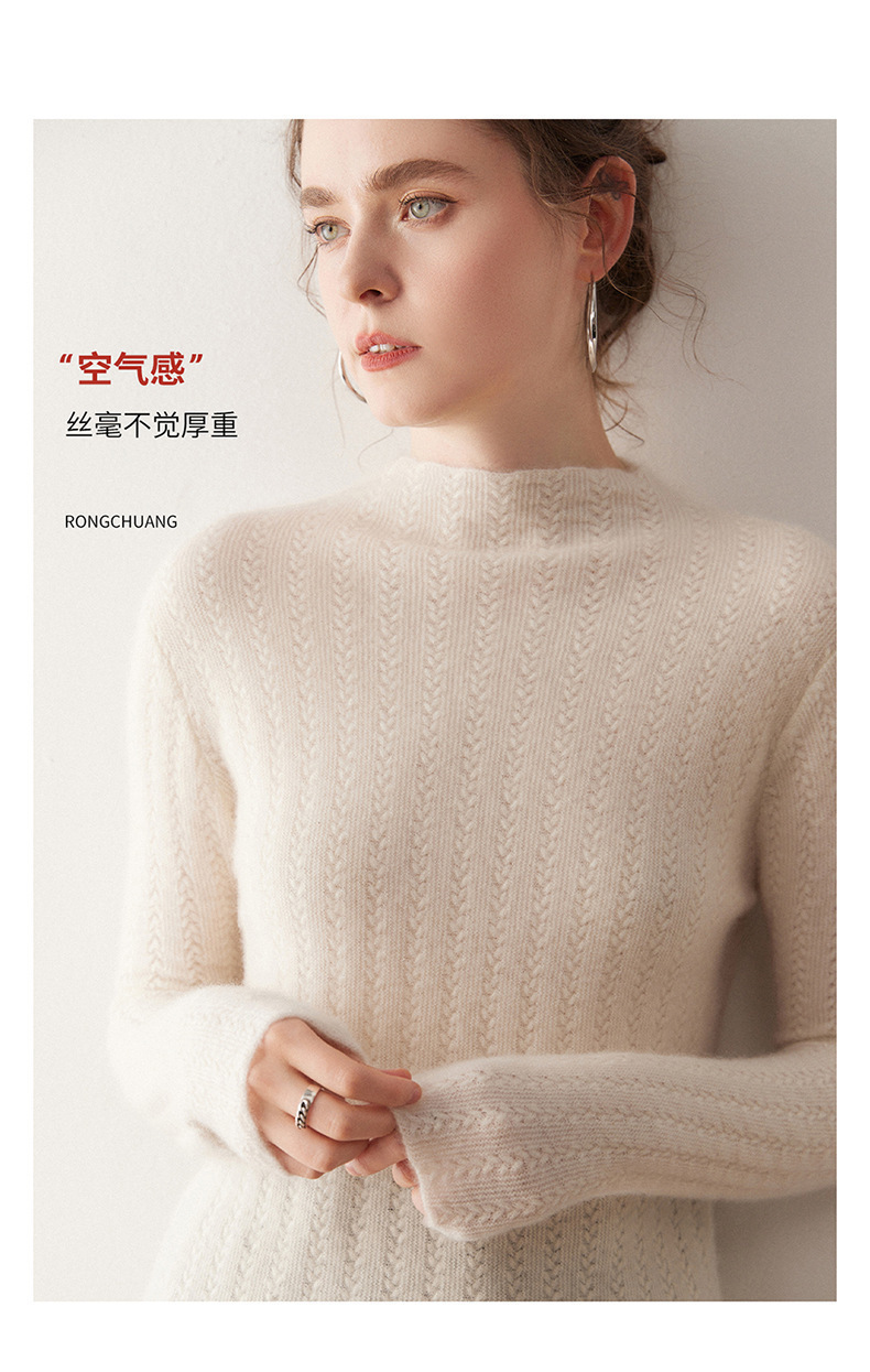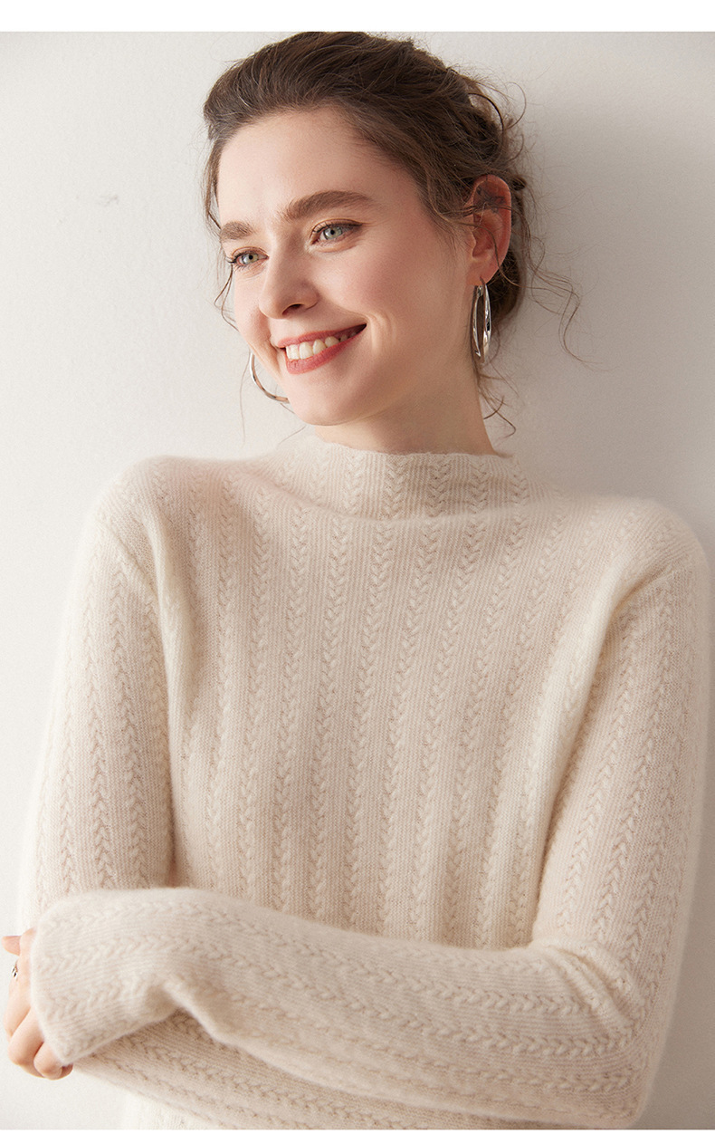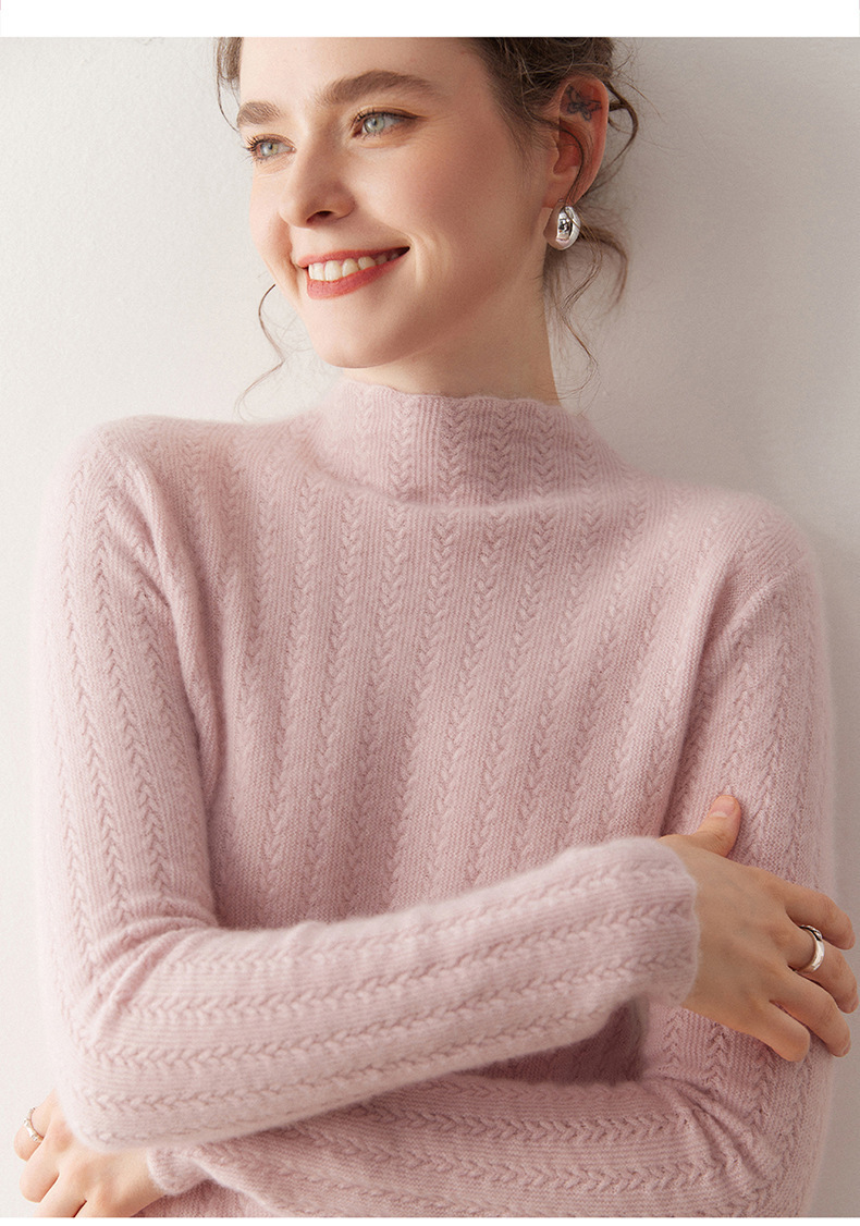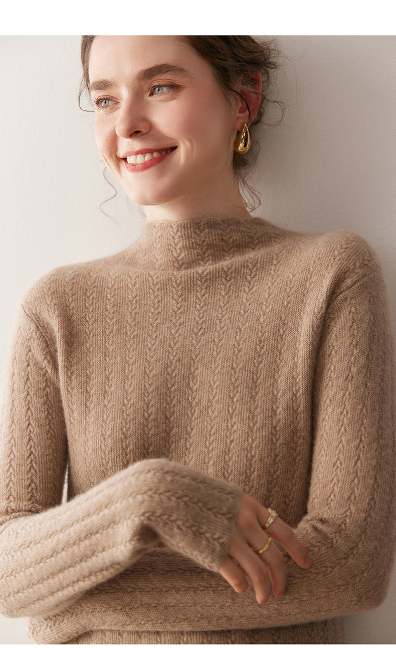 「高货QJ」全新升级【铂金会员404/天猫539/差价135】(92115)洛诗琳半高领树叶纹提花羊绒衫2025秋冬新款修身显瘦毛衣