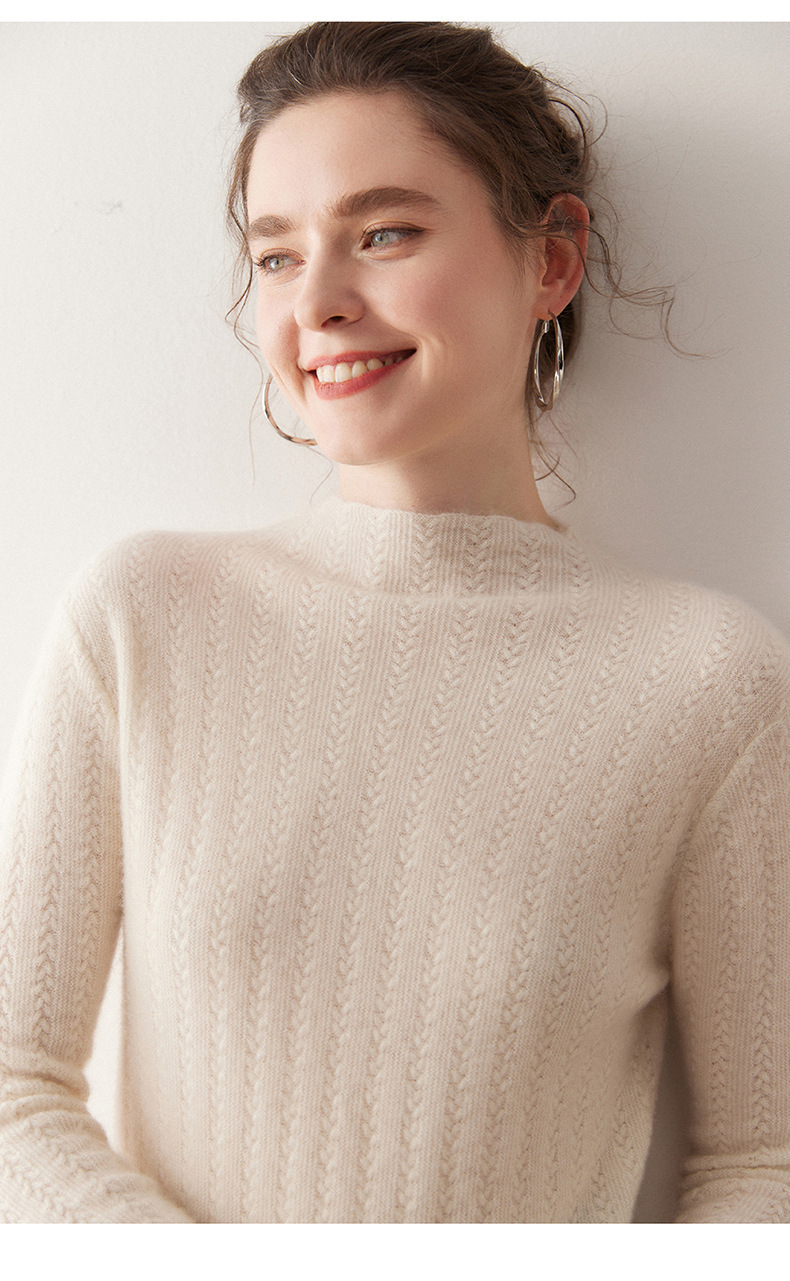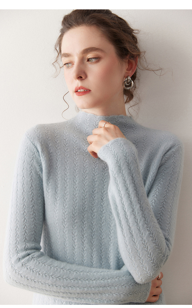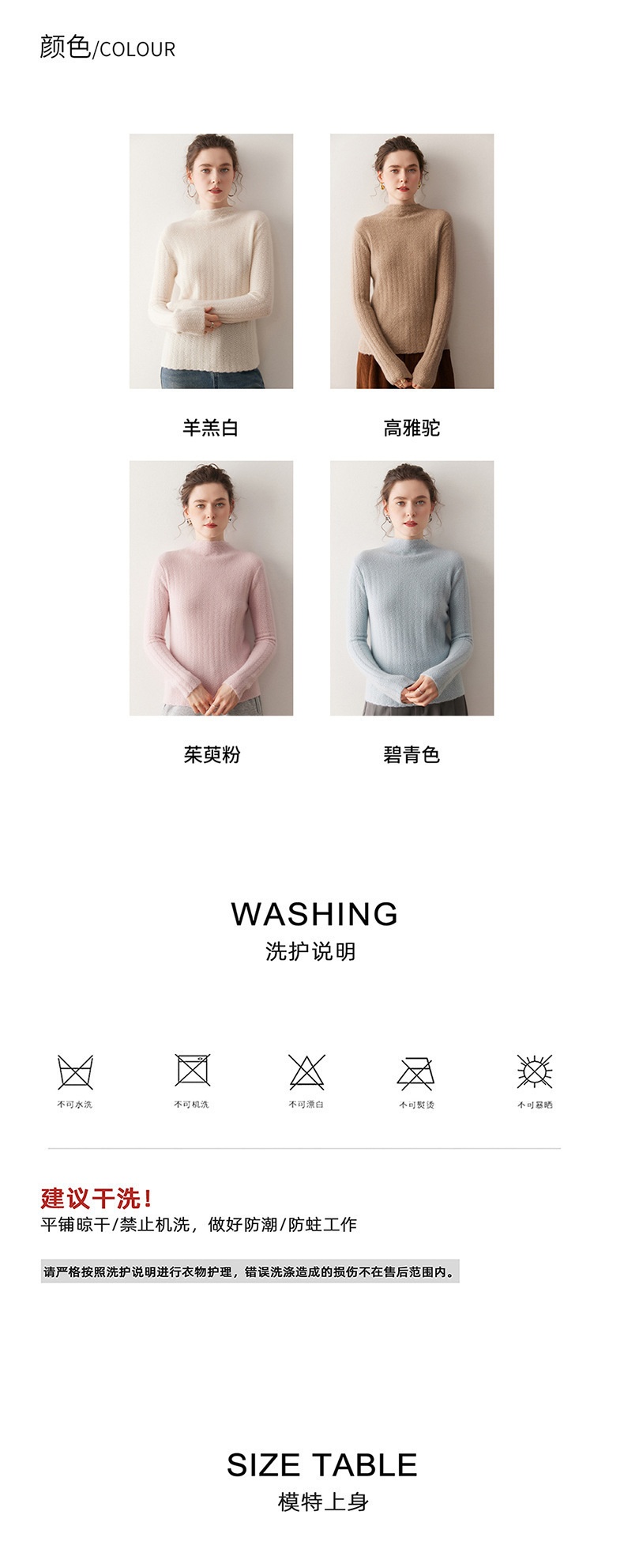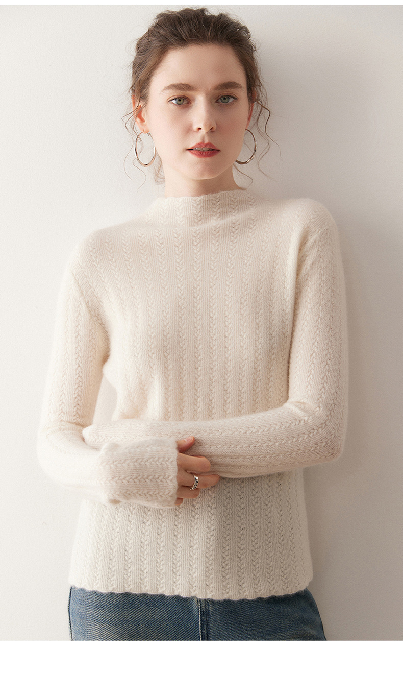 「高货QJ」全新升级【铂金会员404/天猫539/差价135】(92115)洛诗琳半高领树叶纹提花羊绒衫2025秋冬新款修身显瘦毛衣