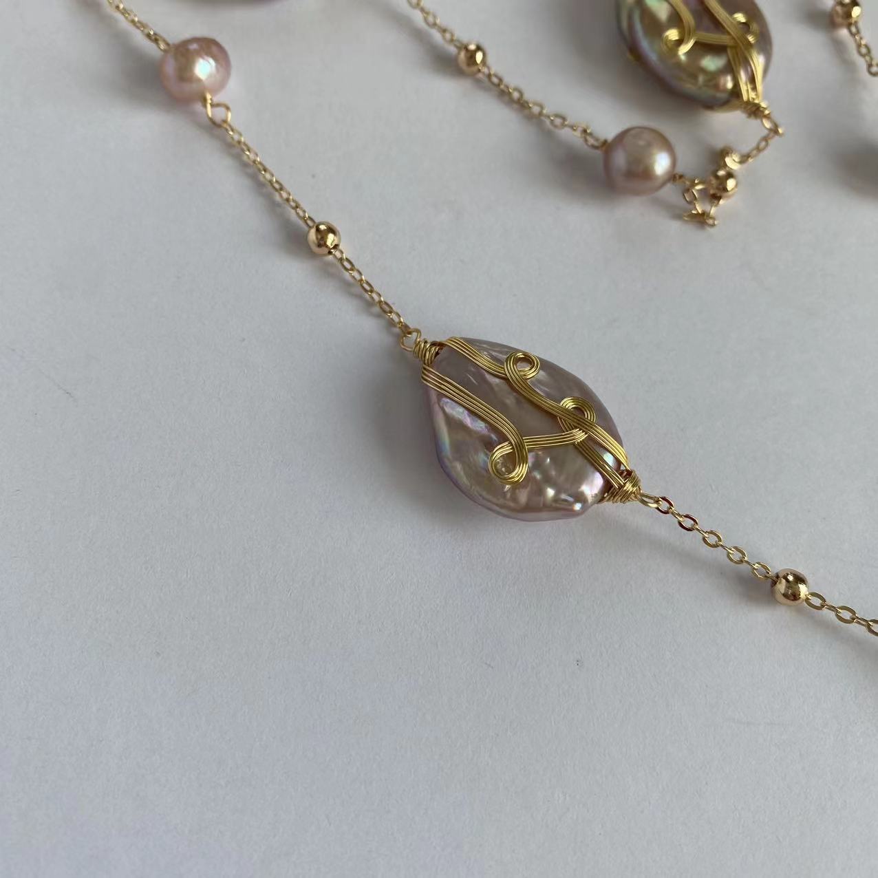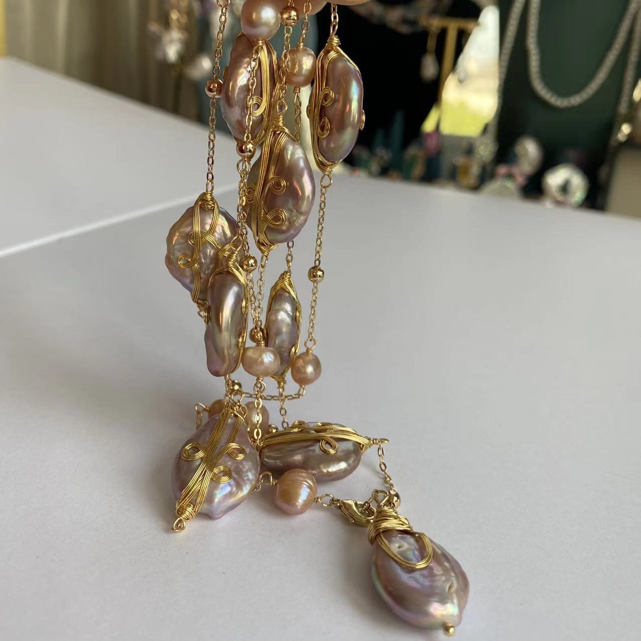 天然圆形巴洛克淡水珍珠碎花多戴项链长链90cm个性百搭仙女超仙女 商品图4