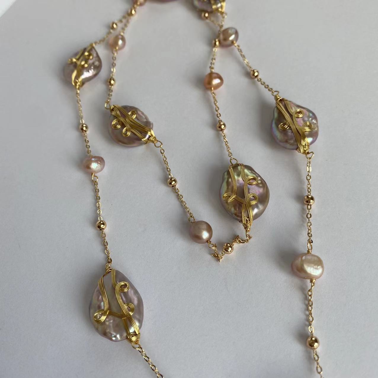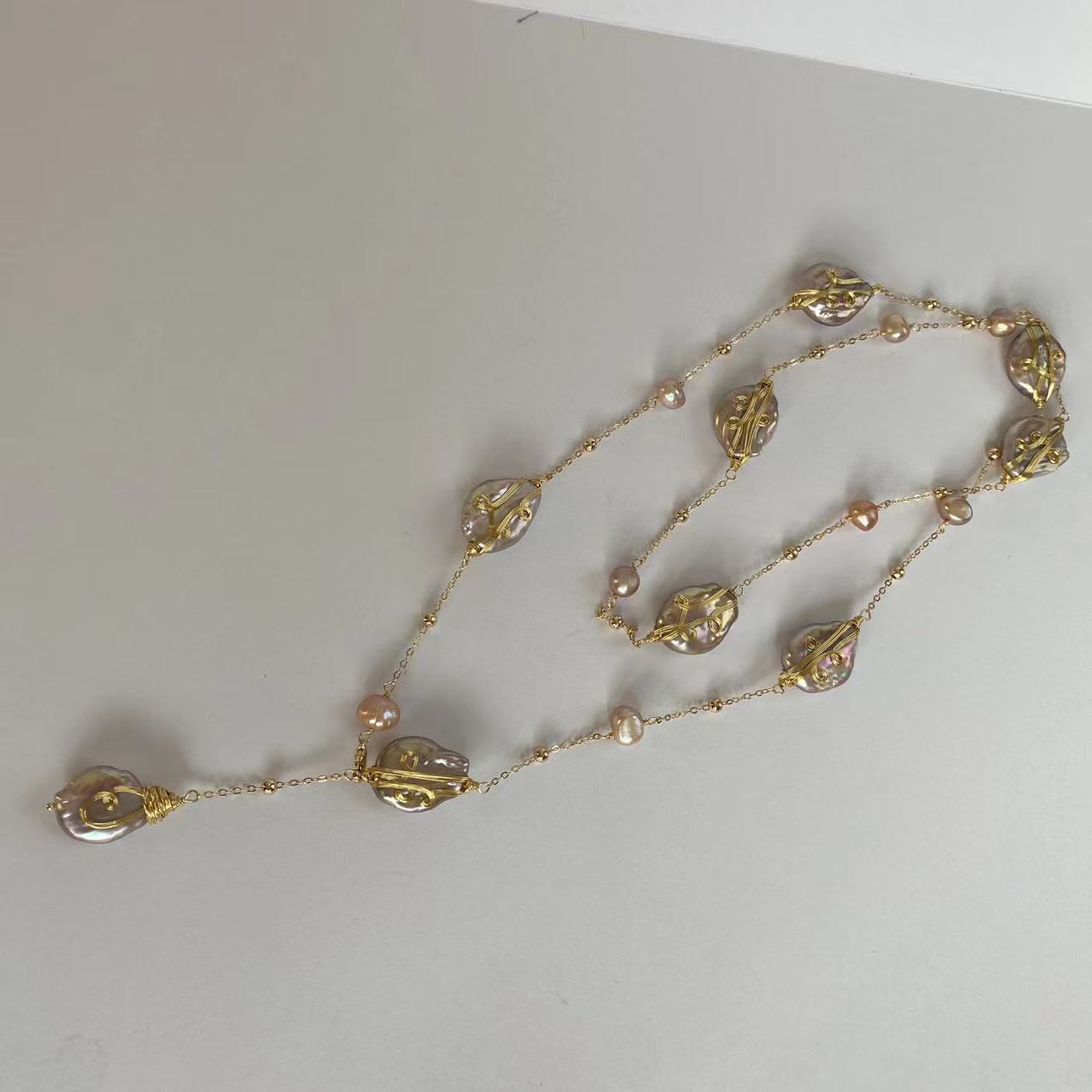 天然圆形巴洛克淡水珍珠碎花多戴项链长链90cm个性百搭仙女超仙女 商品图0