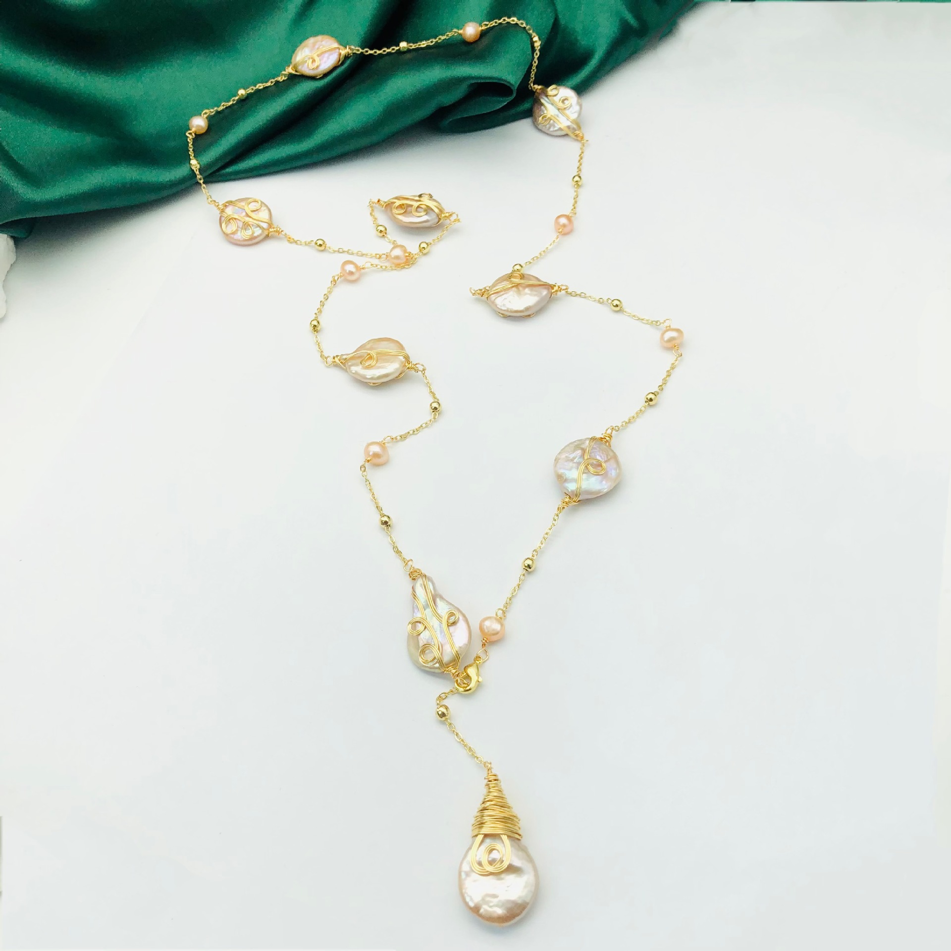 天然圆形巴洛克淡水珍珠碎花多戴项链长链90cm个性百搭仙女超仙女 商品图1