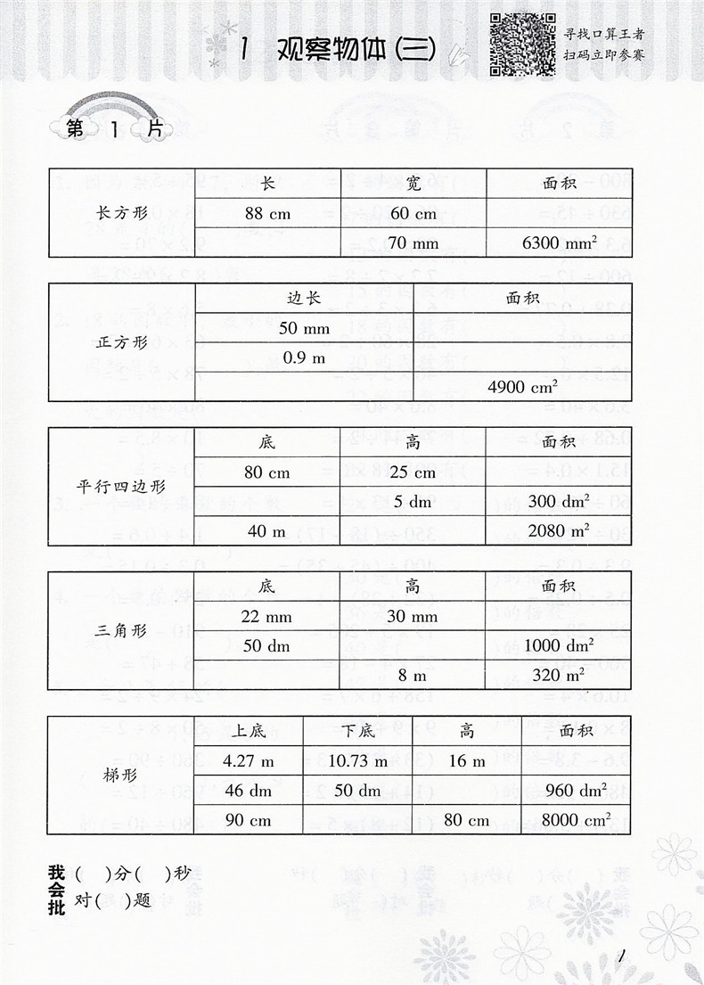 义务教育教材小学数学口算训练五年级下册R人教版唐木文编