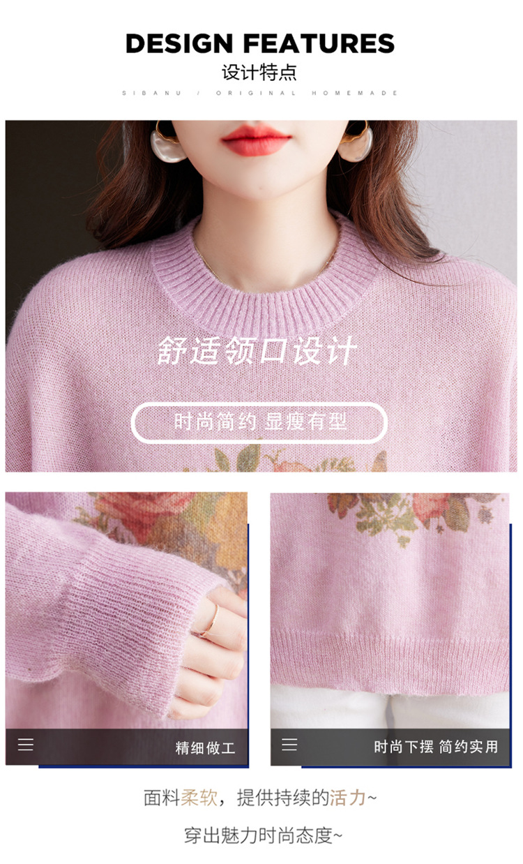 SZ1286浪漫优雅数码印花马海毛毛衣女2024秋冬新款圆领针织衫上衣女 商品图4