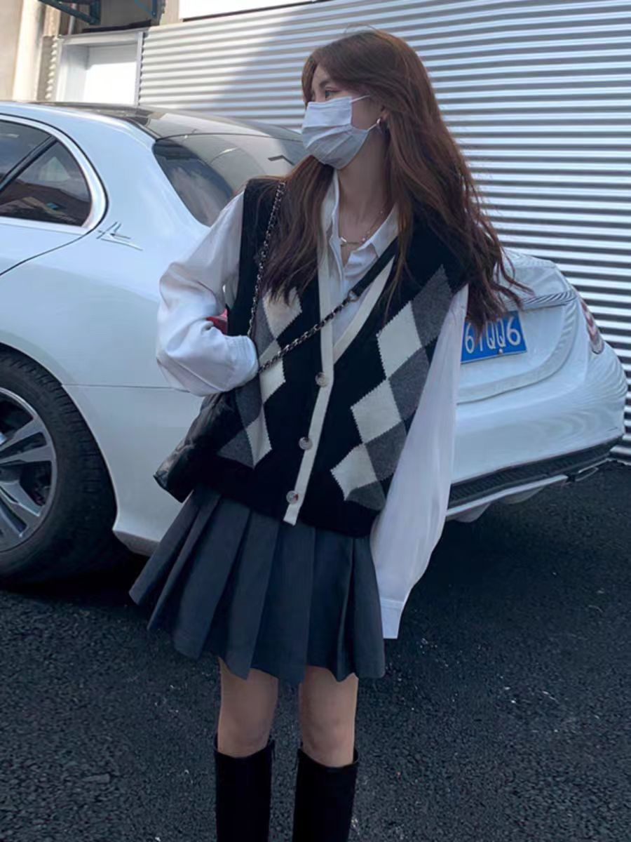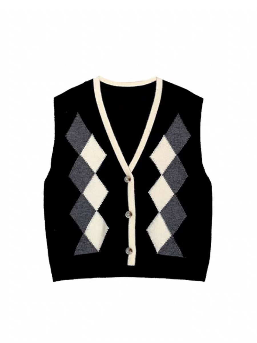 【孤品捡漏】G232黑色菱形格针织马甲-喜出