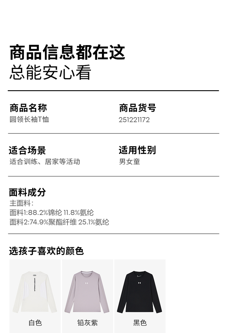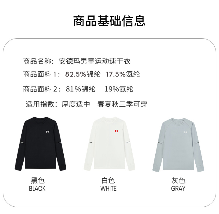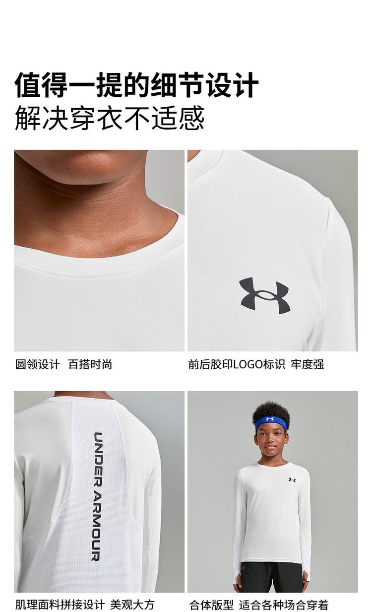 【12月-特惠福利】Under Armour安德玛男女童新款吸湿排汗 速干透气 圆领打底长T 合集243124169/251221172/251121133/243124165