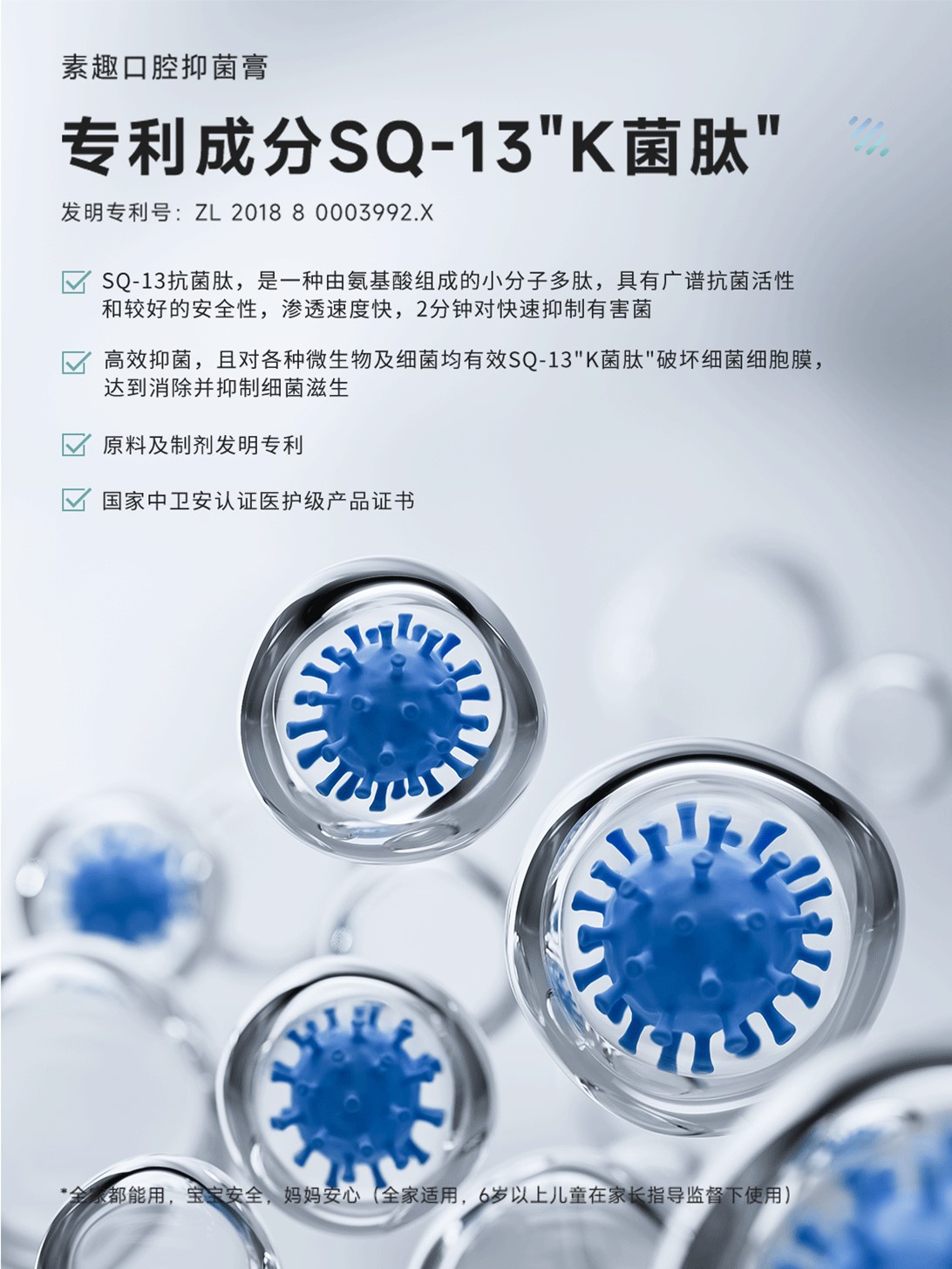 舞友特别福利,拍一发四:【SQ-13抗菌肽】口腔抑菌膏*1支+纤柔炫彩牙刷*2只+20g抑菌体验装
