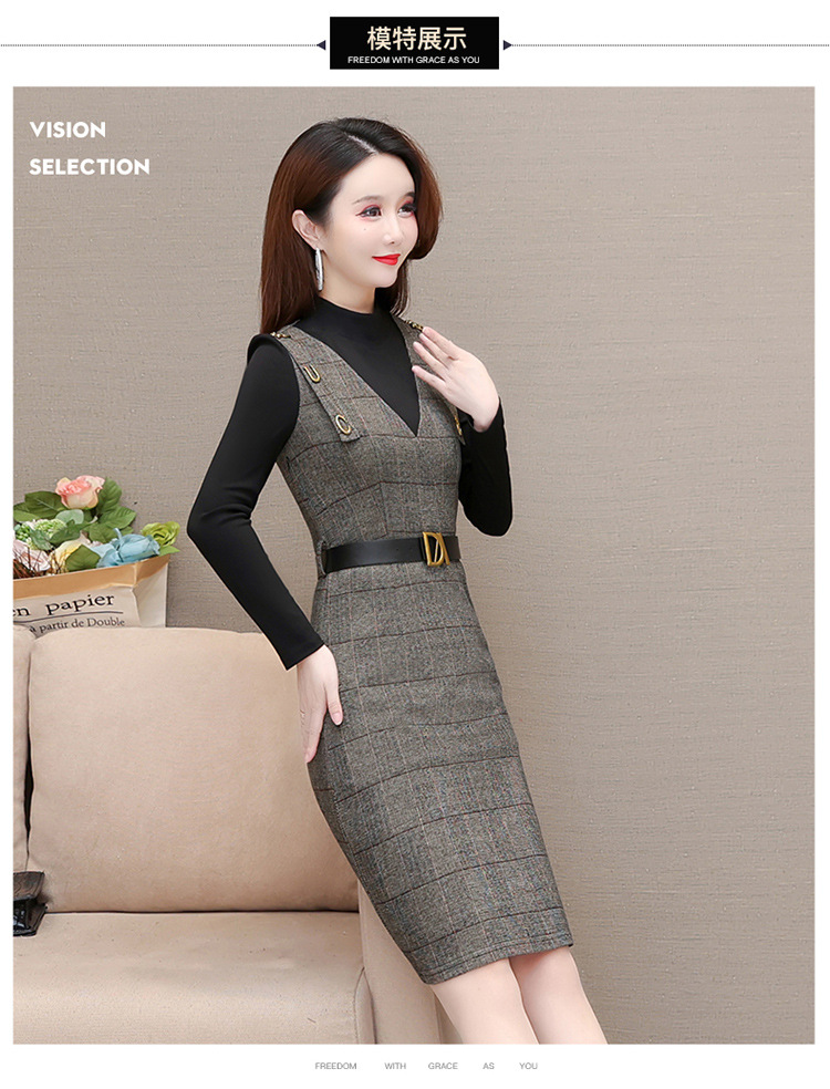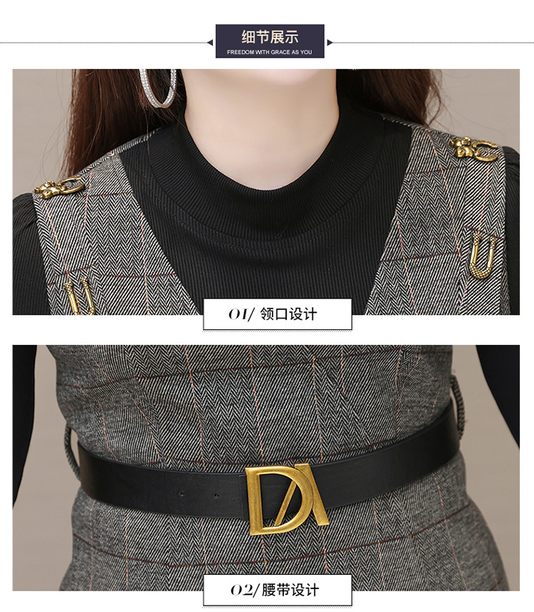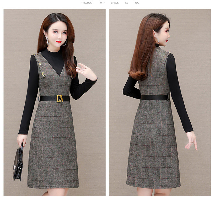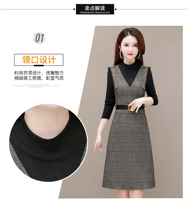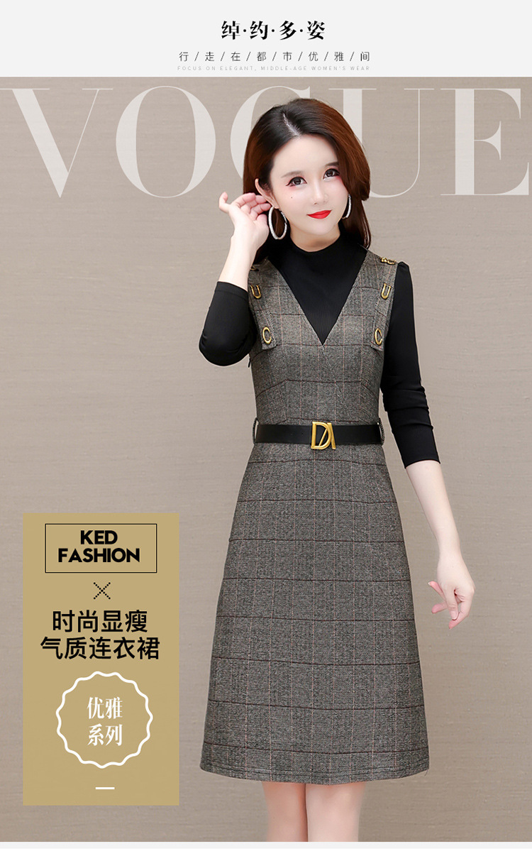 QYM M958 -Y厚款连衣裙拼结假两件格纹裙时尚气质
