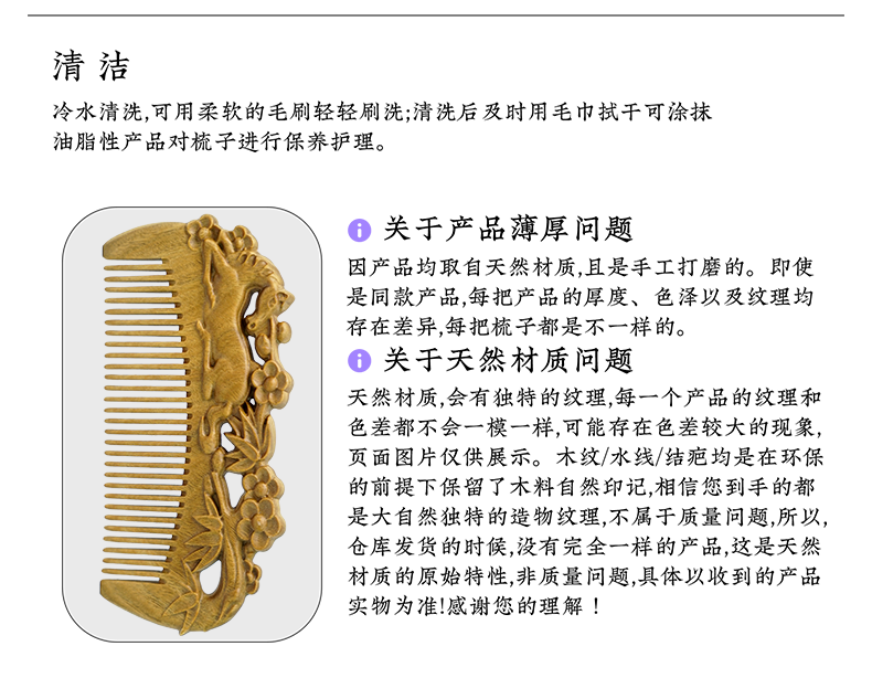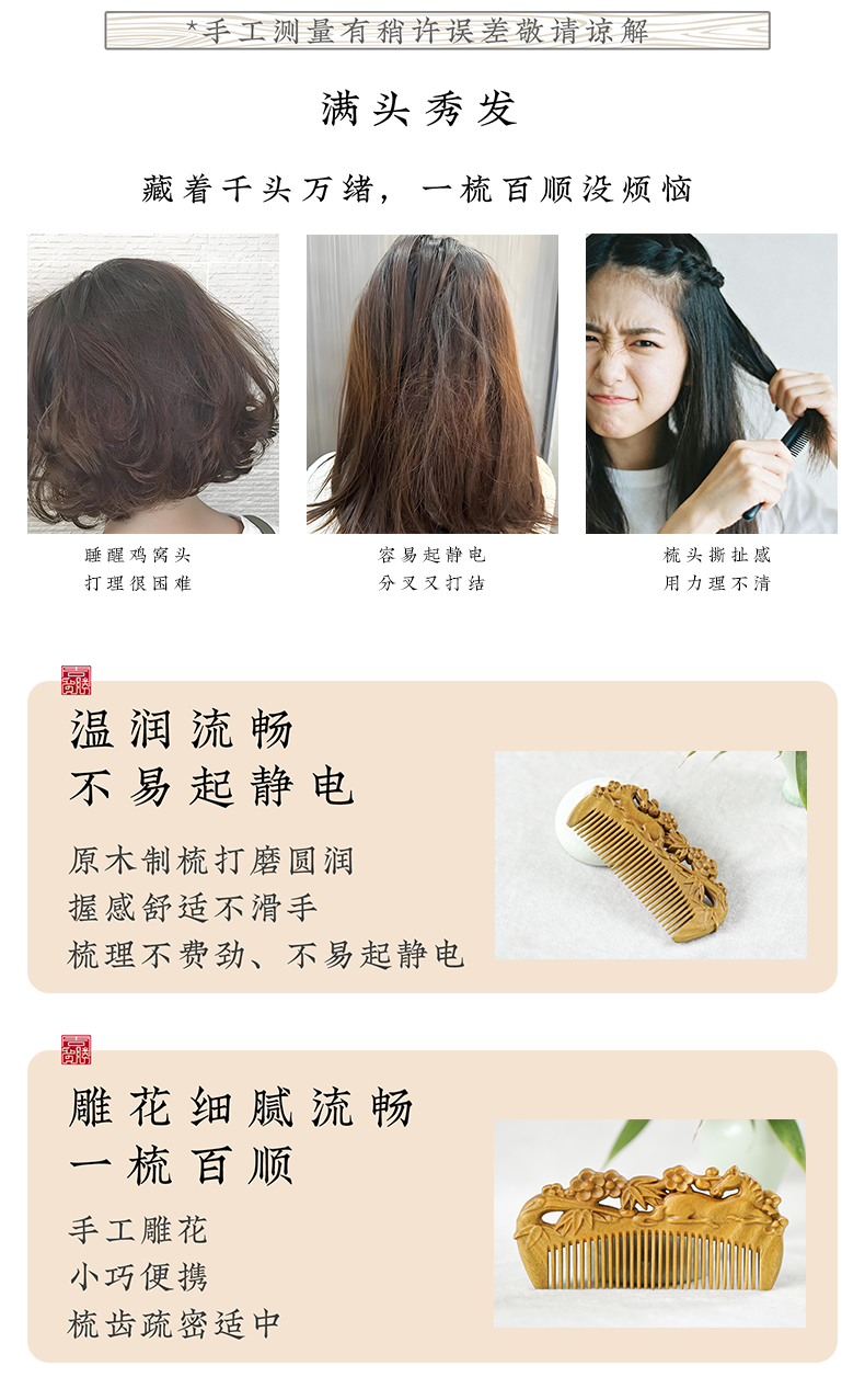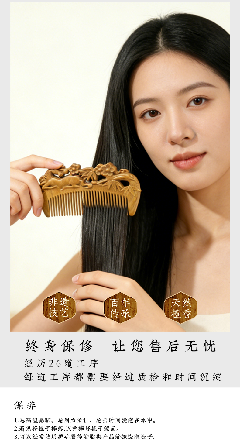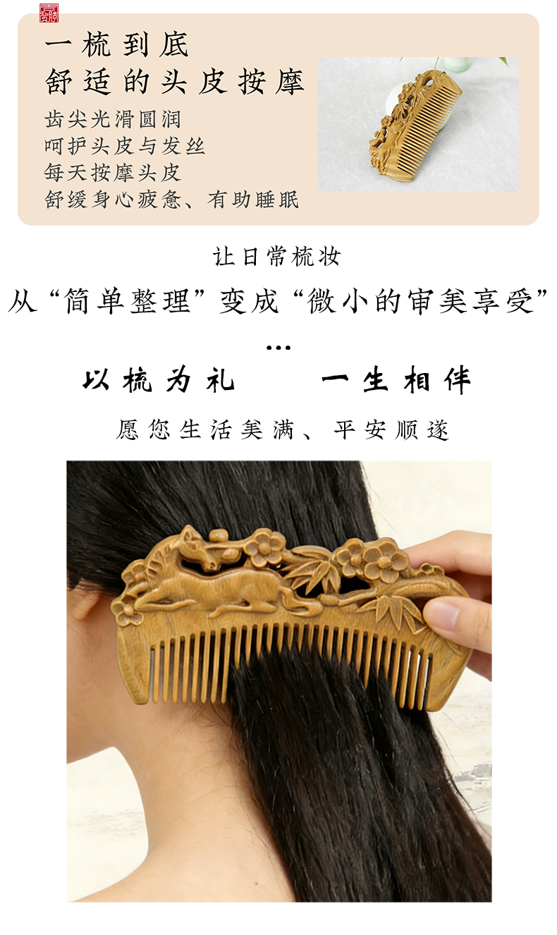 周广胜马年新品青梅竹马绿檀木雕刻梳子女士专用防静电顺发护发