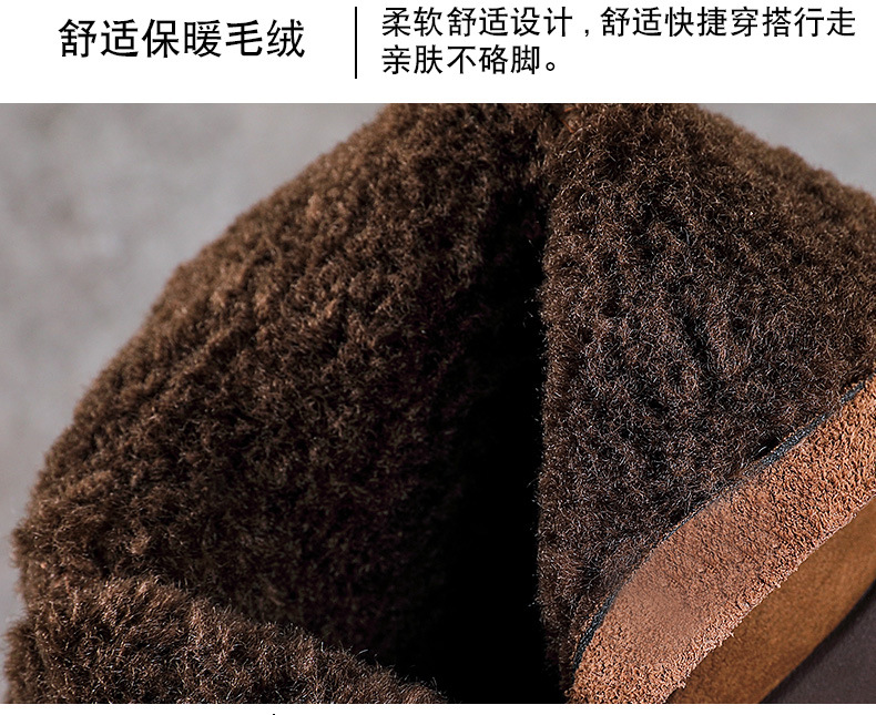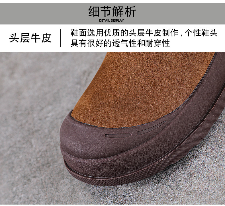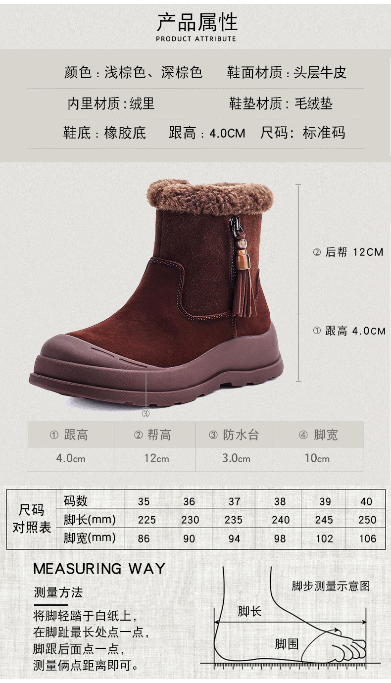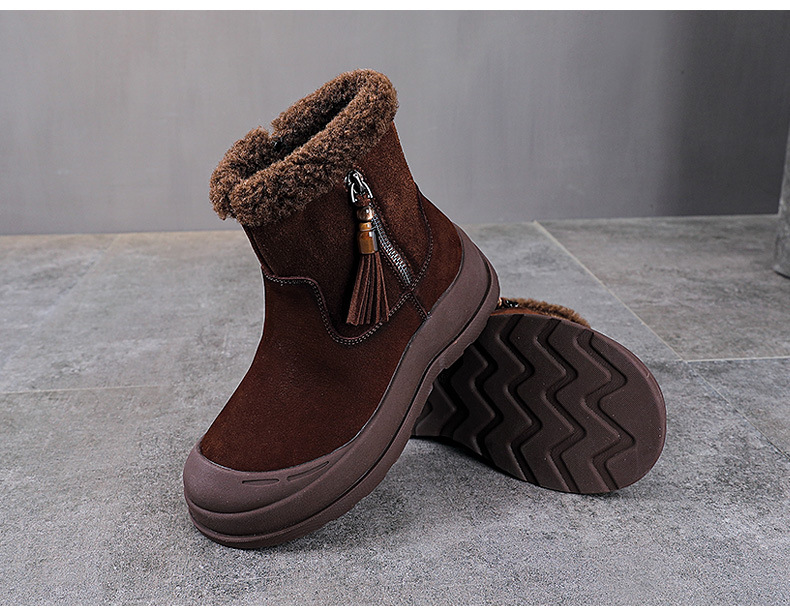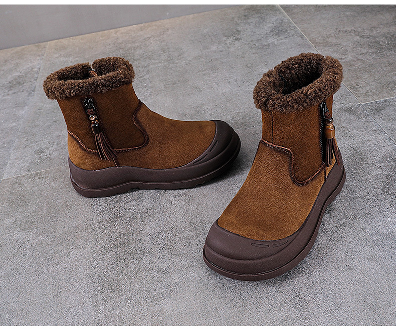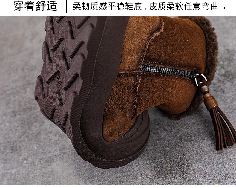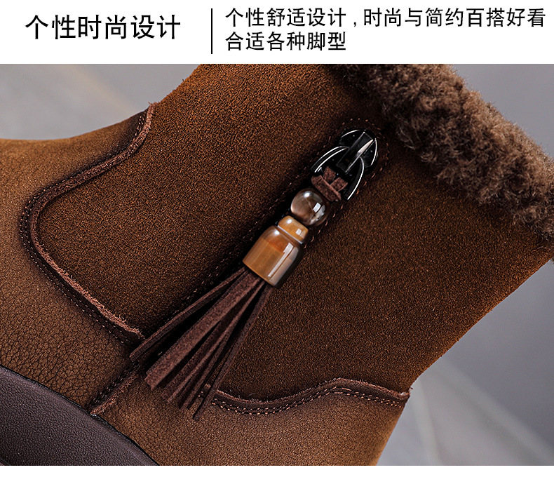 YR 2923真皮加绒复古短靴保暖舒适牛皮厚底雪地靴侧拉链流苏靴