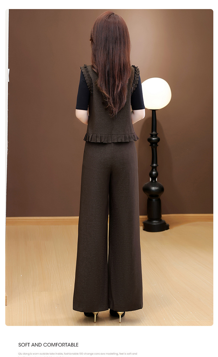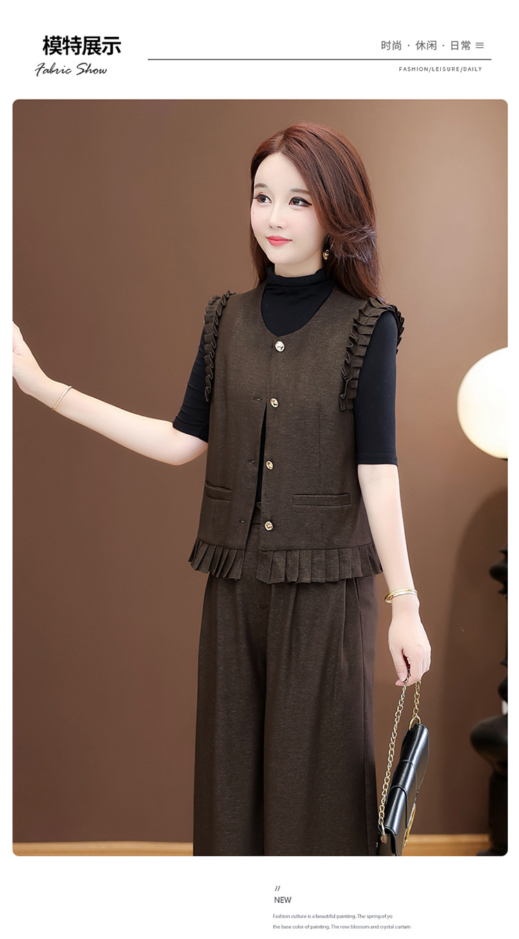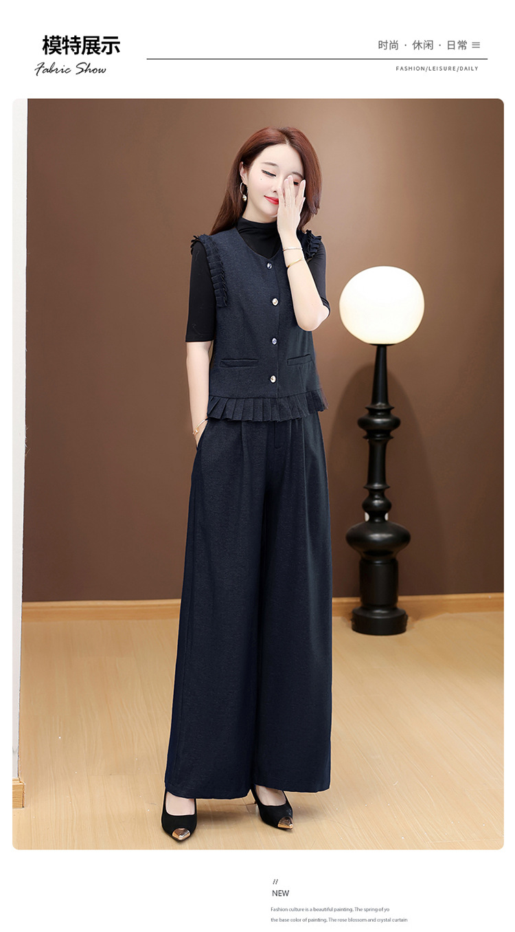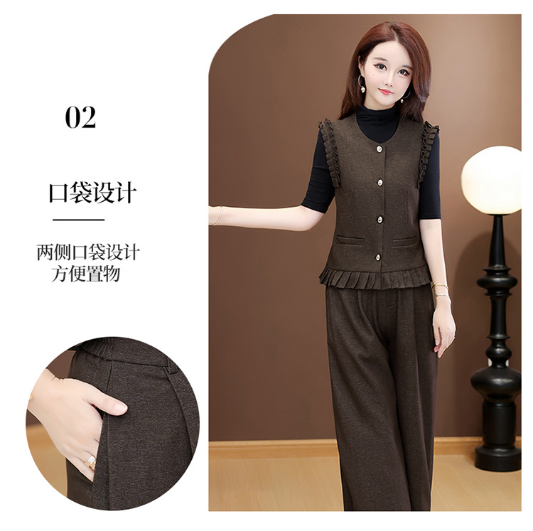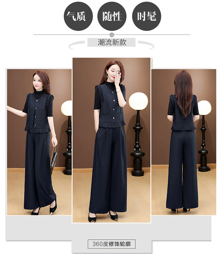 QYM 58C258507-Y时尚两件套裤高腰阔腿裤+木耳边褶皱马甲休闲套装 商品图3