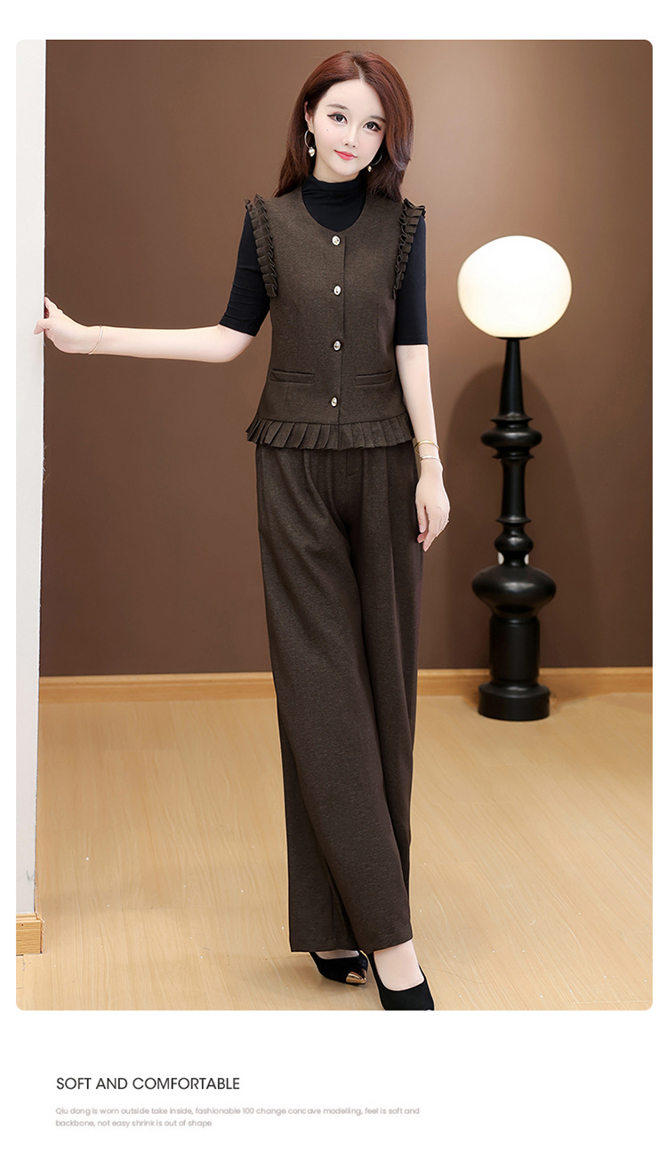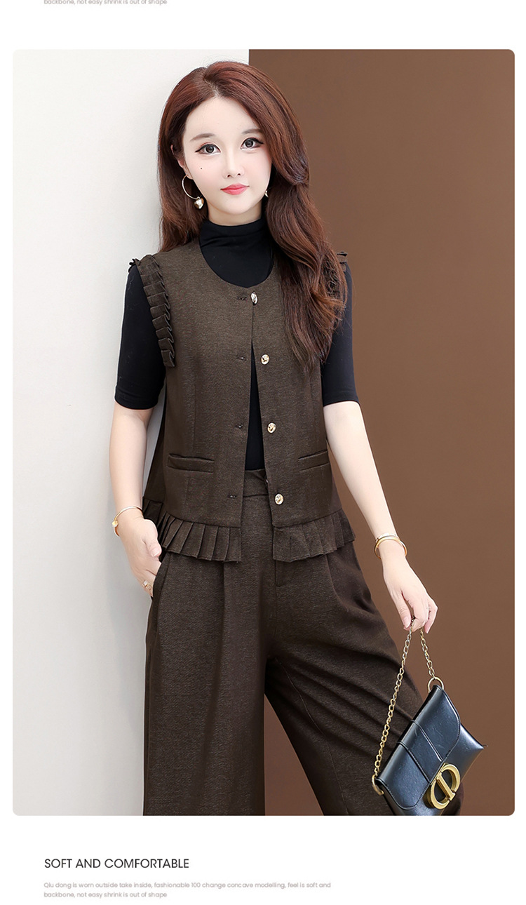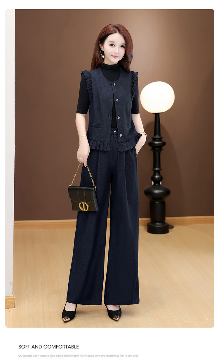 QYM 58C258507-Y时尚两件套裤高腰阔腿裤+木耳边褶皱马甲休闲套装 商品图4
