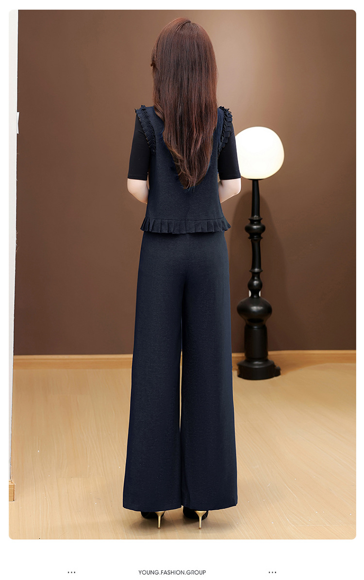 QYM 58C258507-Y时尚两件套裤高腰阔腿裤+木耳边褶皱马甲休闲套装 商品图2