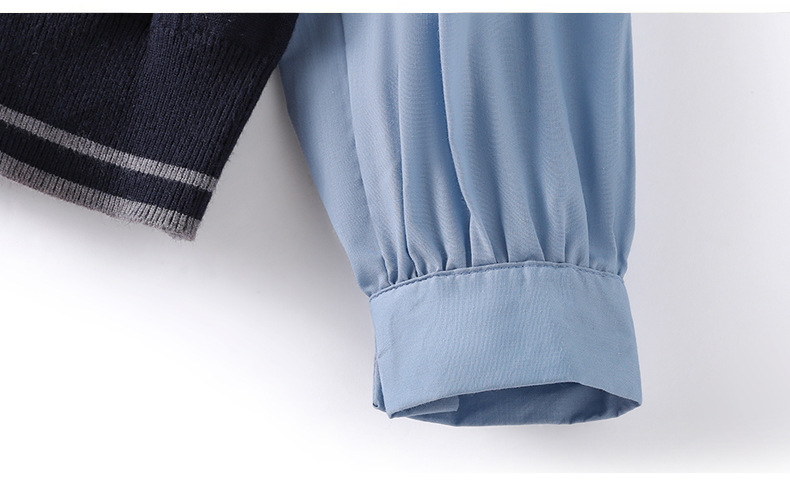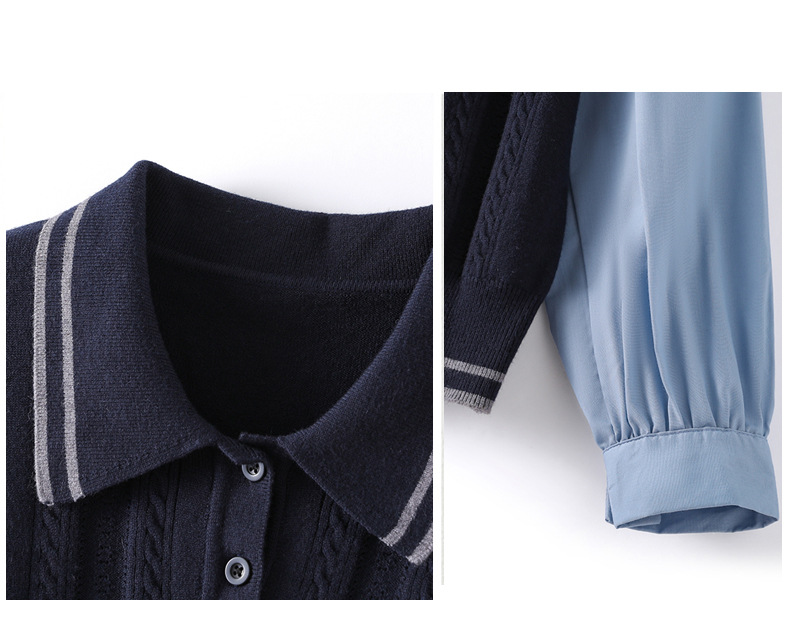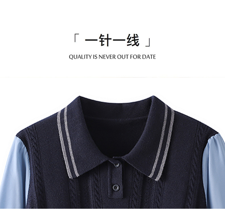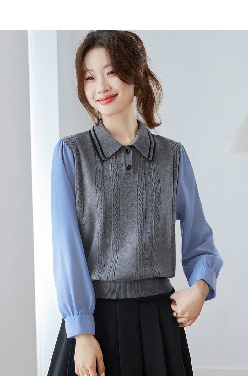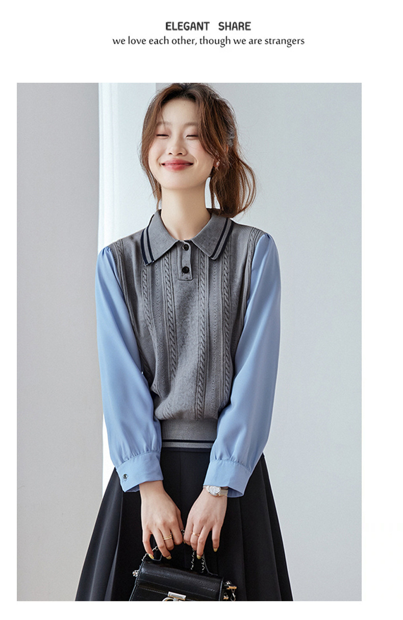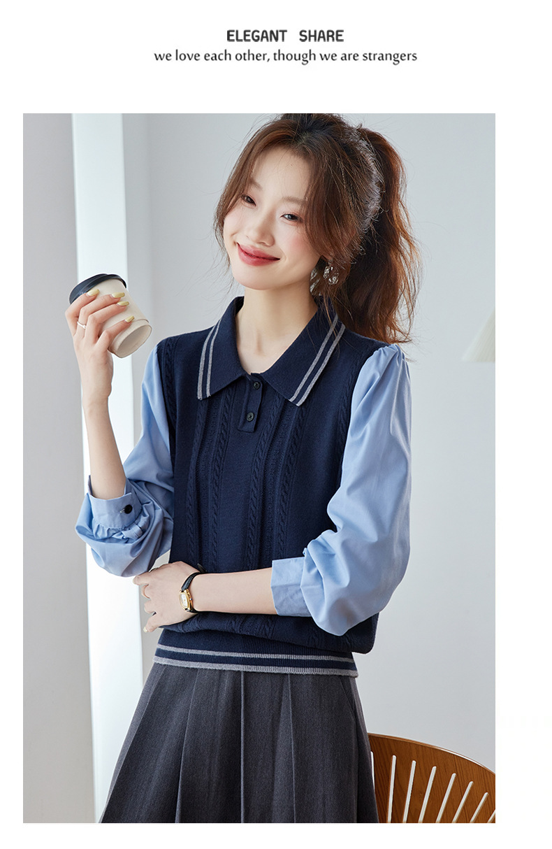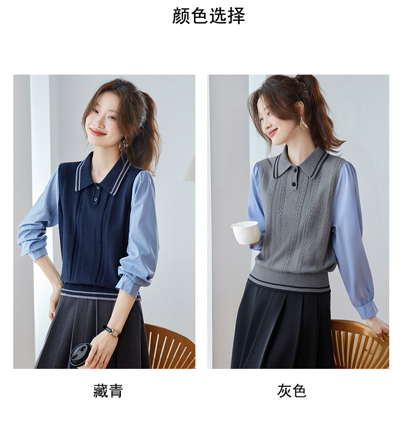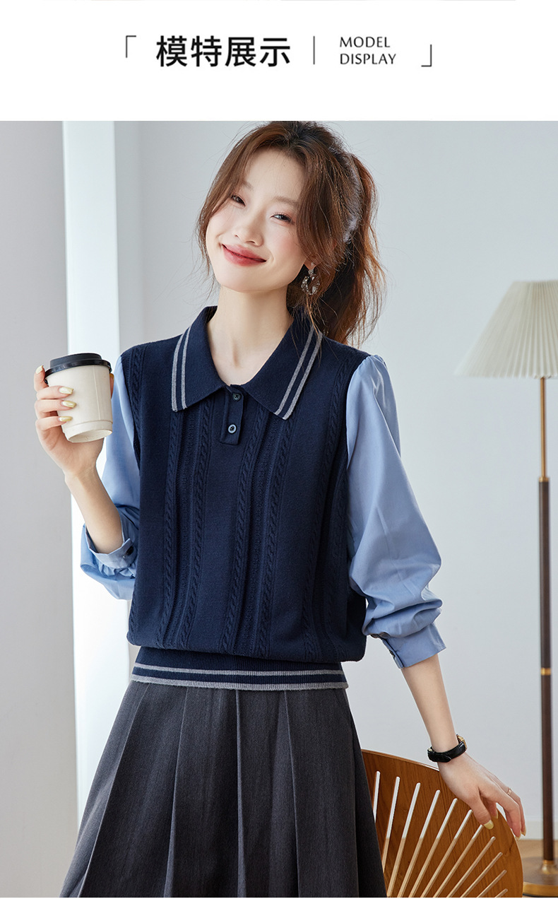 CCpolo领长袖衬衫拼接针织衫女春秋2025新款翻领小个子毛衣打底上衣