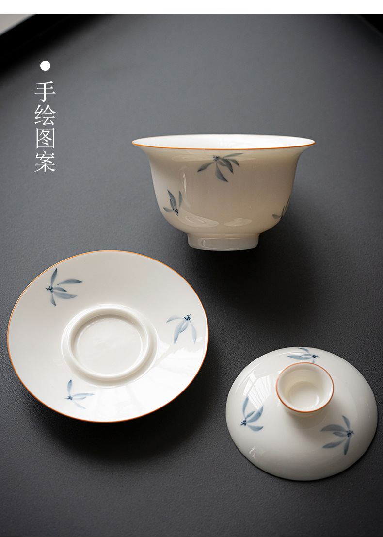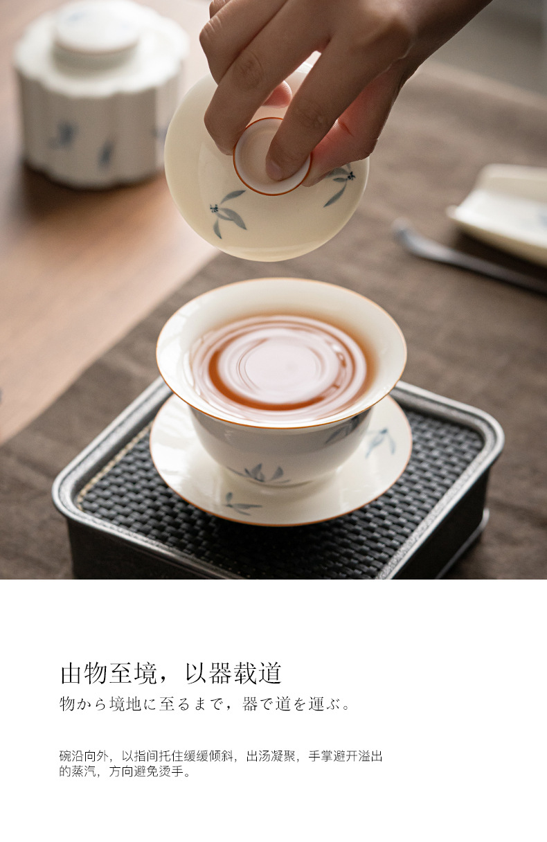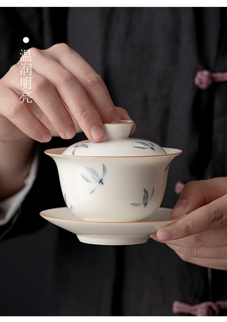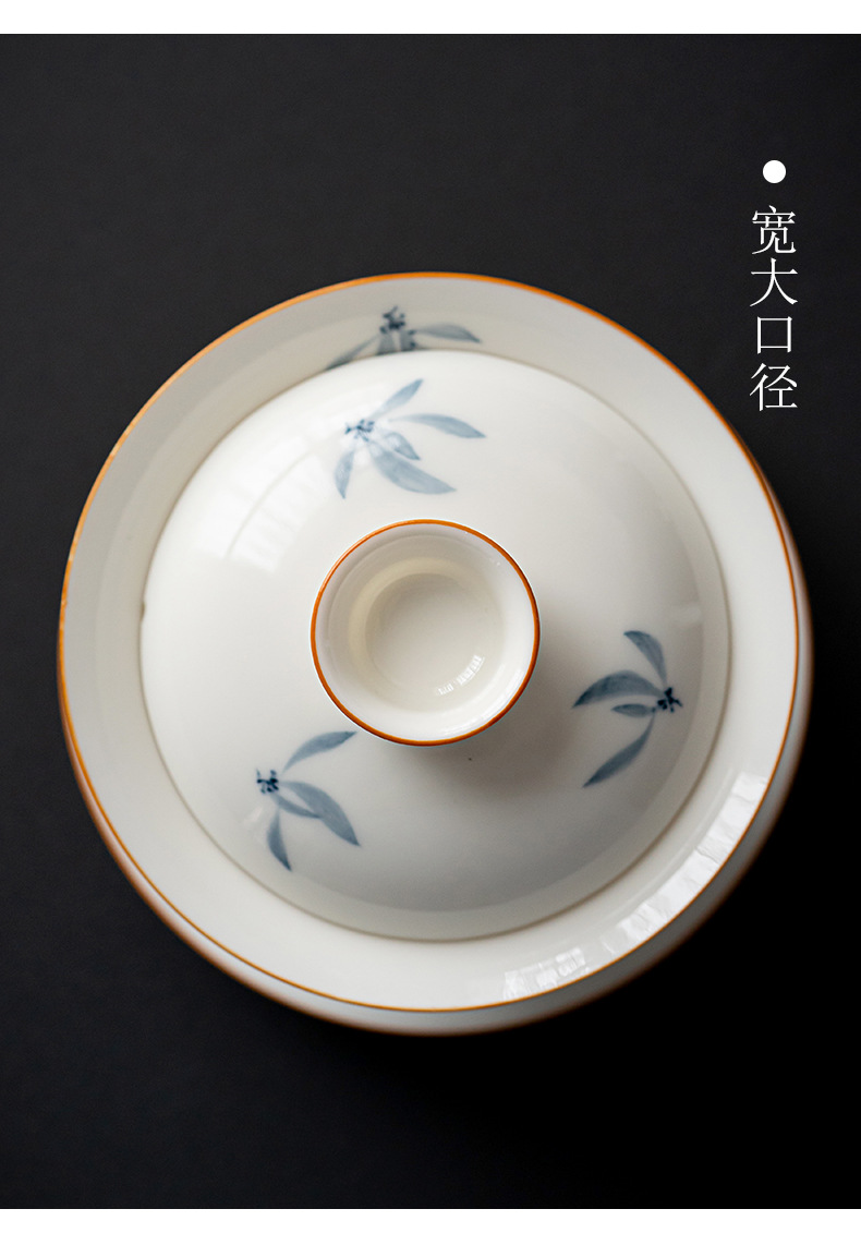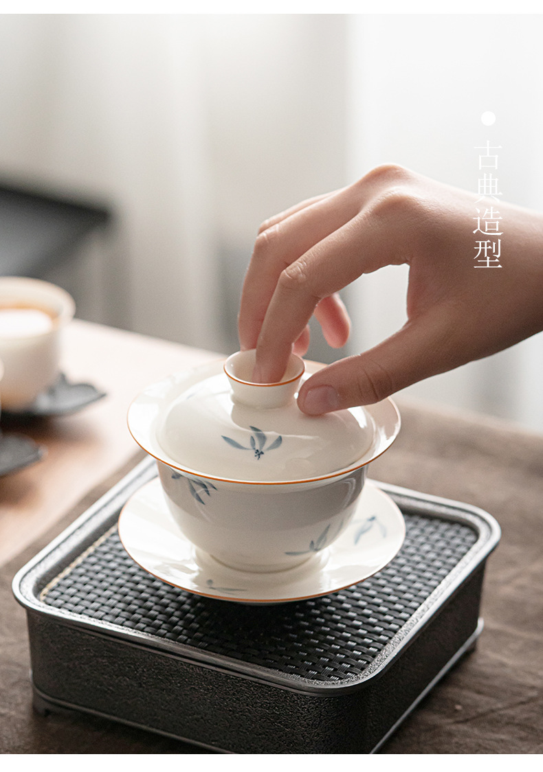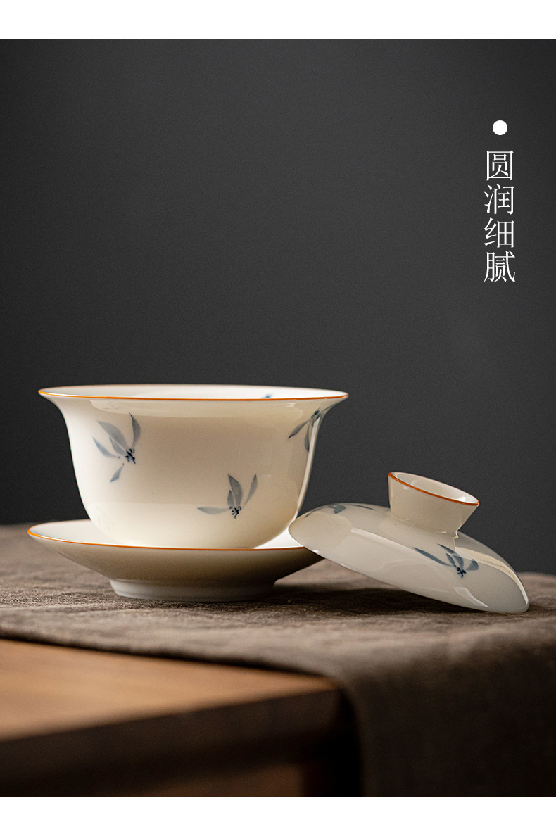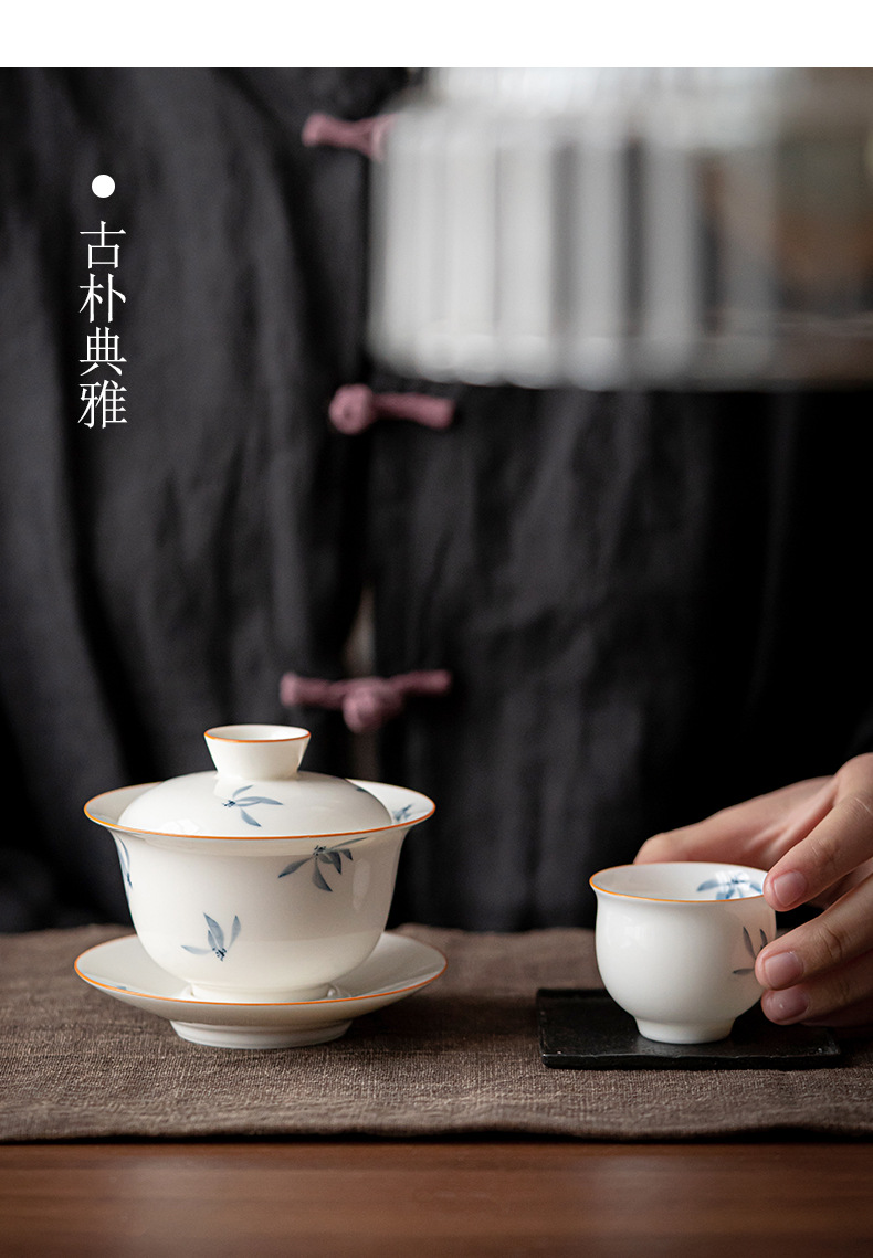 手绘兰花盖碗三才茶碗陶瓷泡茶器