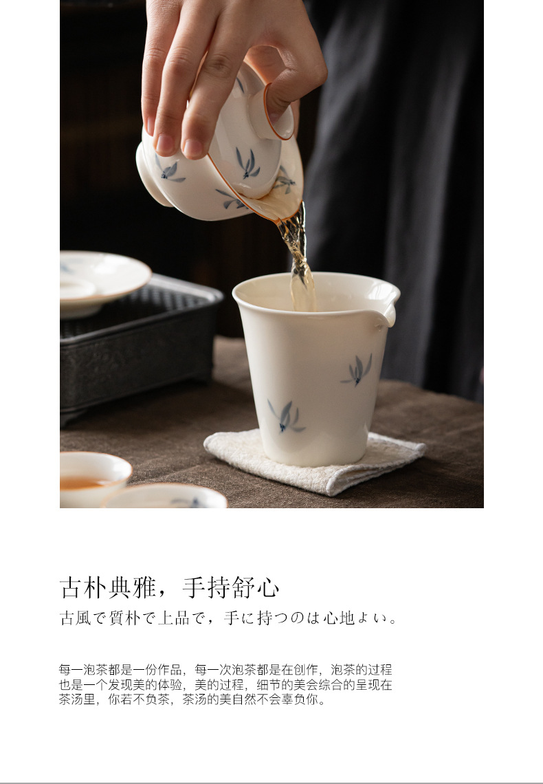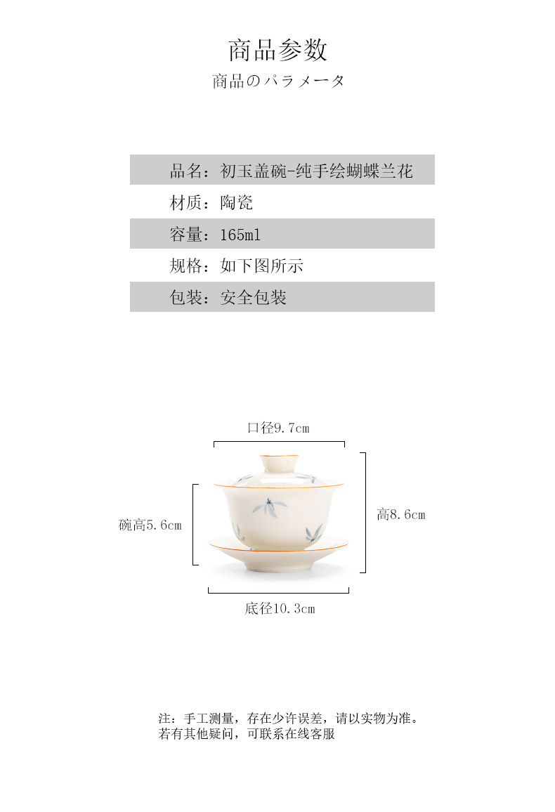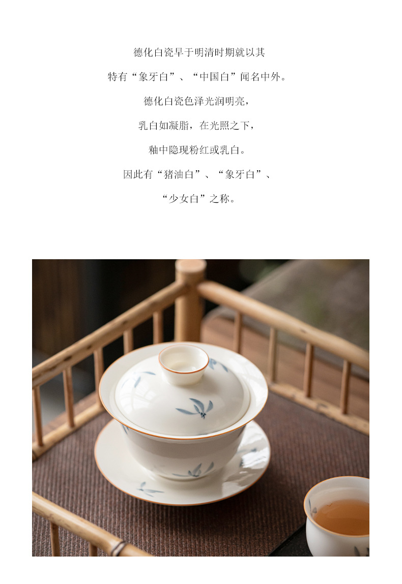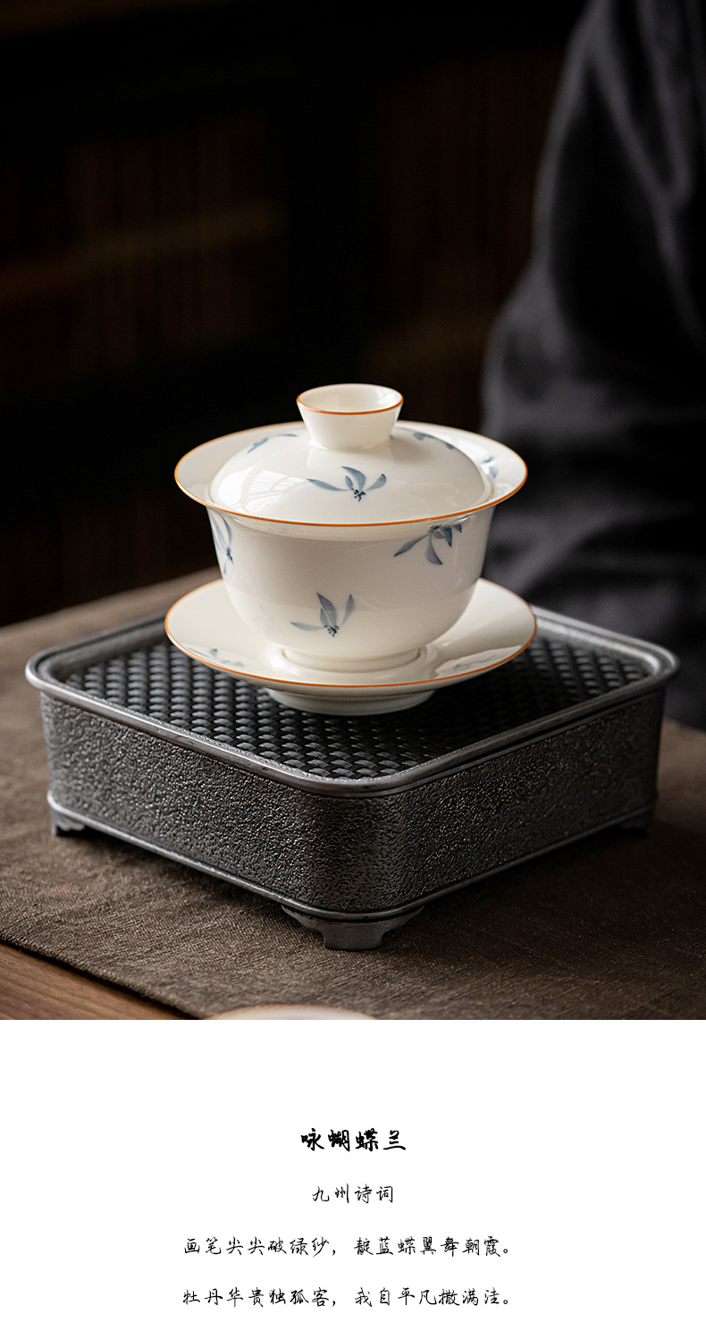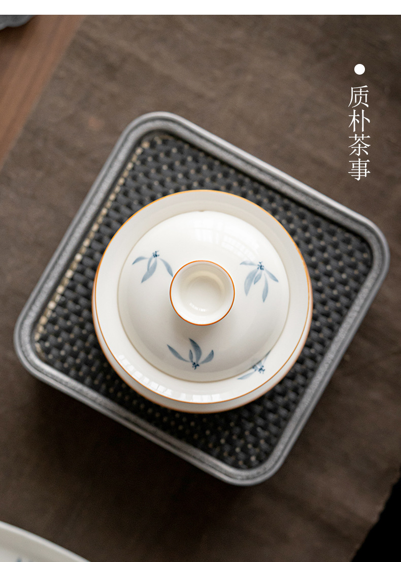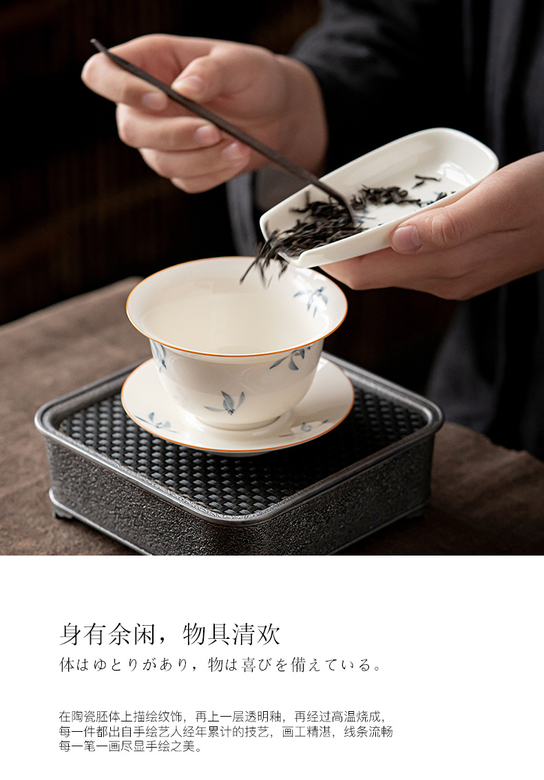 手绘兰花盖碗三才茶碗陶瓷泡茶器