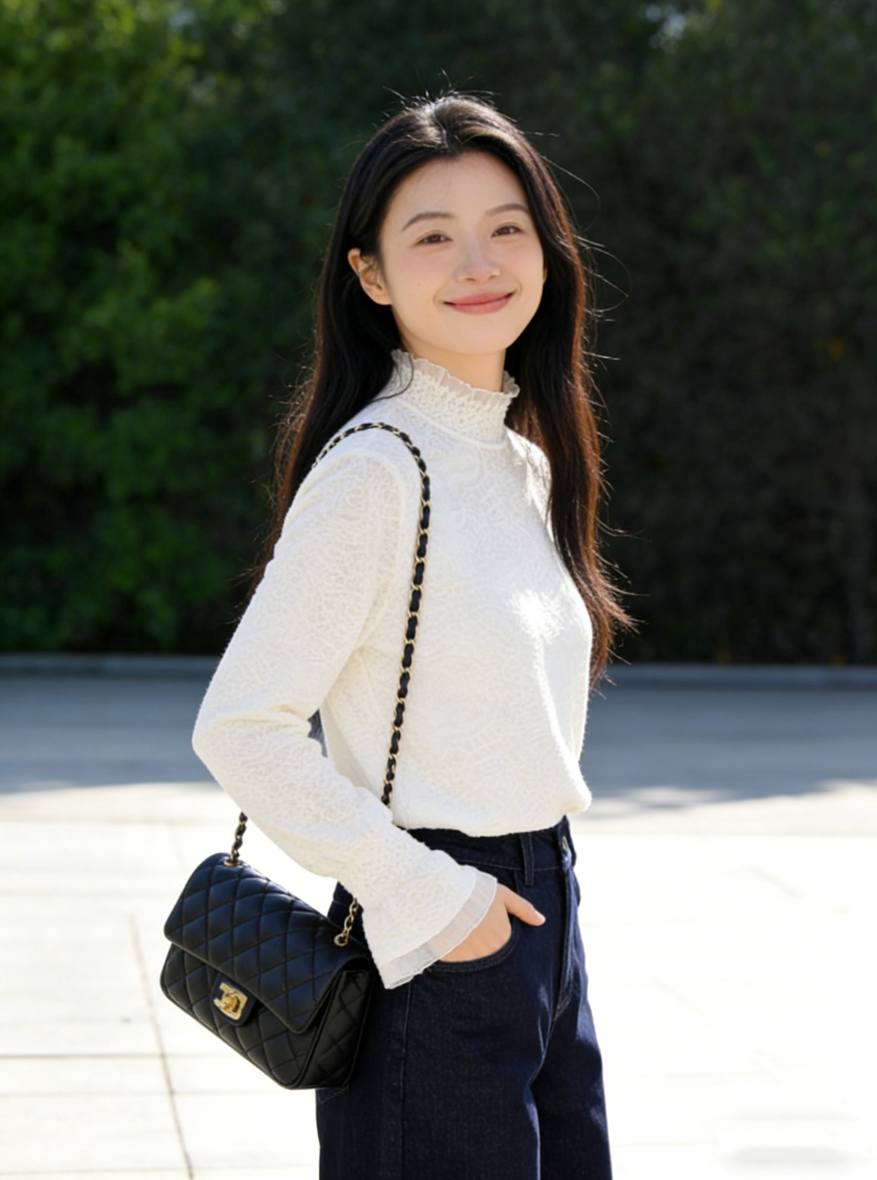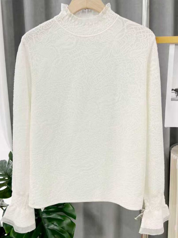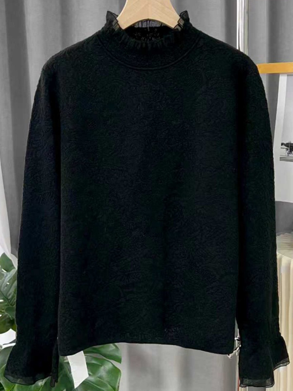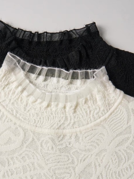 臣禾 【花影毛衫】绵羊毛+桑蚕丝 半高领花边针织衫 9261090196