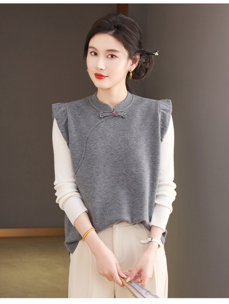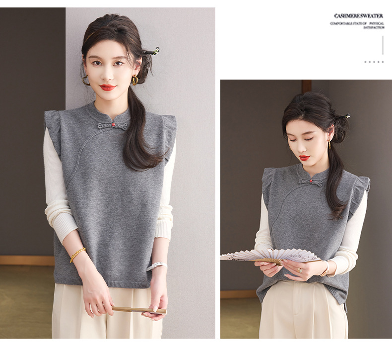 CC新中式国风马甲2025新款设计感小众秋装上衣时髦洋气针织马夹背心