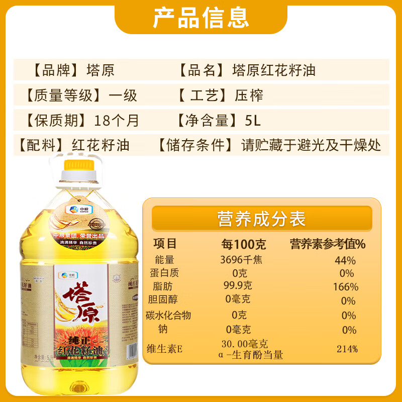 中粮塔原纯红花籽油5L