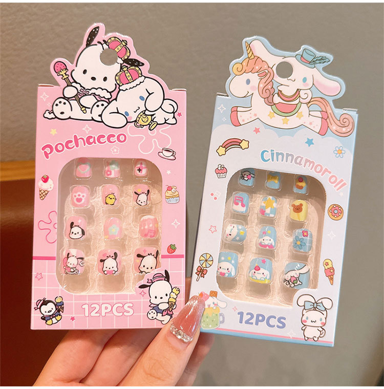 【造型可爱,经济实惠】儿童指甲贴片 2025新款 儿童美甲贴纸 女孩夜光指甲贴 女童小公主换装玩具-QQ