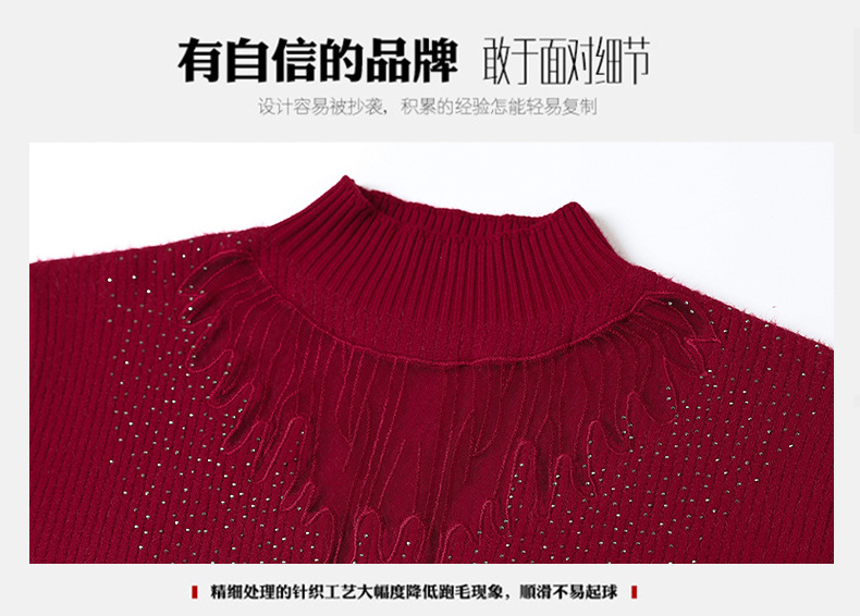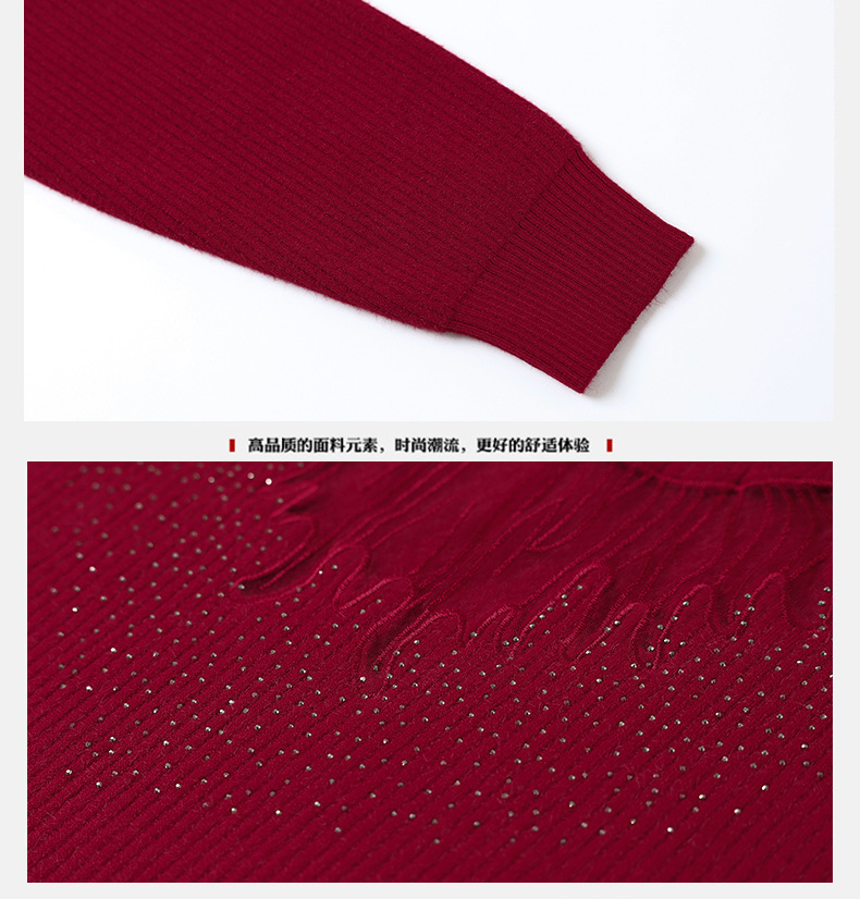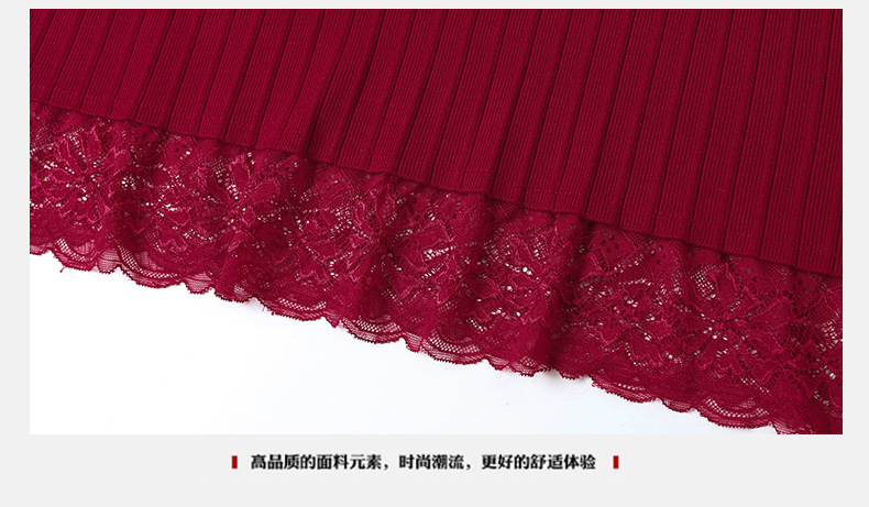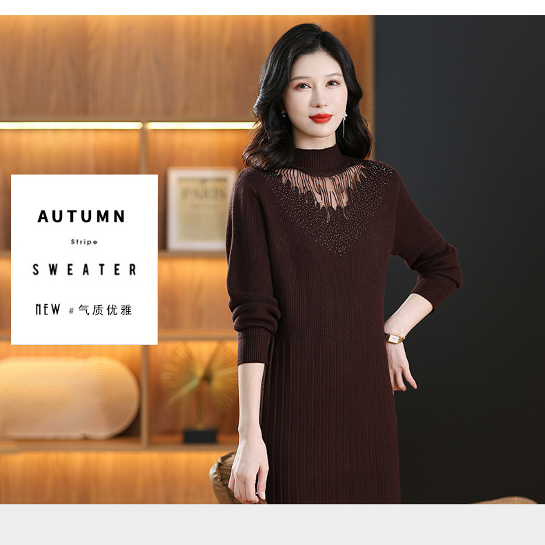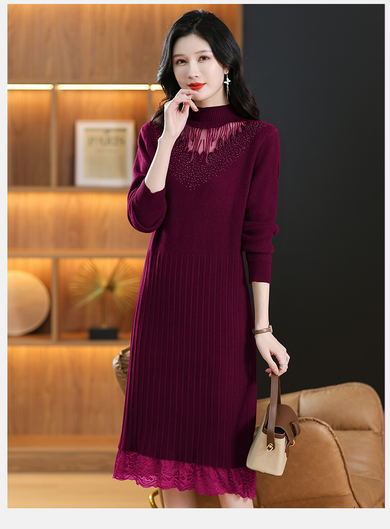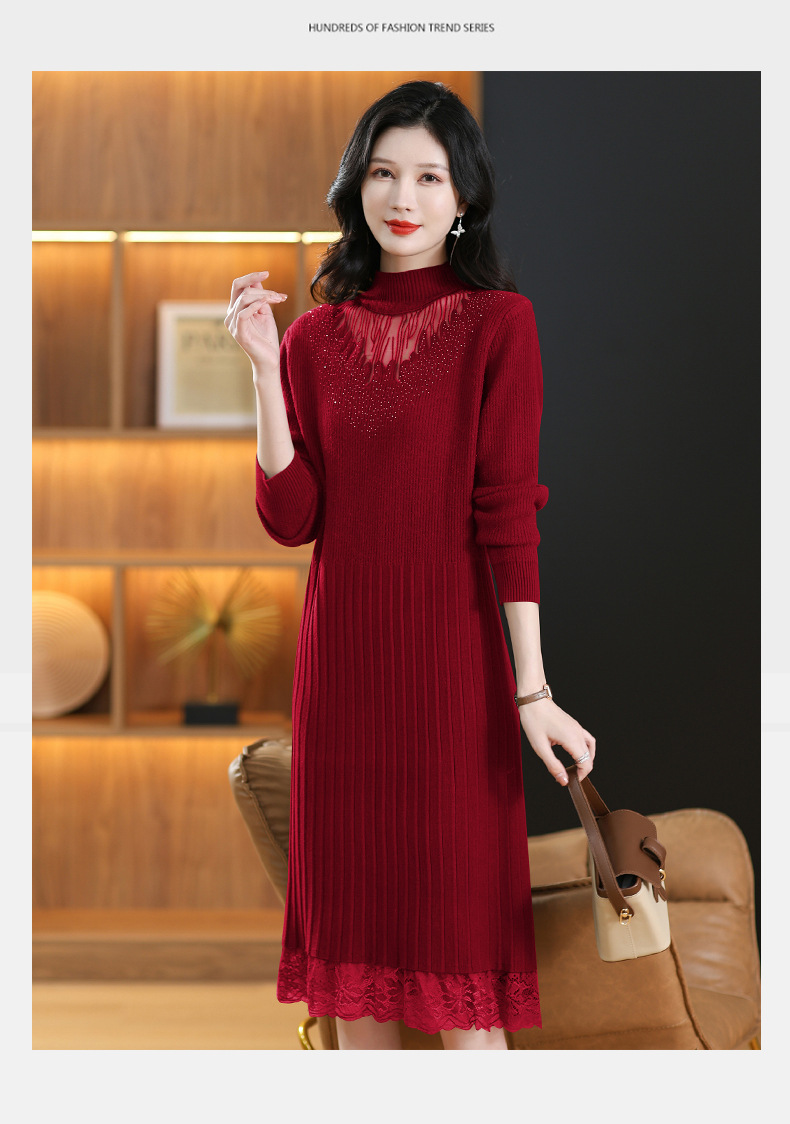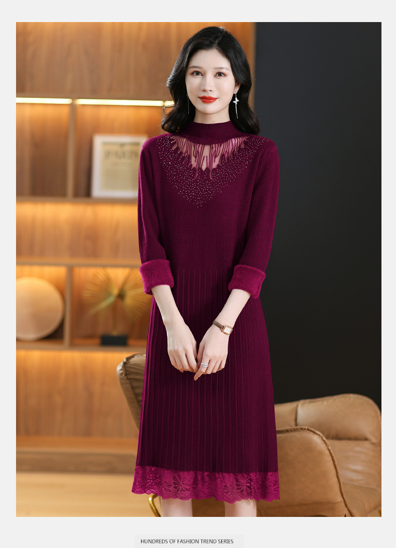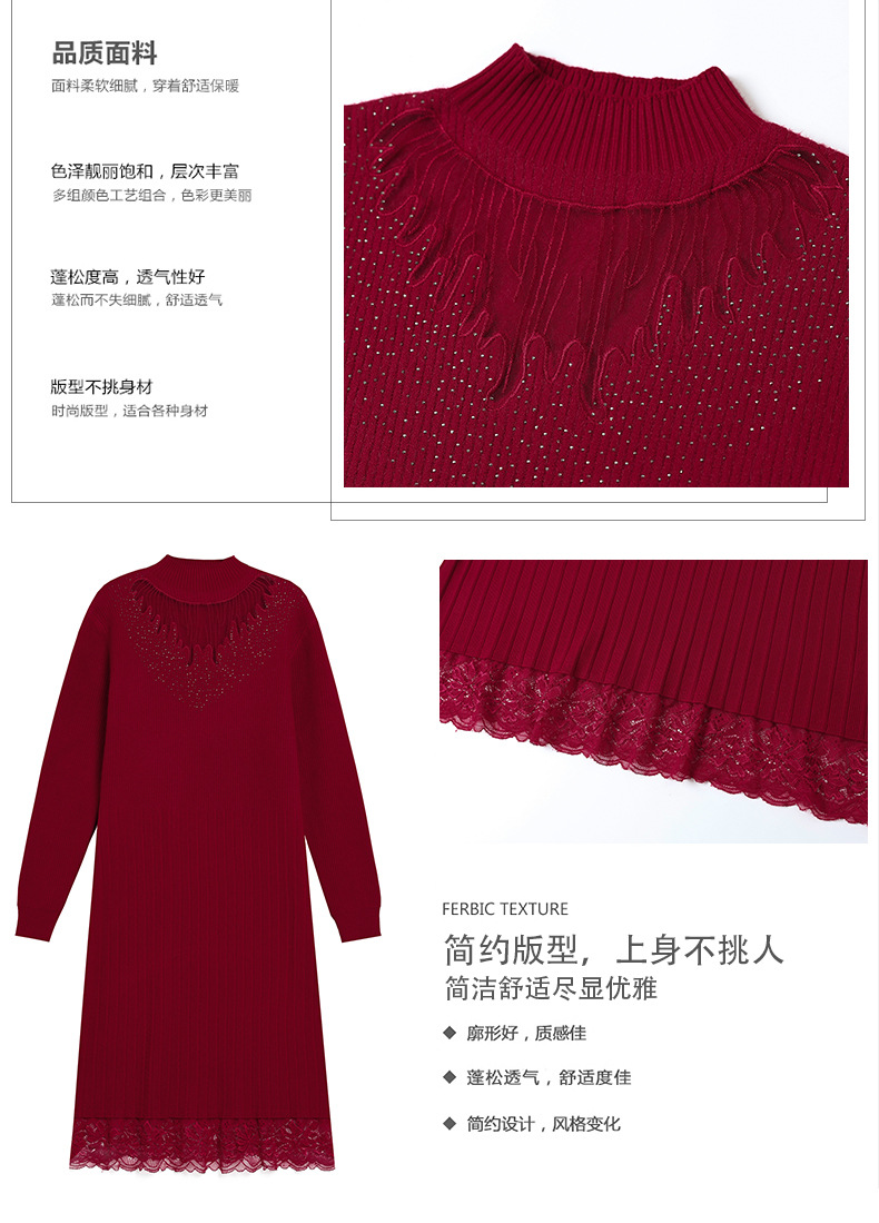 CC-MH-348时尚气质加绒加厚镂空中长款毛衣裙女蕾丝拼接针织连衣裙女