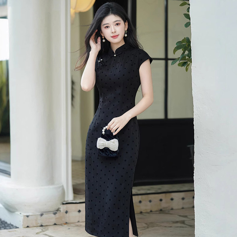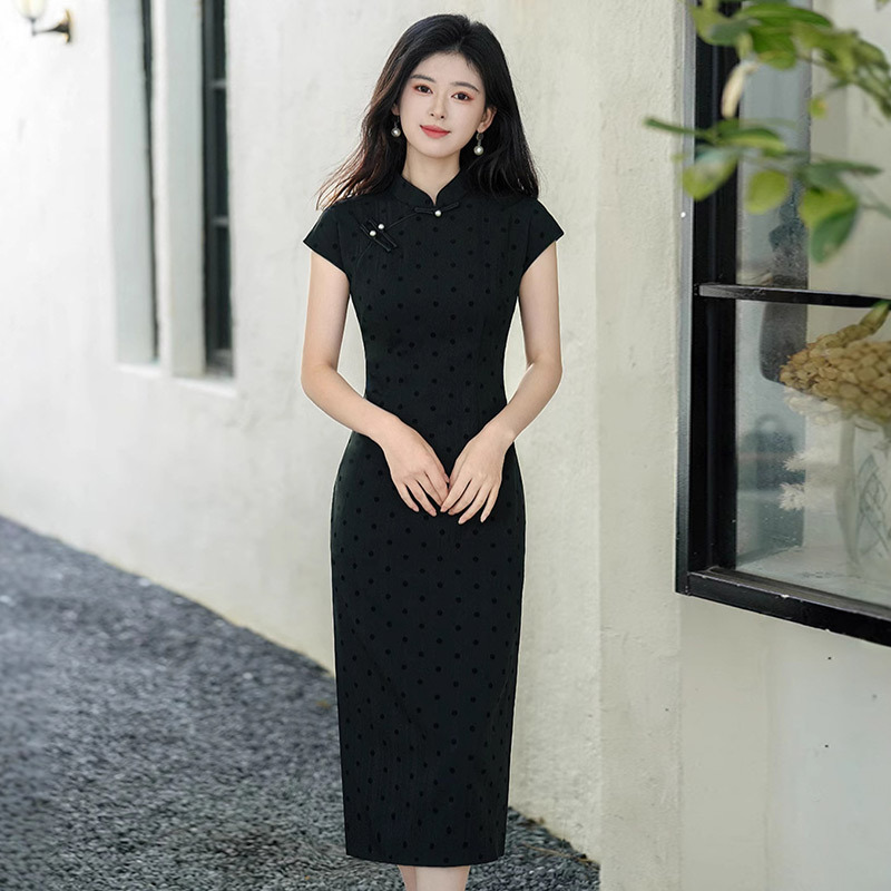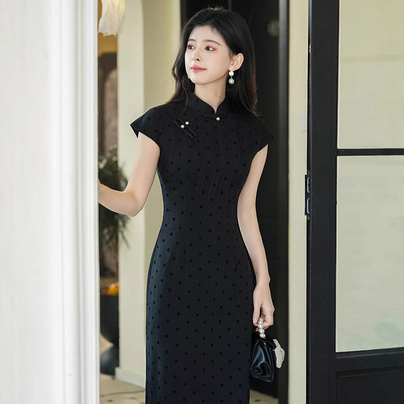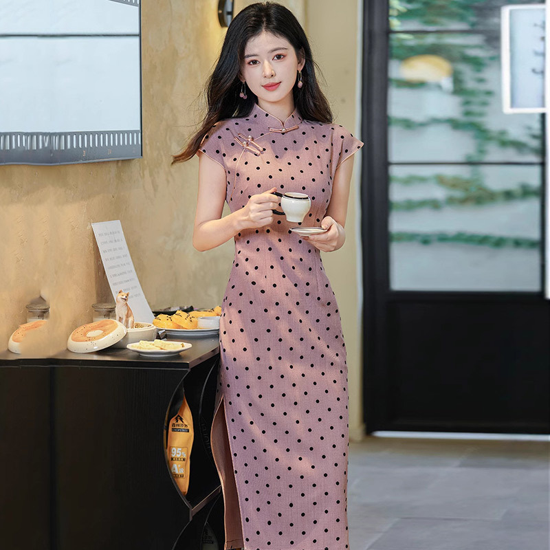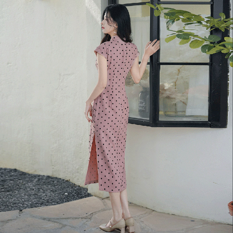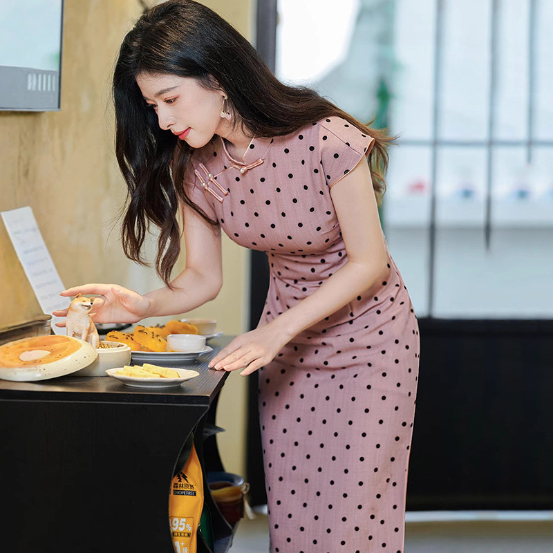 波点年轻款国风中式日常改良旗袍2025新款少女复古修身短袖春夏季