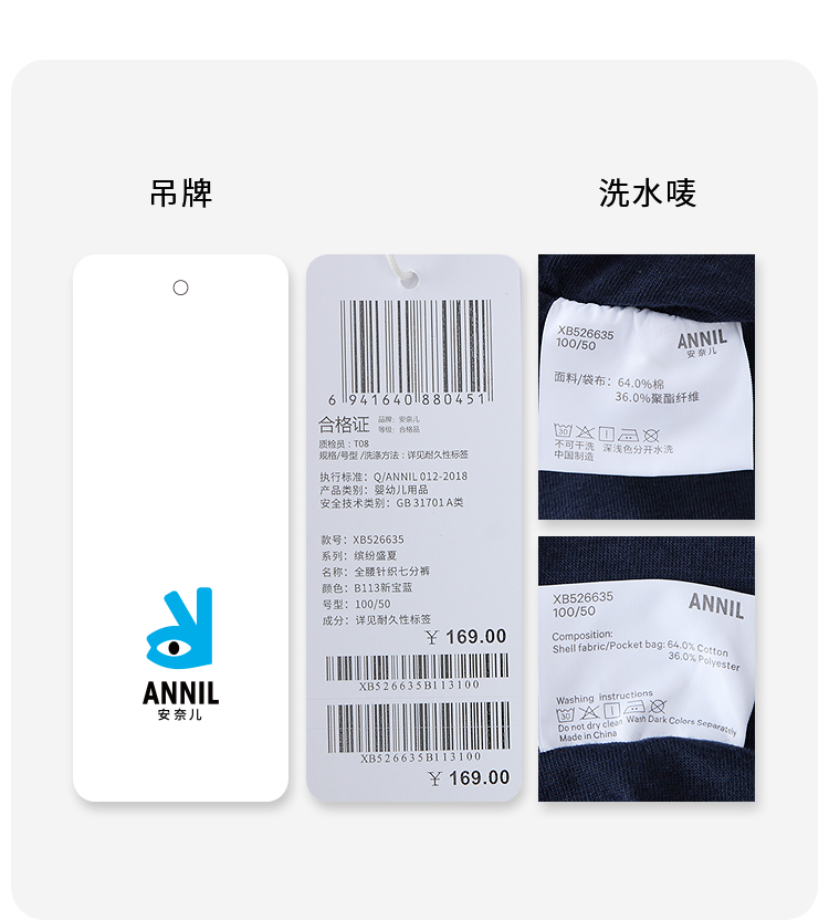 【实体店同款】男童全腰针织七分裤夏季新款安奈儿童装XB526635