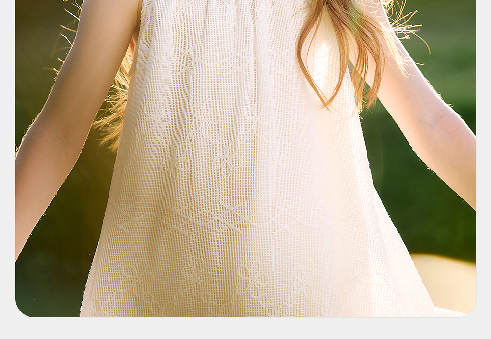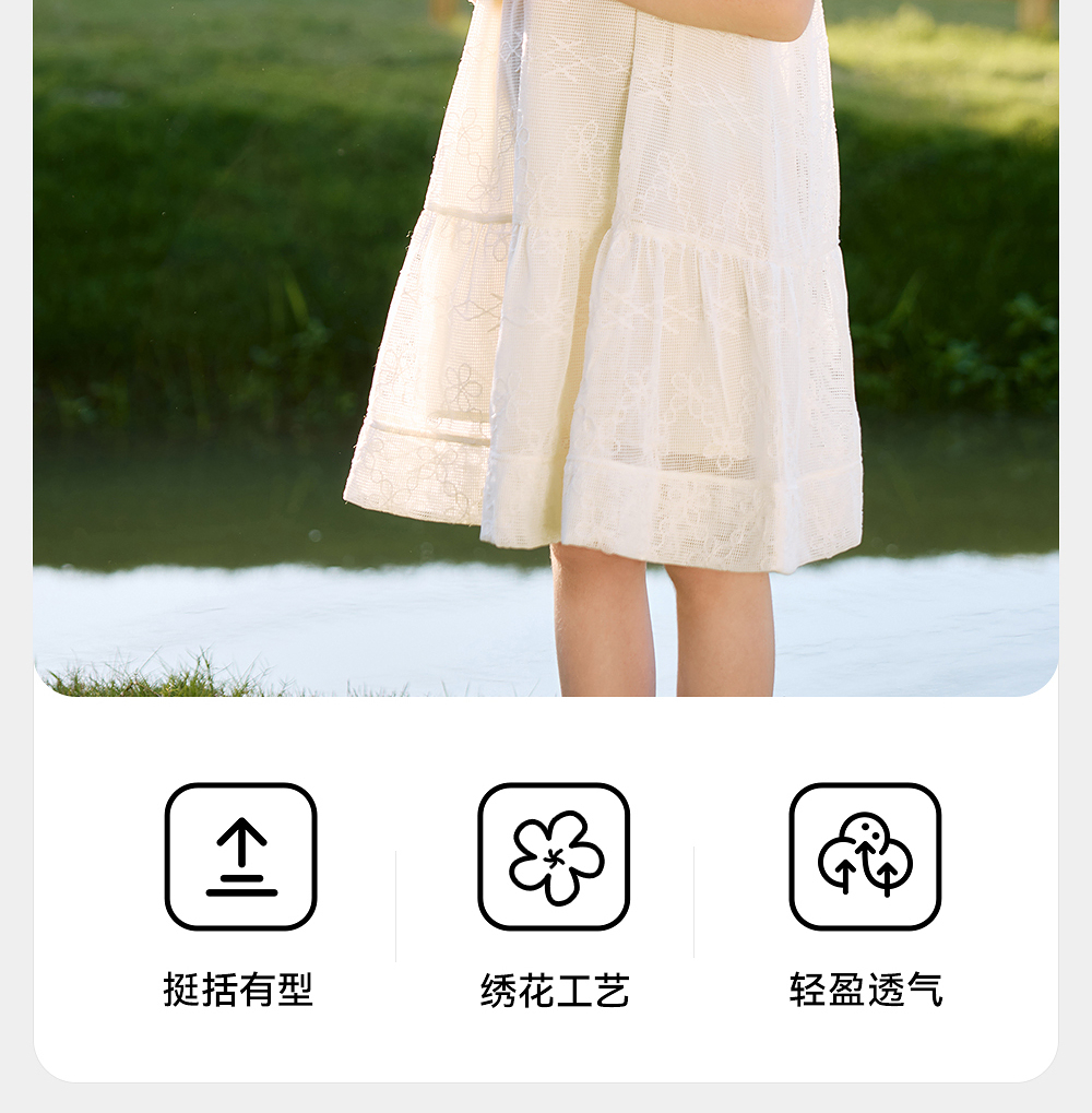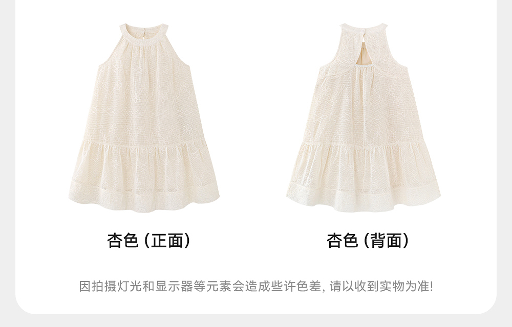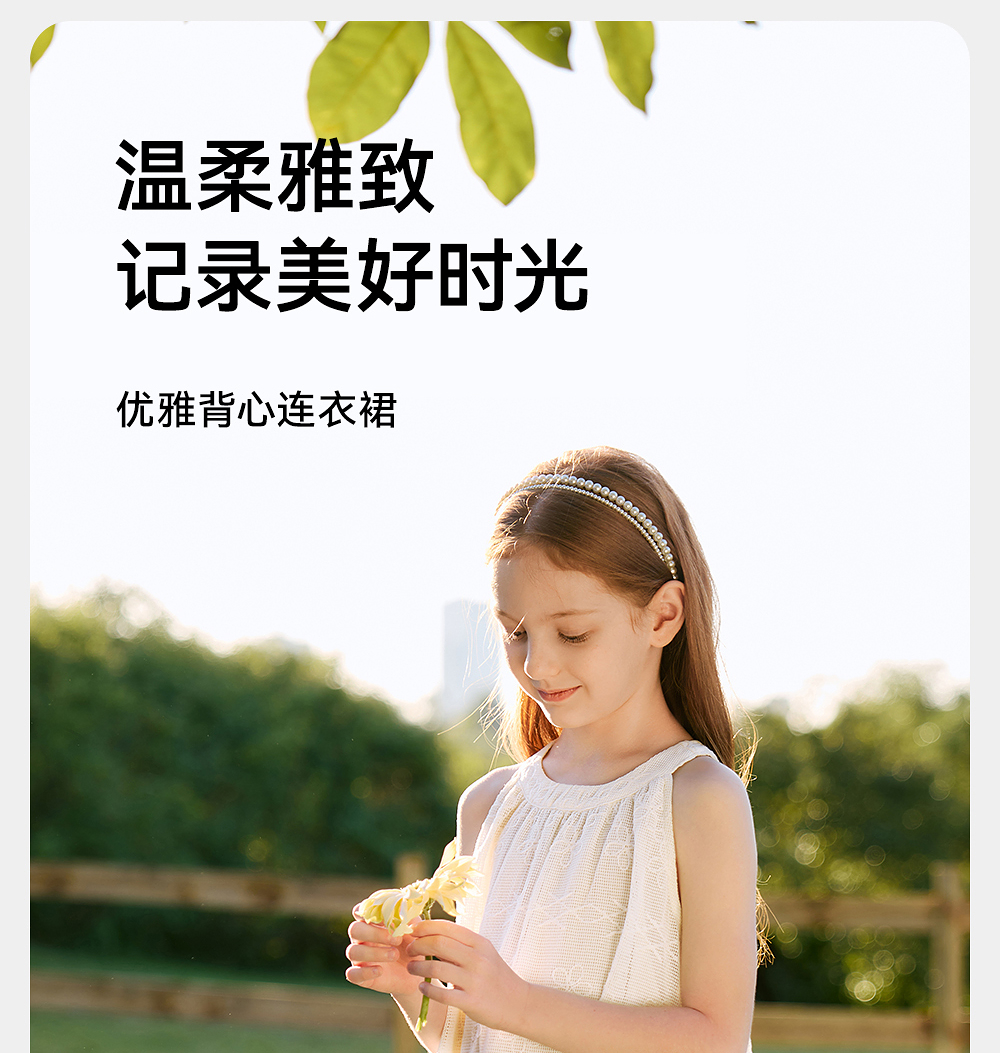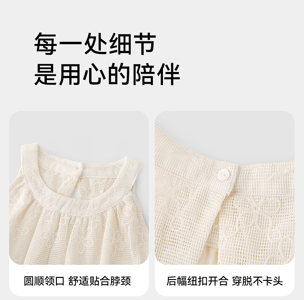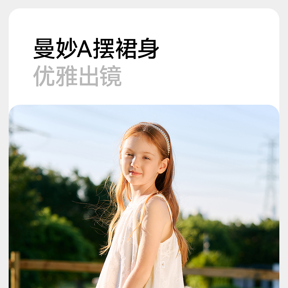 英氏女童裙子夏季短袖女背心连衣裙透气小白裙2025新款甜美公主裙