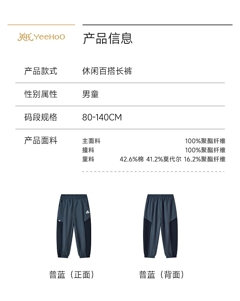 【商场同款】英氏儿童裤子男童长裤春夏新款束脚裤休闲户外百搭
