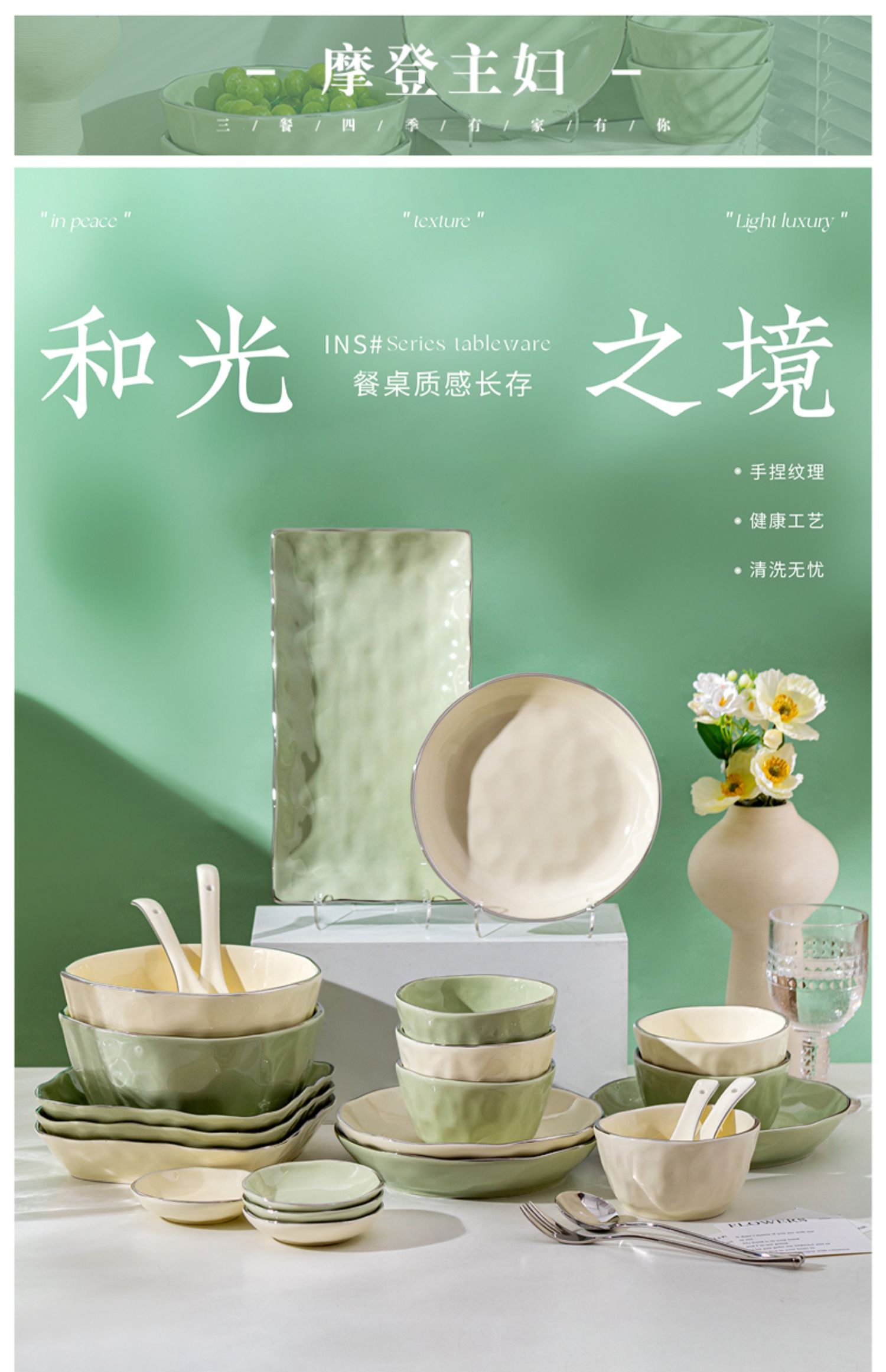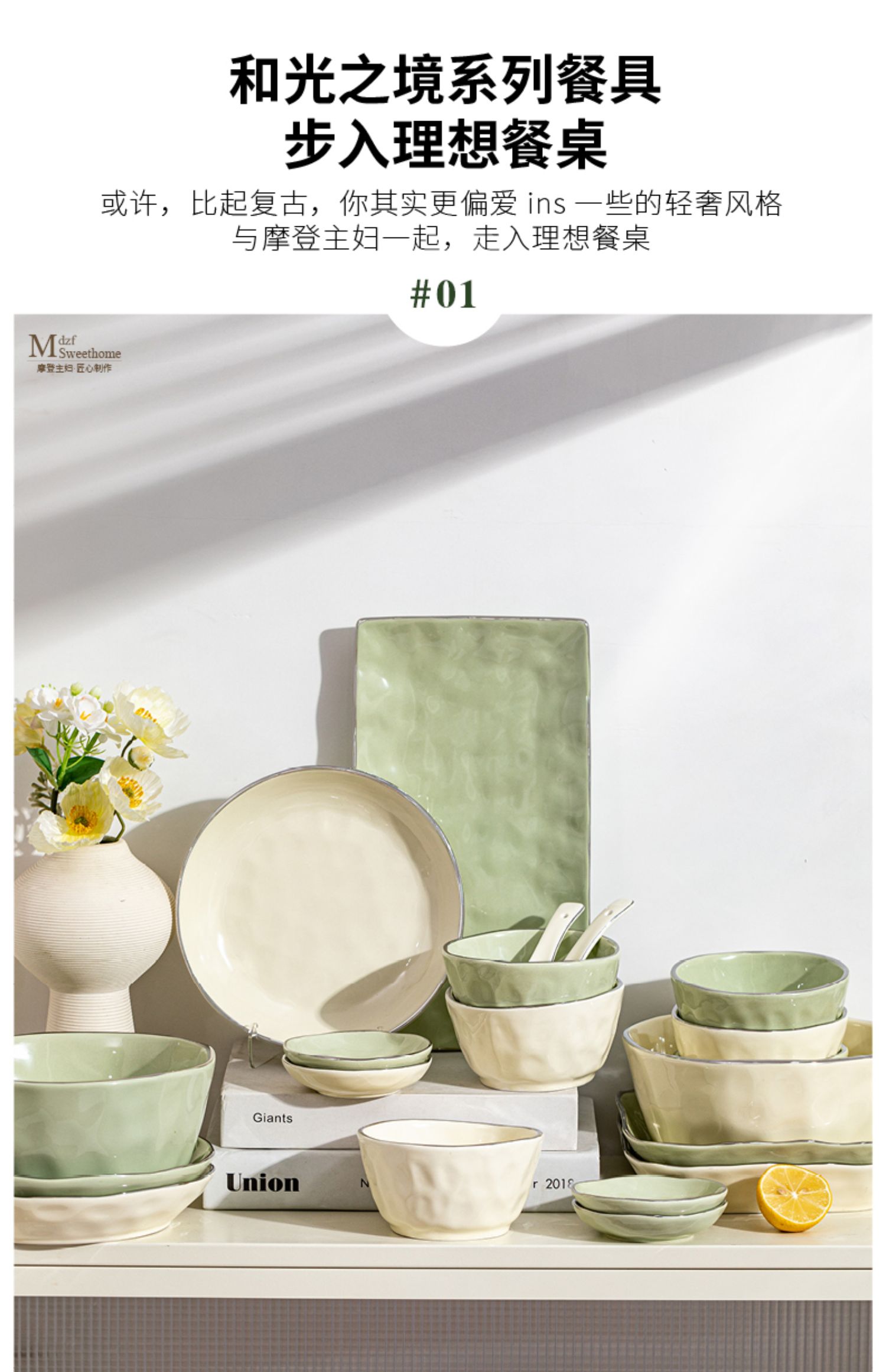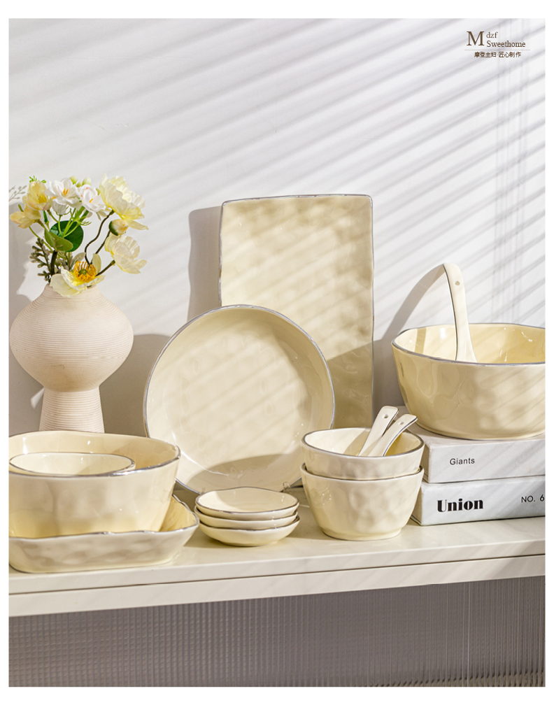 摩登主妇和光之镜陶瓷碗盘餐具家用面碗汤碗ins奶油风盘子米饭碗
