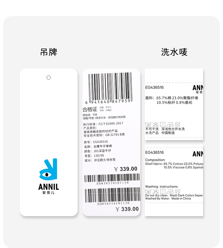 女童全腰牛仔单裤秋季新款安奈儿童装EG436516