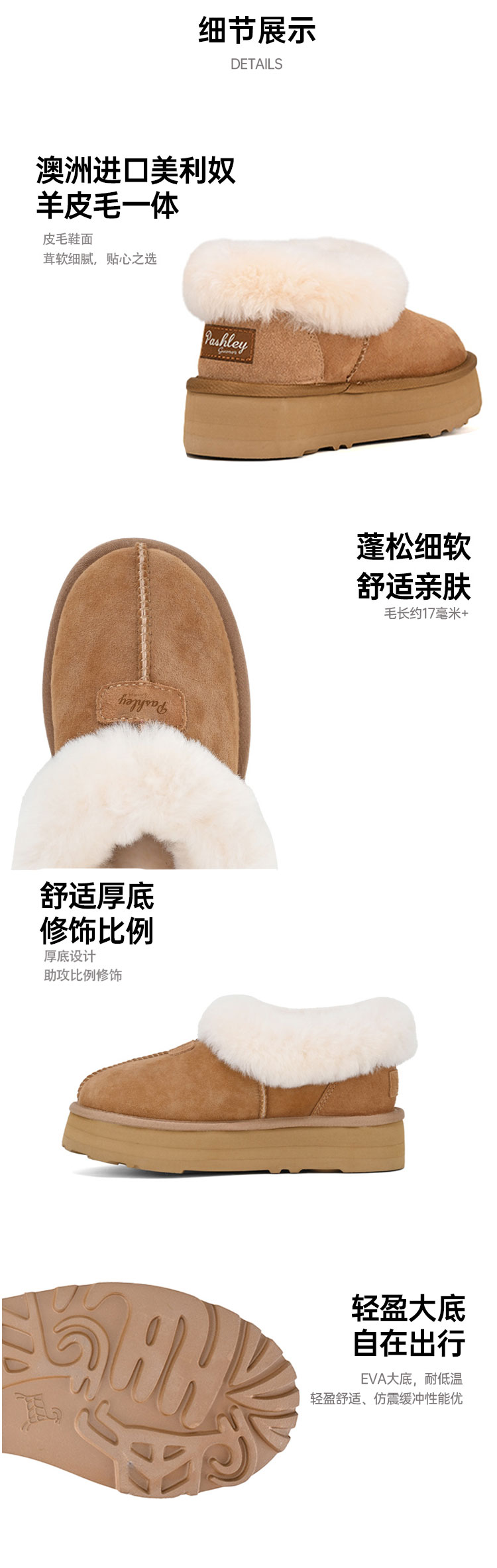 【梅花出品】帕奢利经典塔茨特羊皮毛一体毛圈款雪地靴厚底HZ0016P