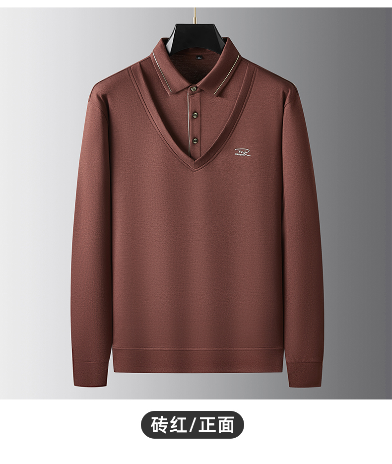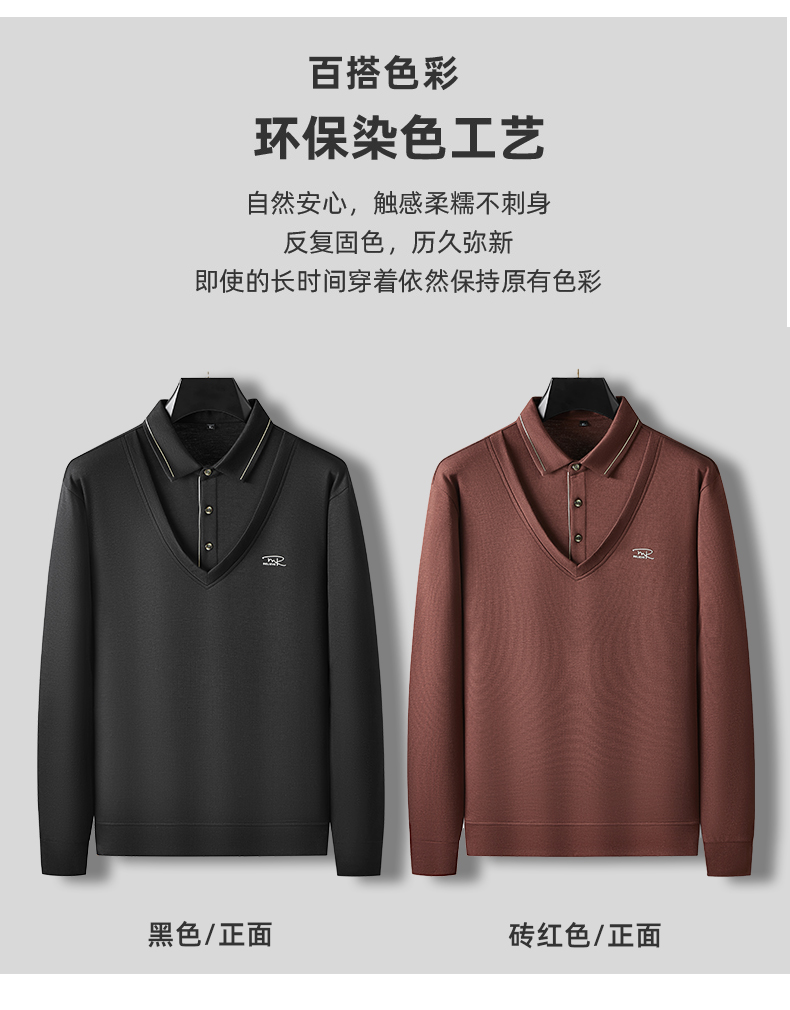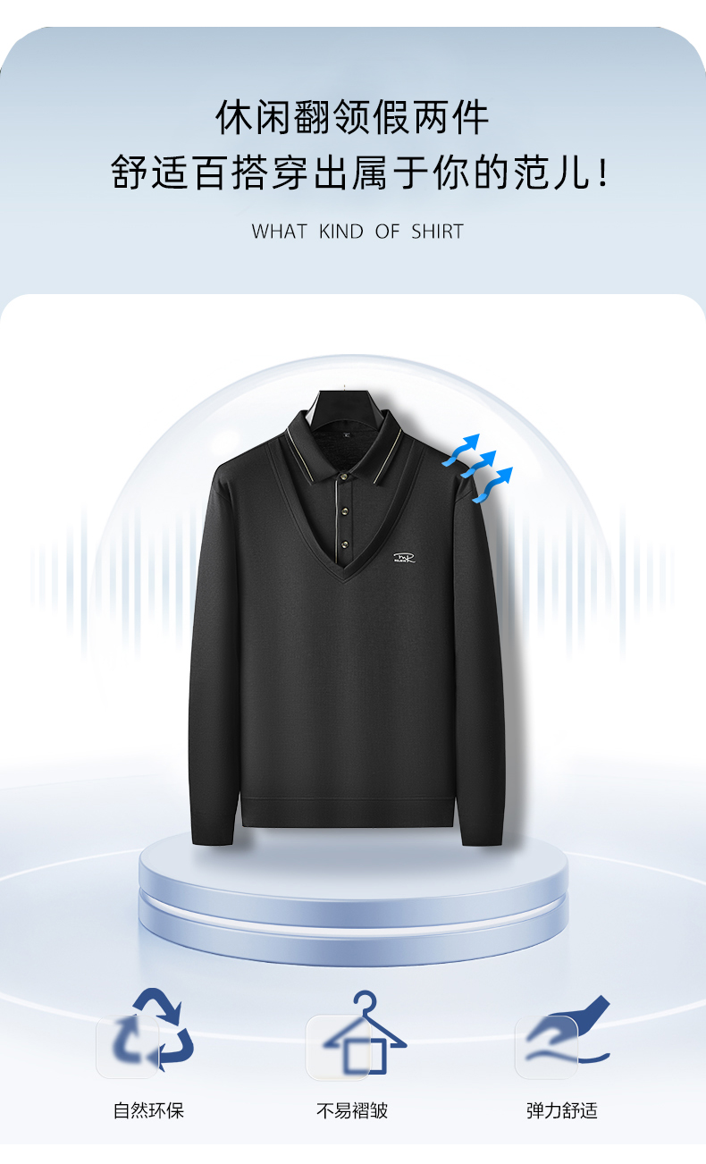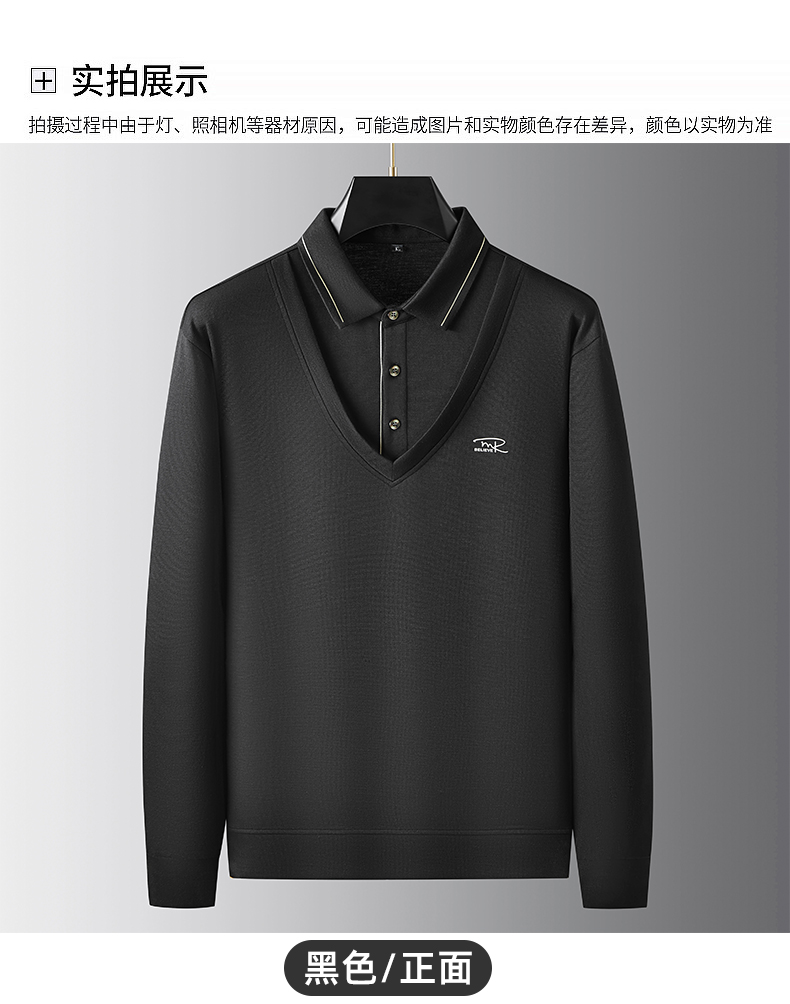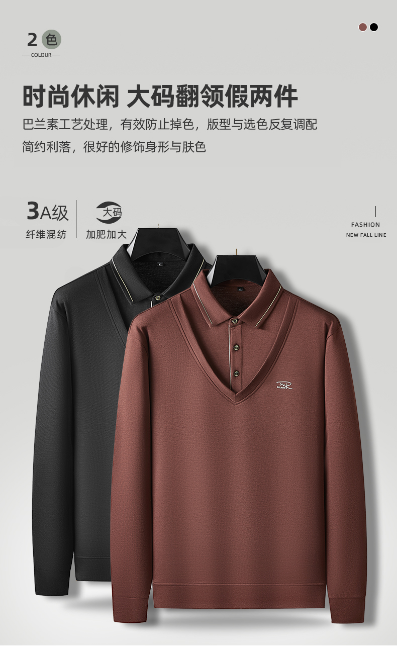 【假两件】【新款DDA】大依优型大码男士假两件长袖T恤商务休闲上衣加肥加大胖子舒适