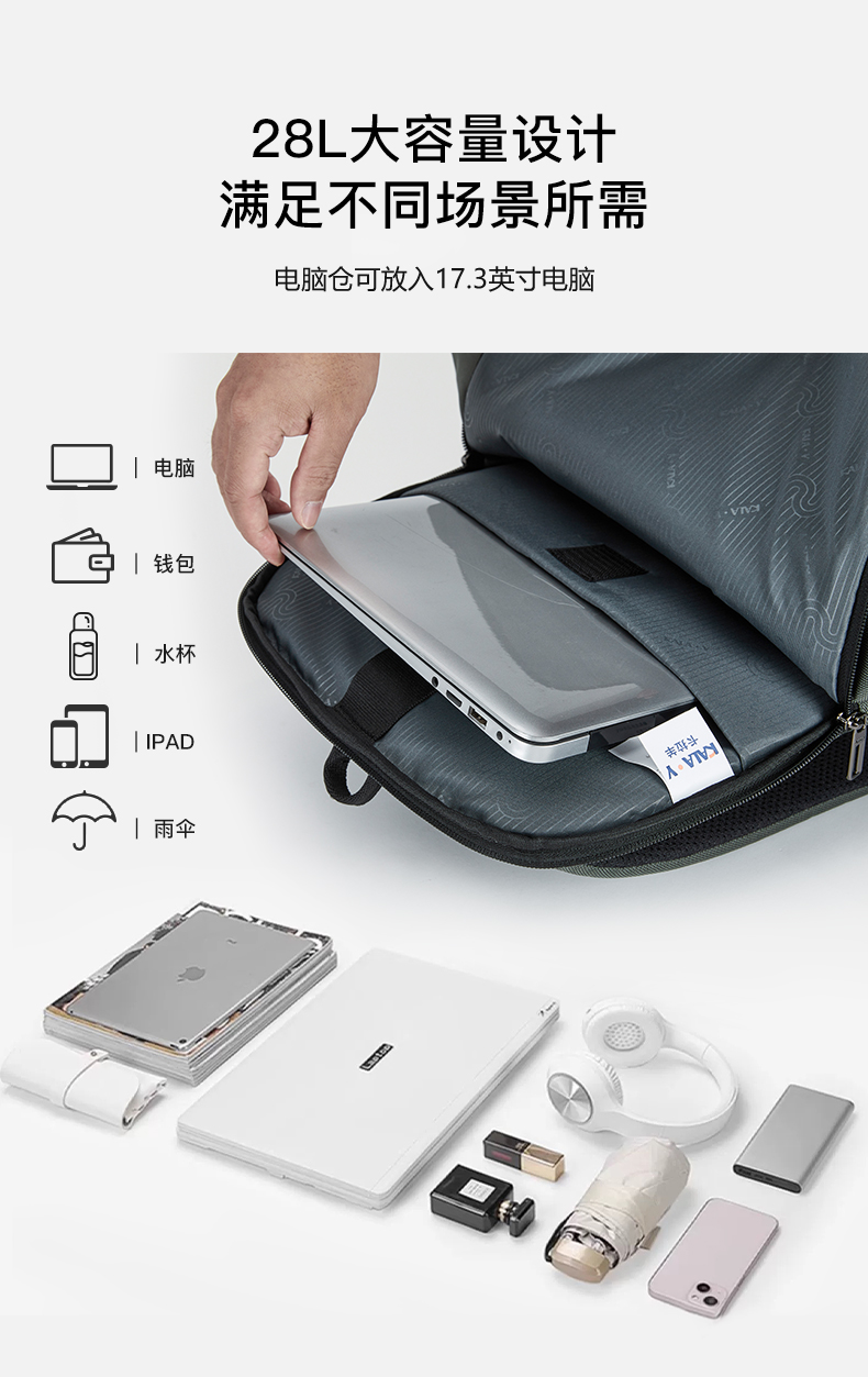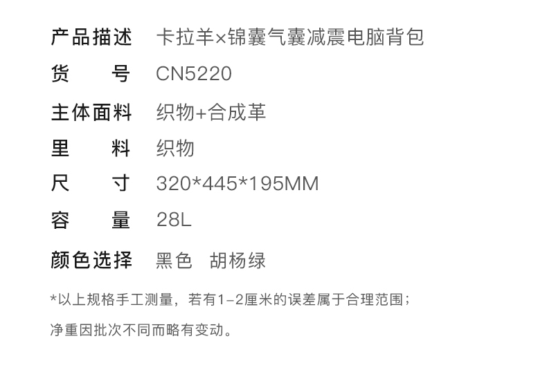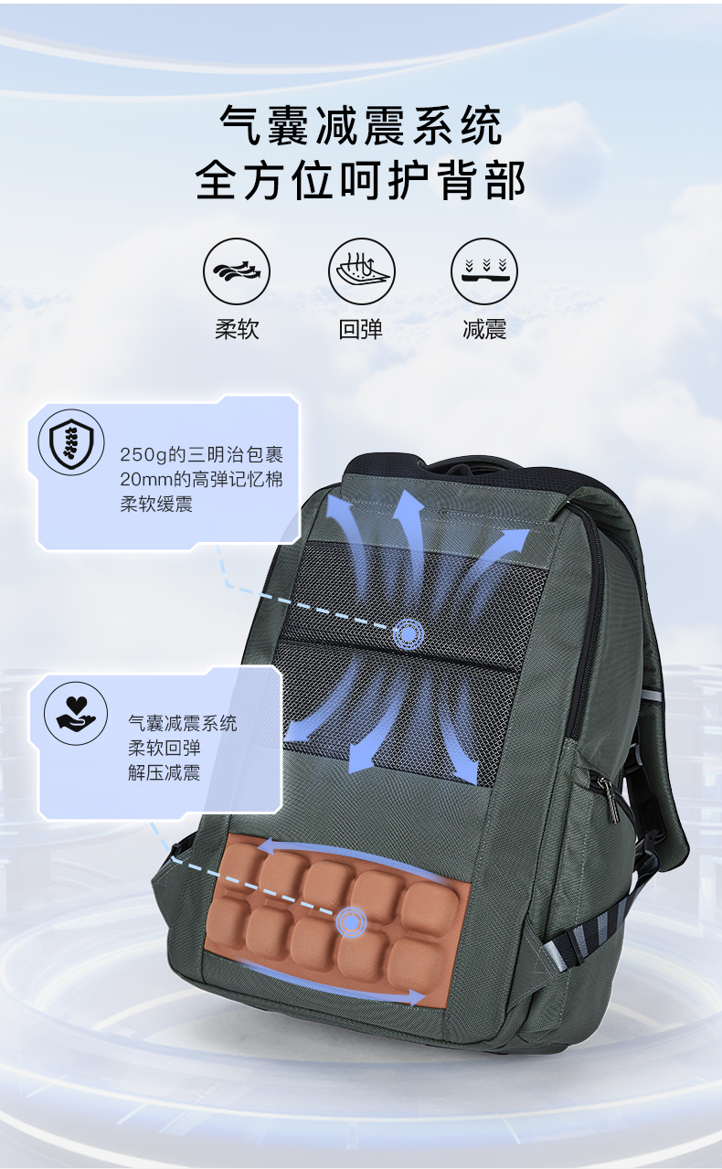 【气囊减震顶配】卡拉羊X锦囊7维减负28L多功能防盗电脑包CN5220