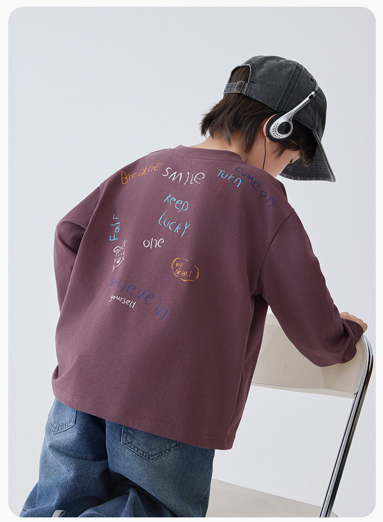 童装2026春季新款男童纯棉长袖T恤字母印花洋气上衣中大童 FY-H6aa09-2