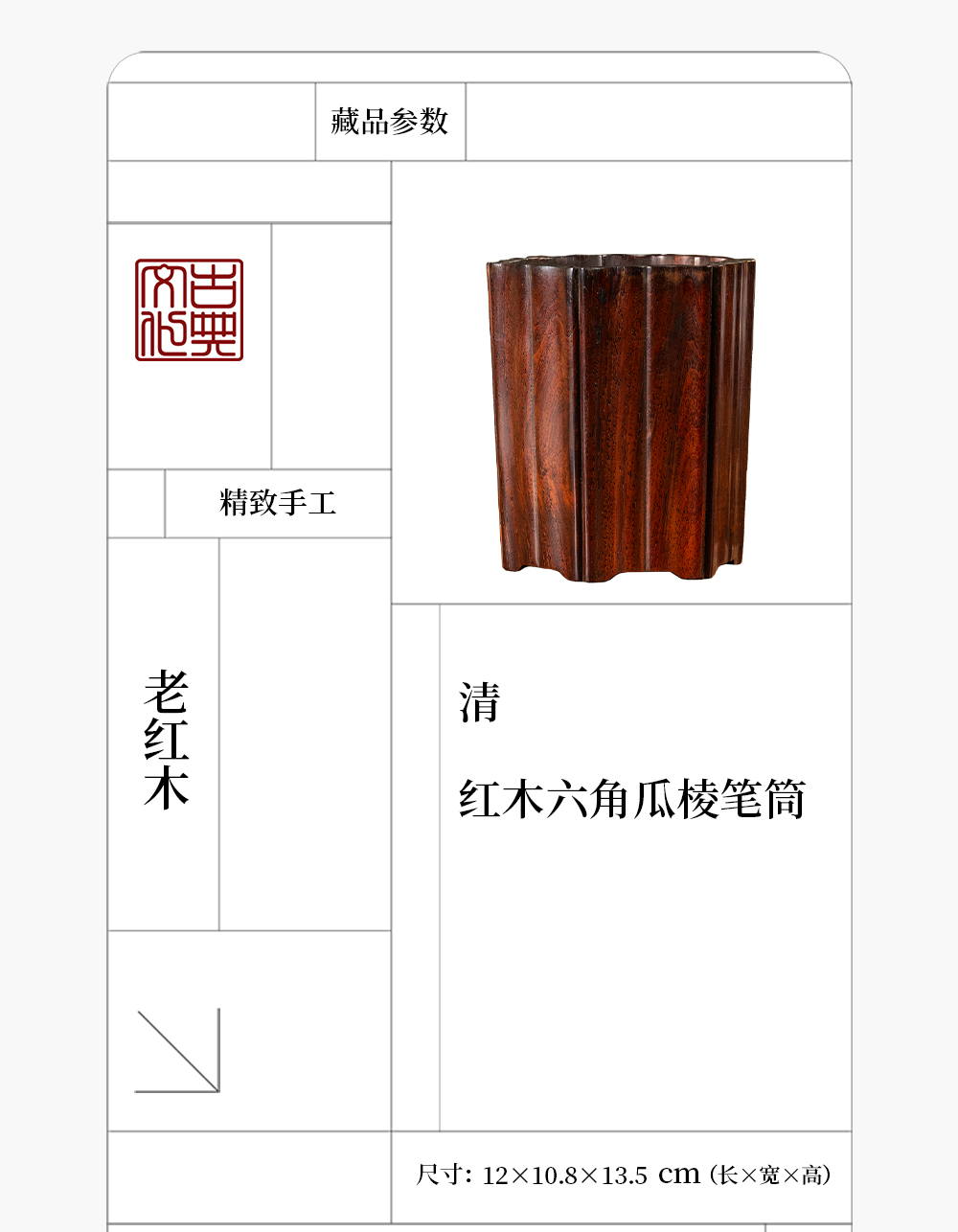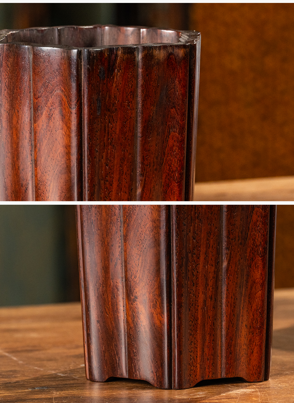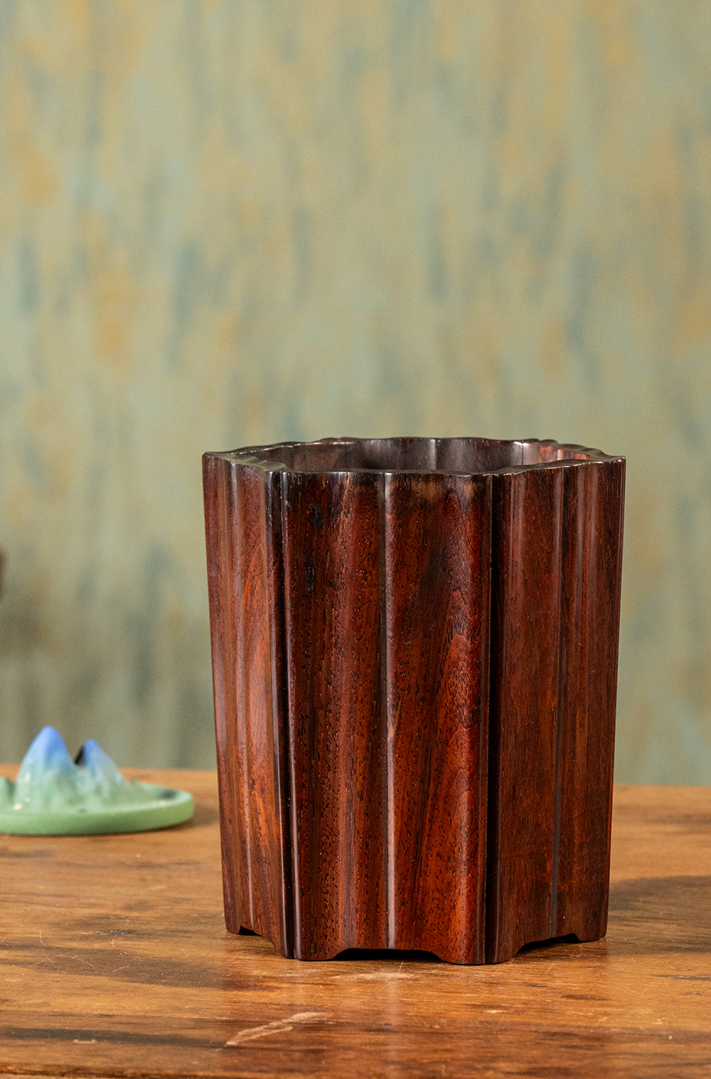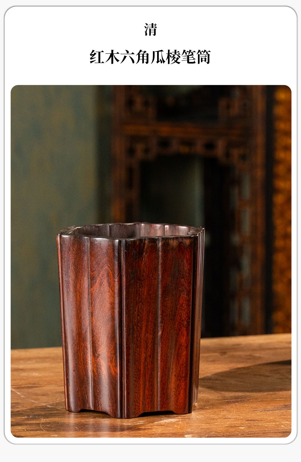 清 红木六角瓜棱笔筒