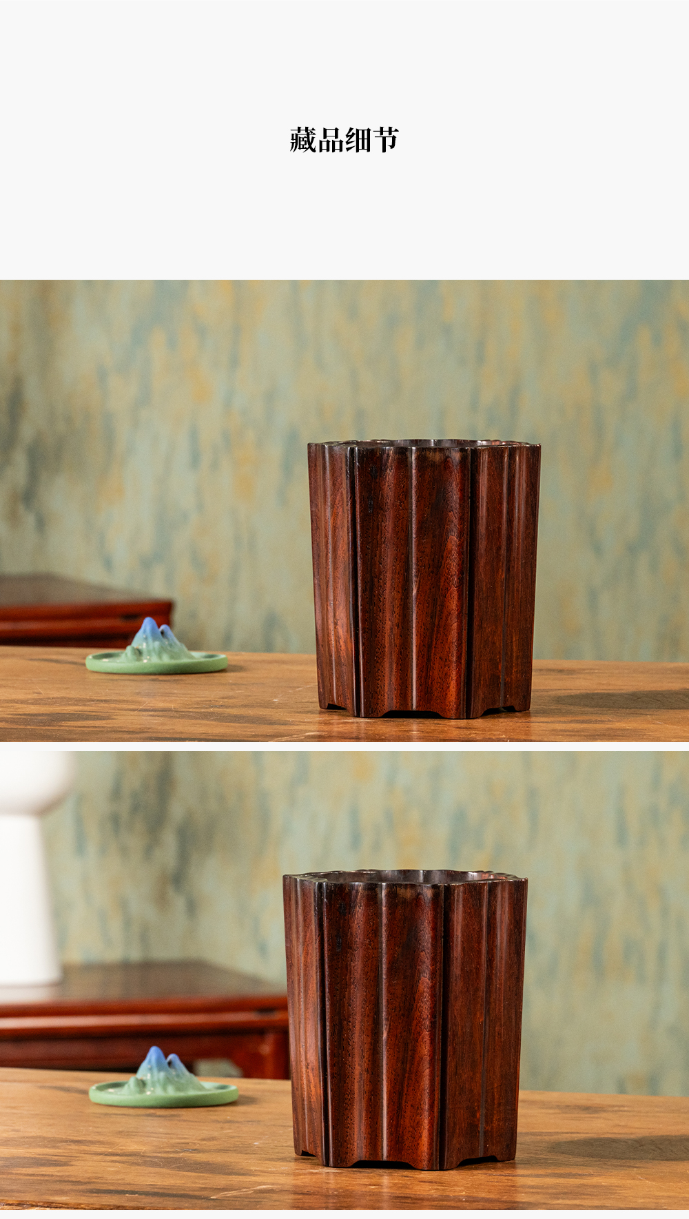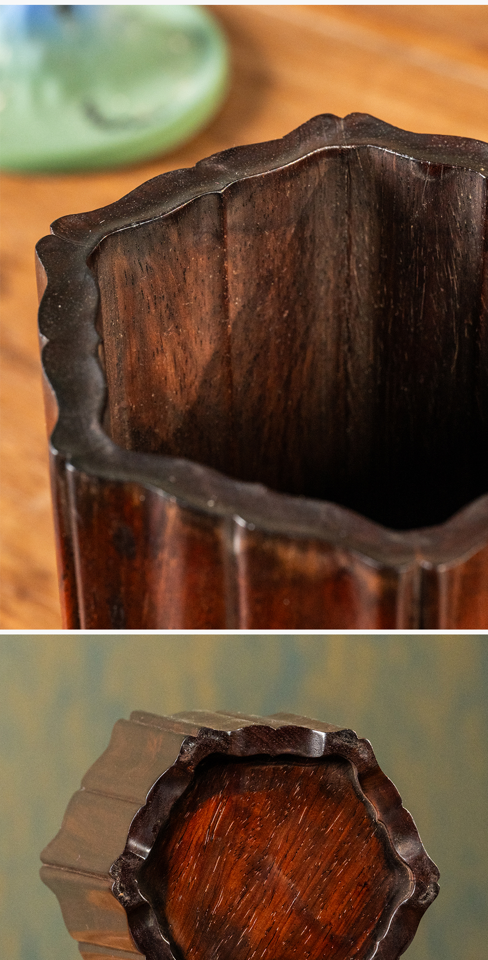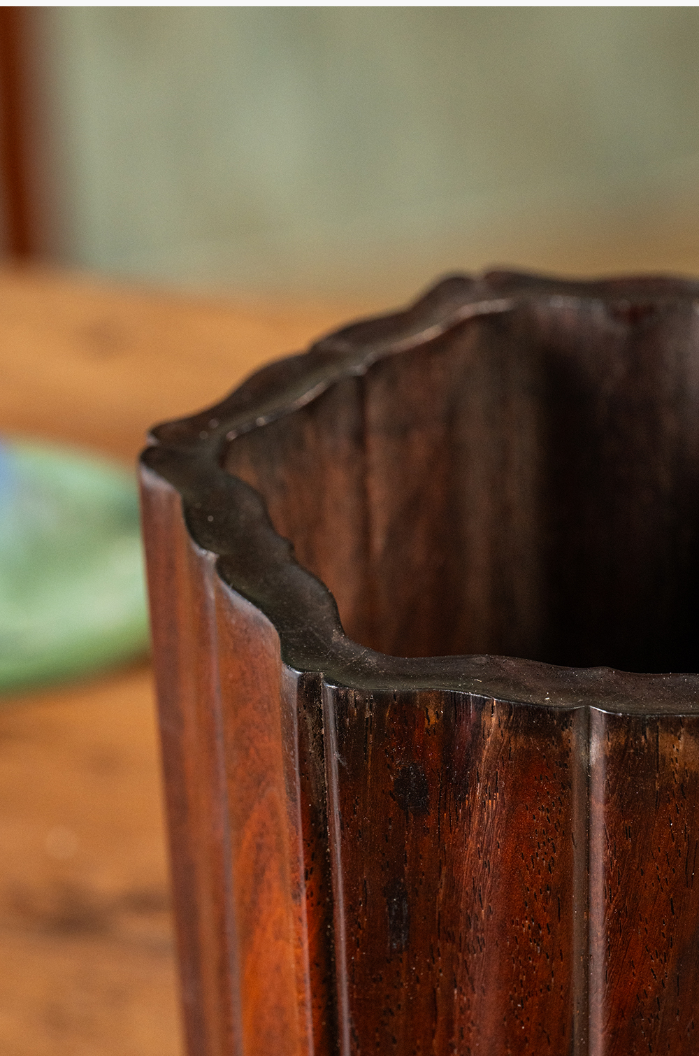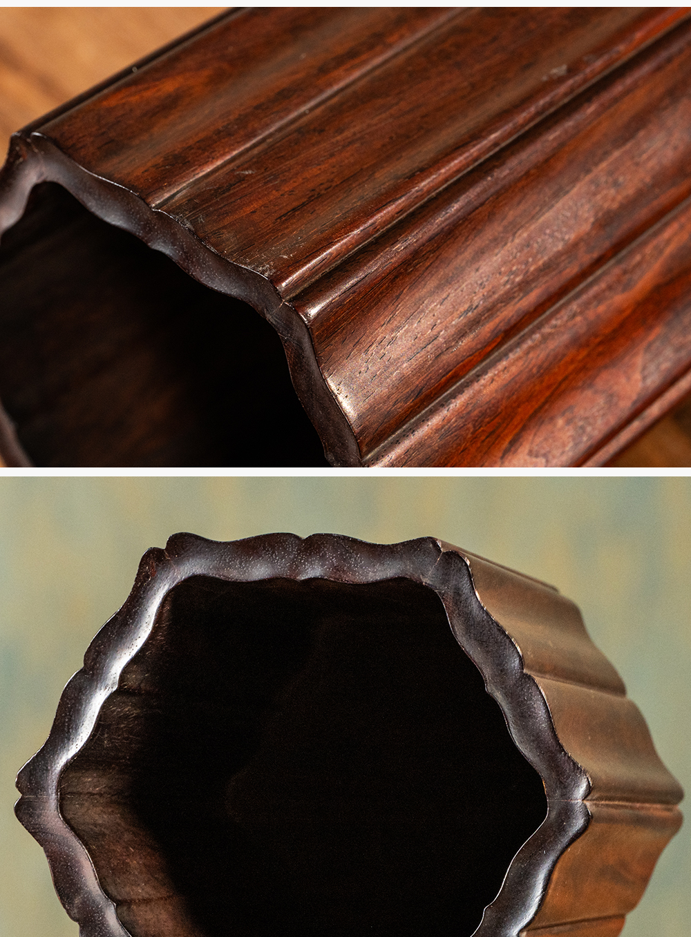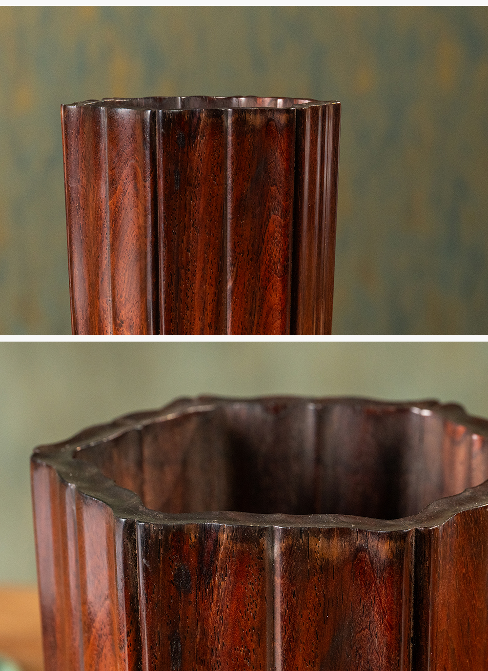 清 红木六角瓜棱笔筒