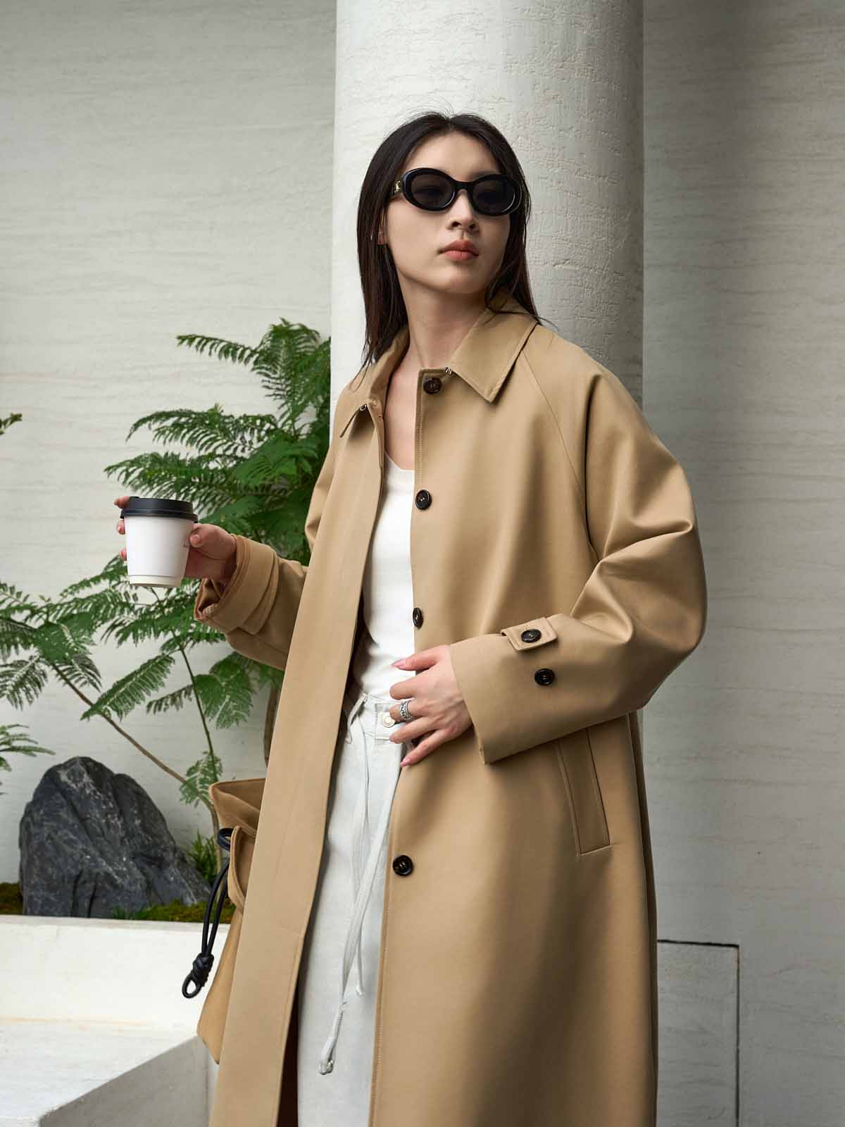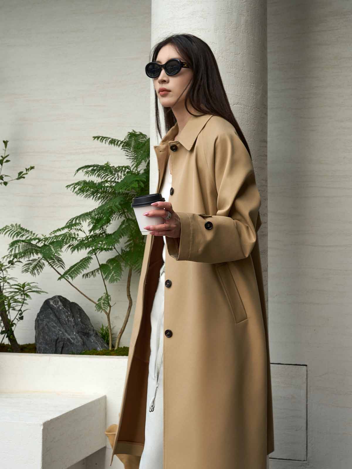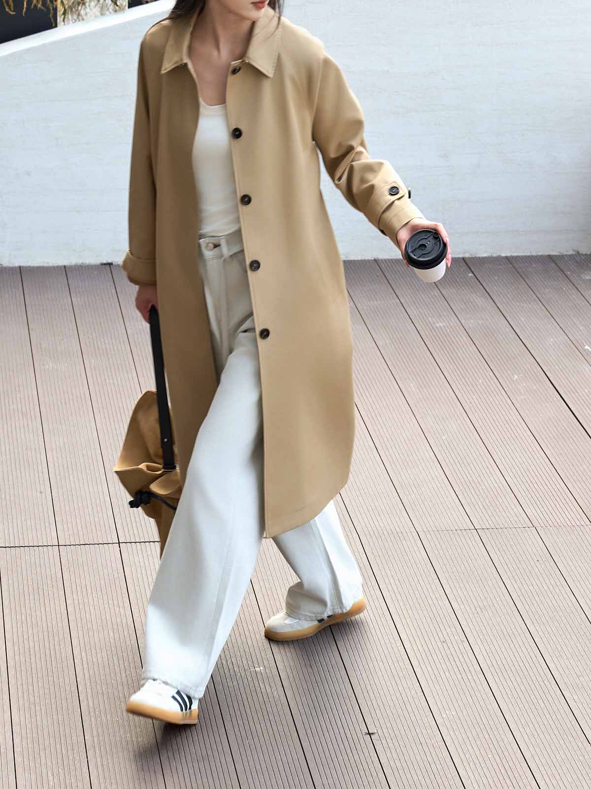 时髦秋冬利器| 通勤简约翻领长款风衣外套,又美又飒