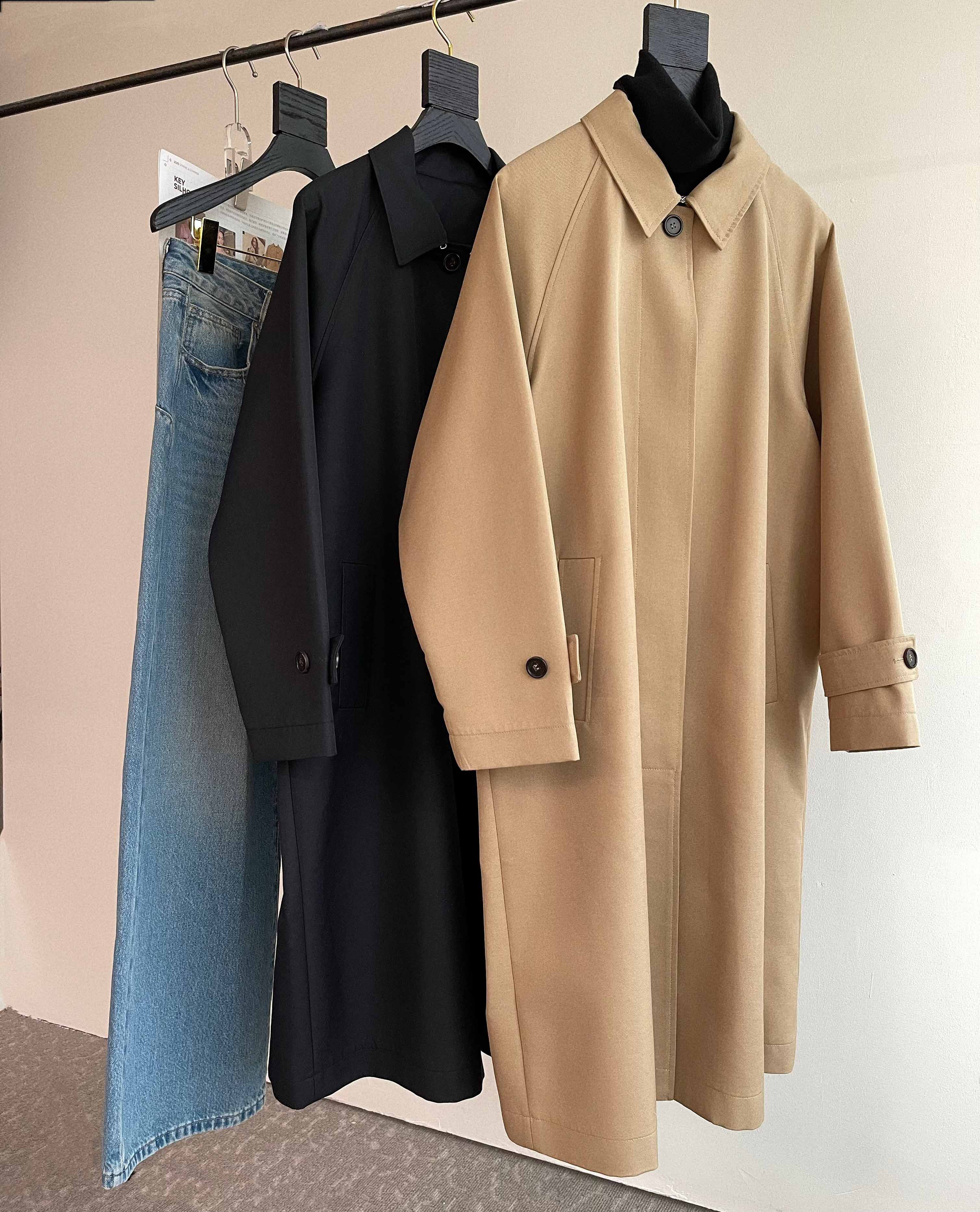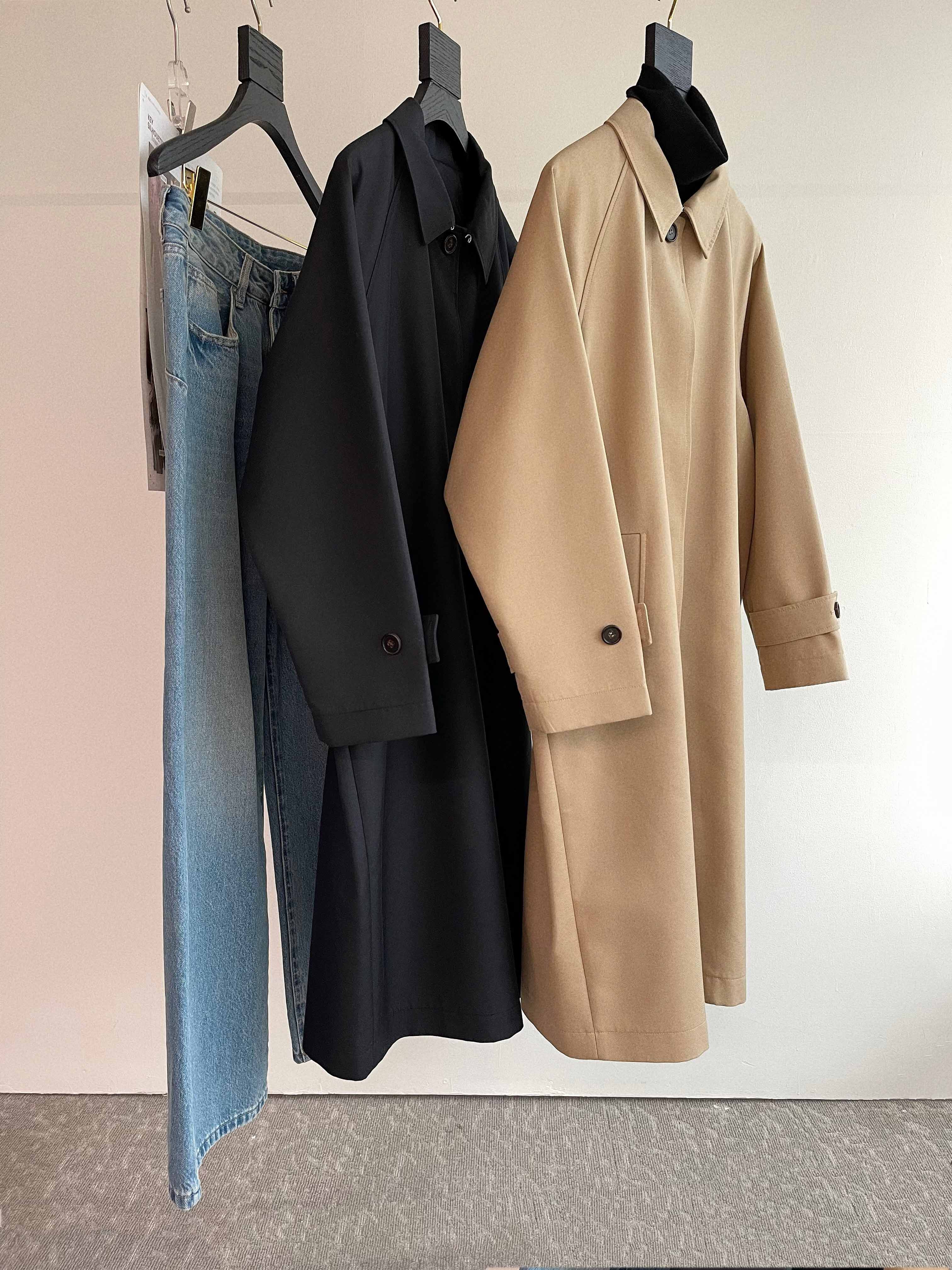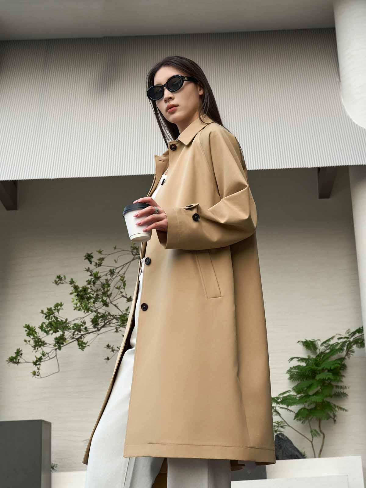 时髦秋冬利器| 通勤简约翻领长款风衣外套,又美又飒