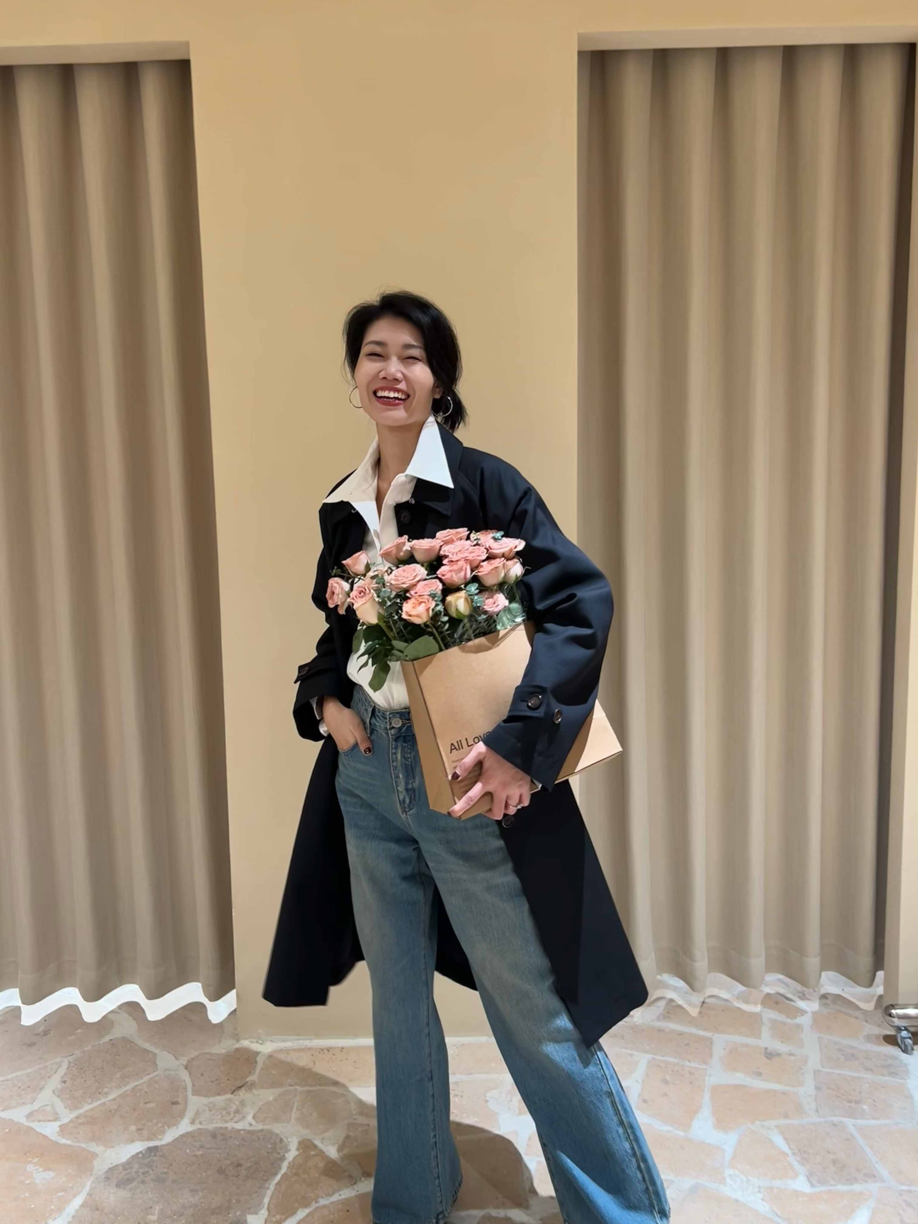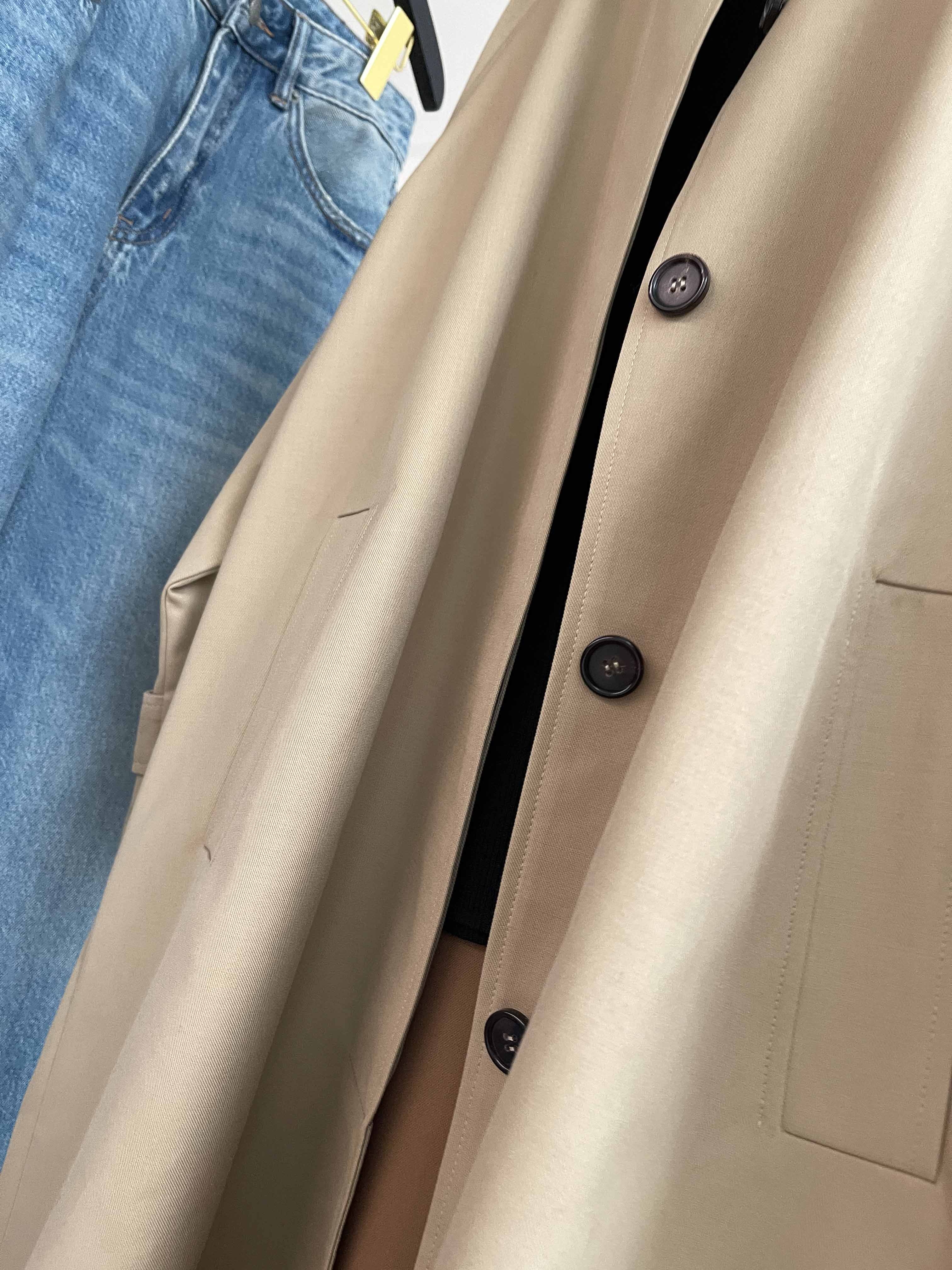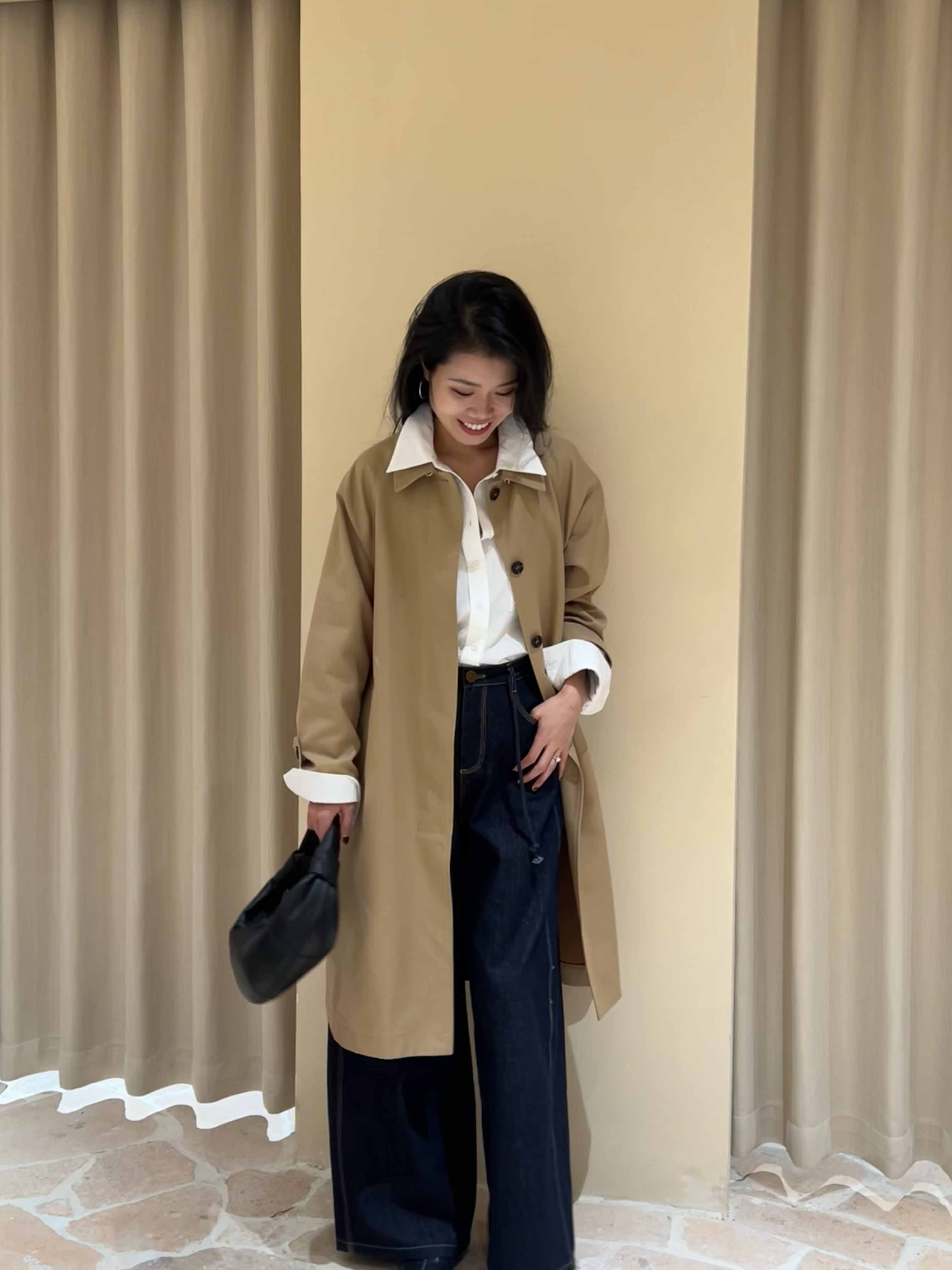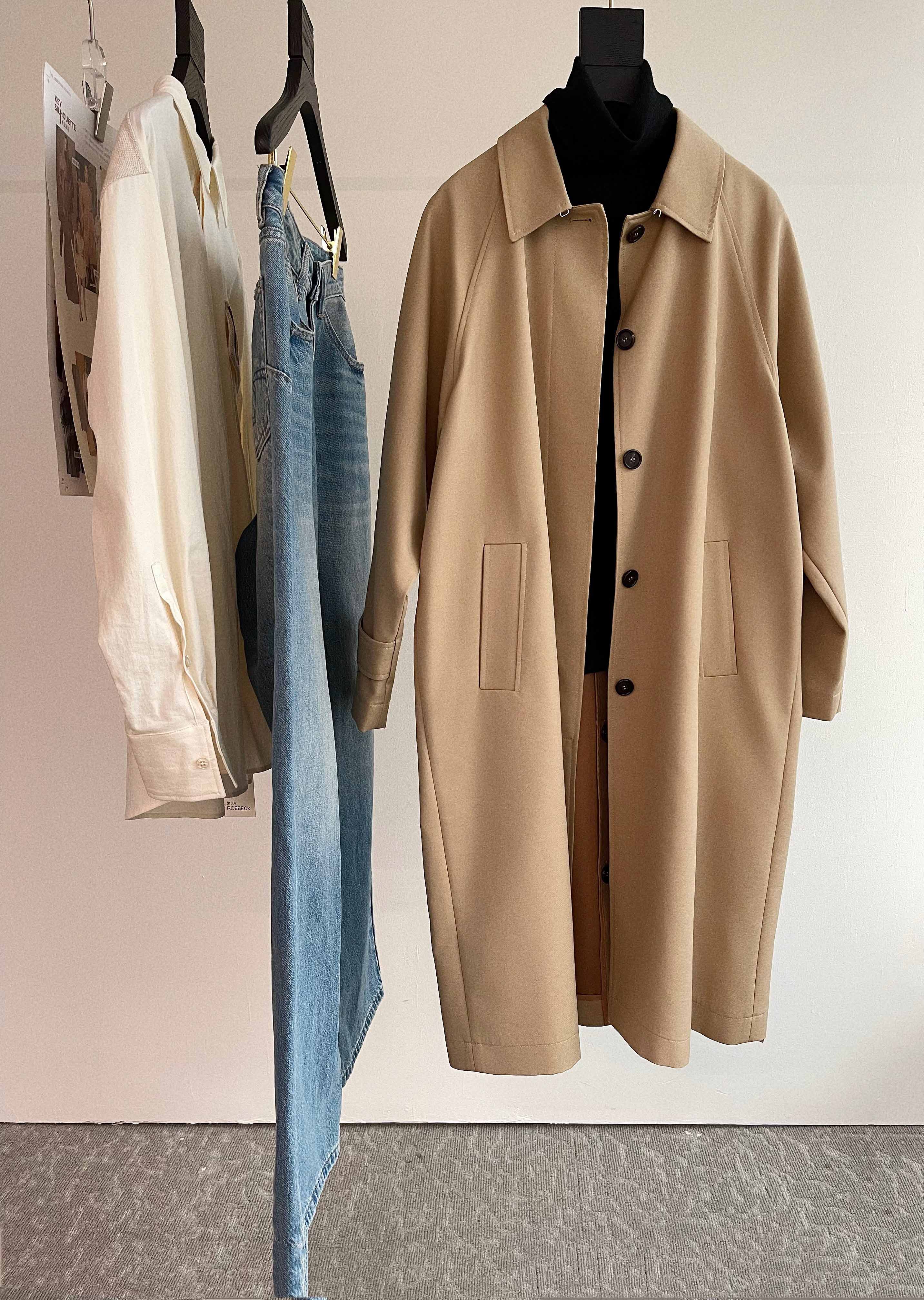 宽大的廓形风衣,包容性强,结合茧型连袖,颇有时髦造型感,辨识度很高