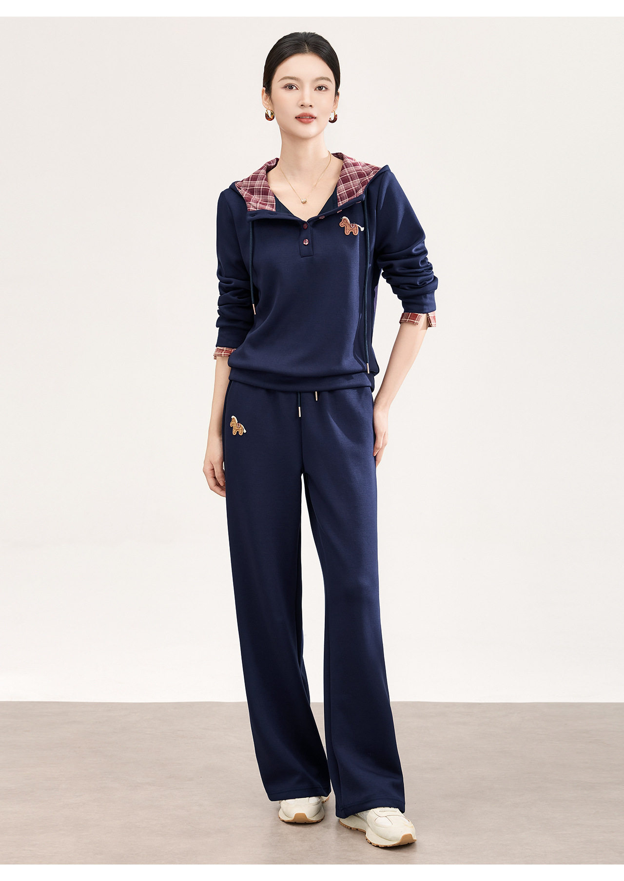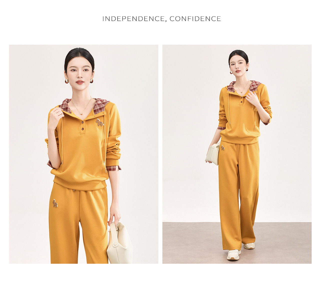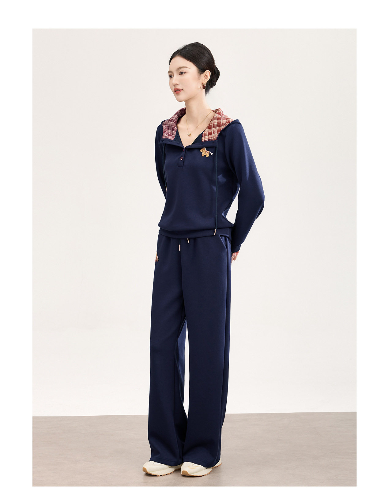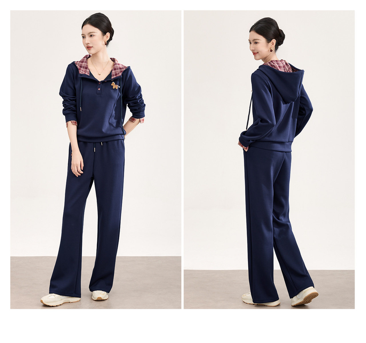 「高货wl」全新升级【铂金会员321/天猫429/差价108】(99004)洛诗琳2026春季盐系运动风连帽撞色卫衣休闲阔腿裤两件套