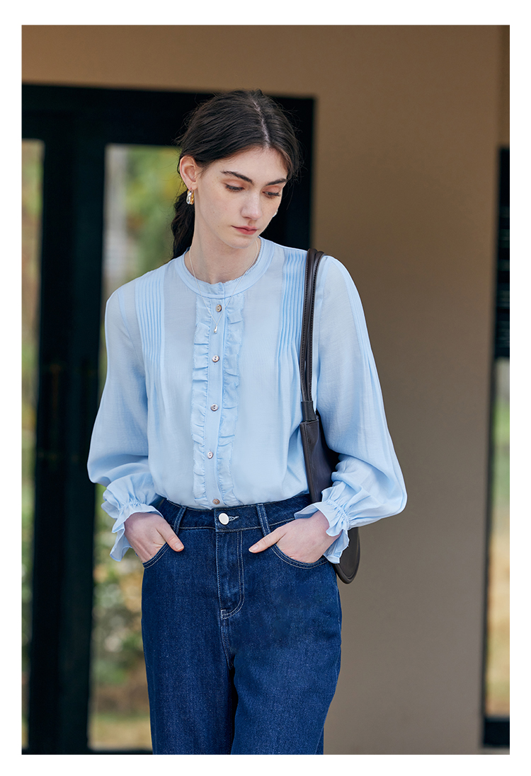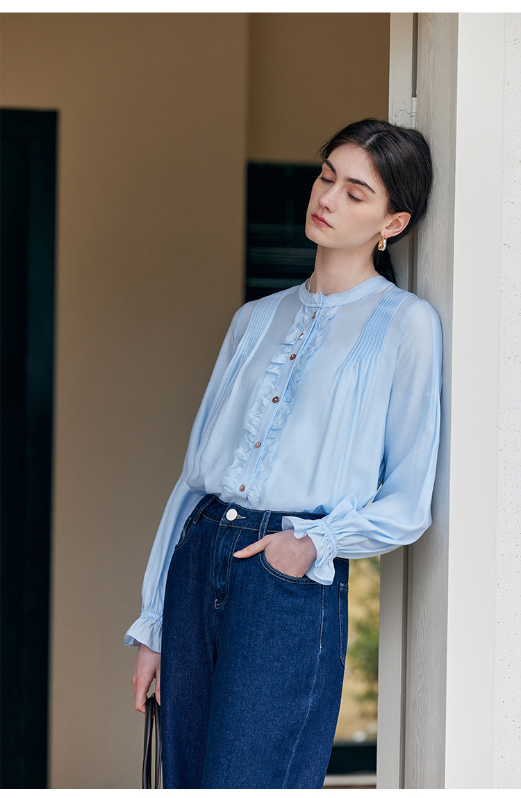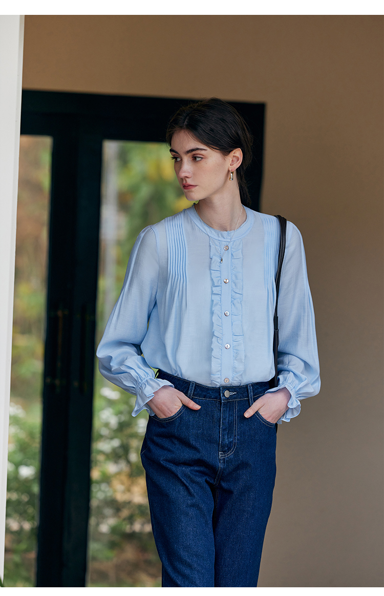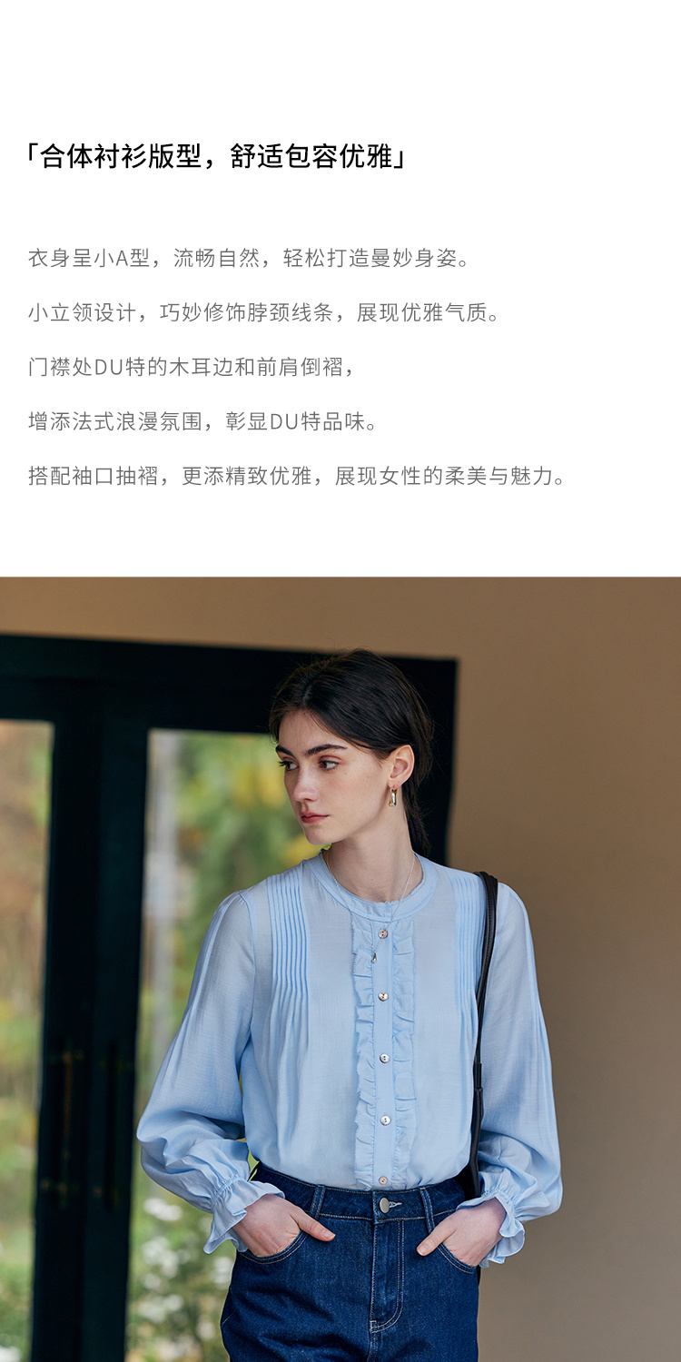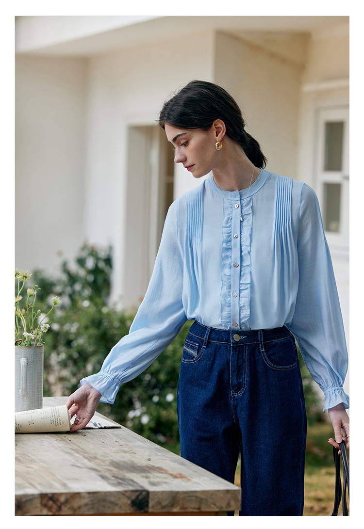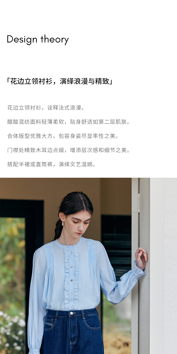 HeyDress法式花边醋酸衬衫女春季复古宽松立领宫廷风浪漫气质上衣
