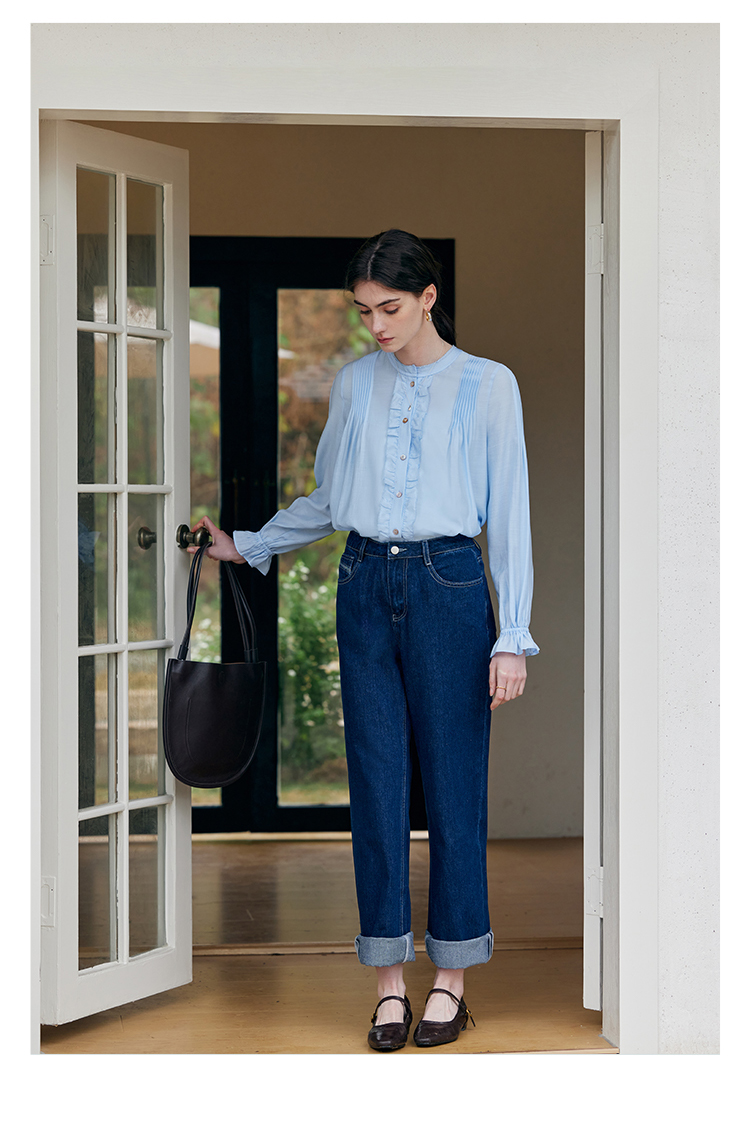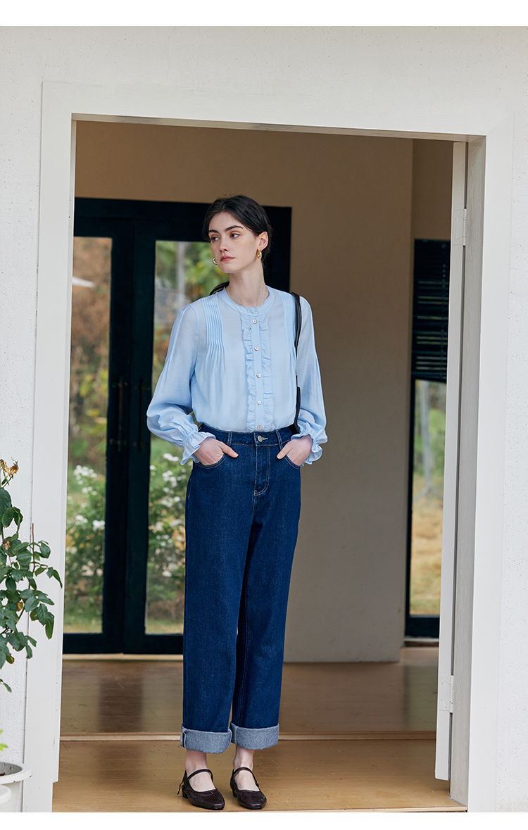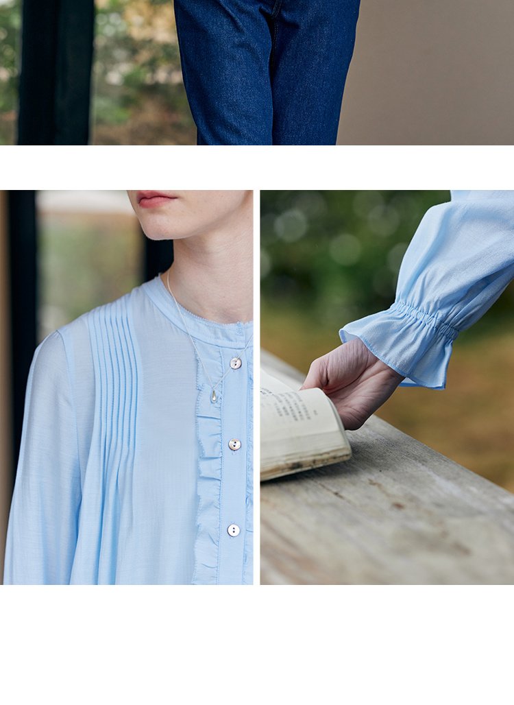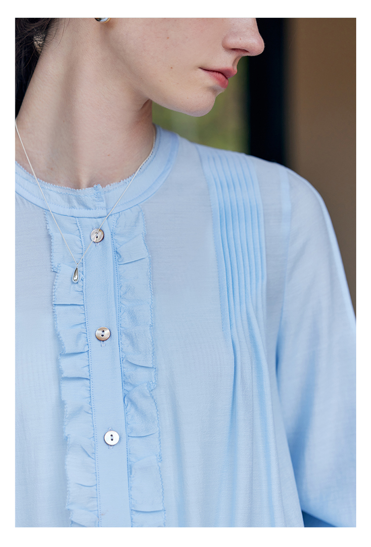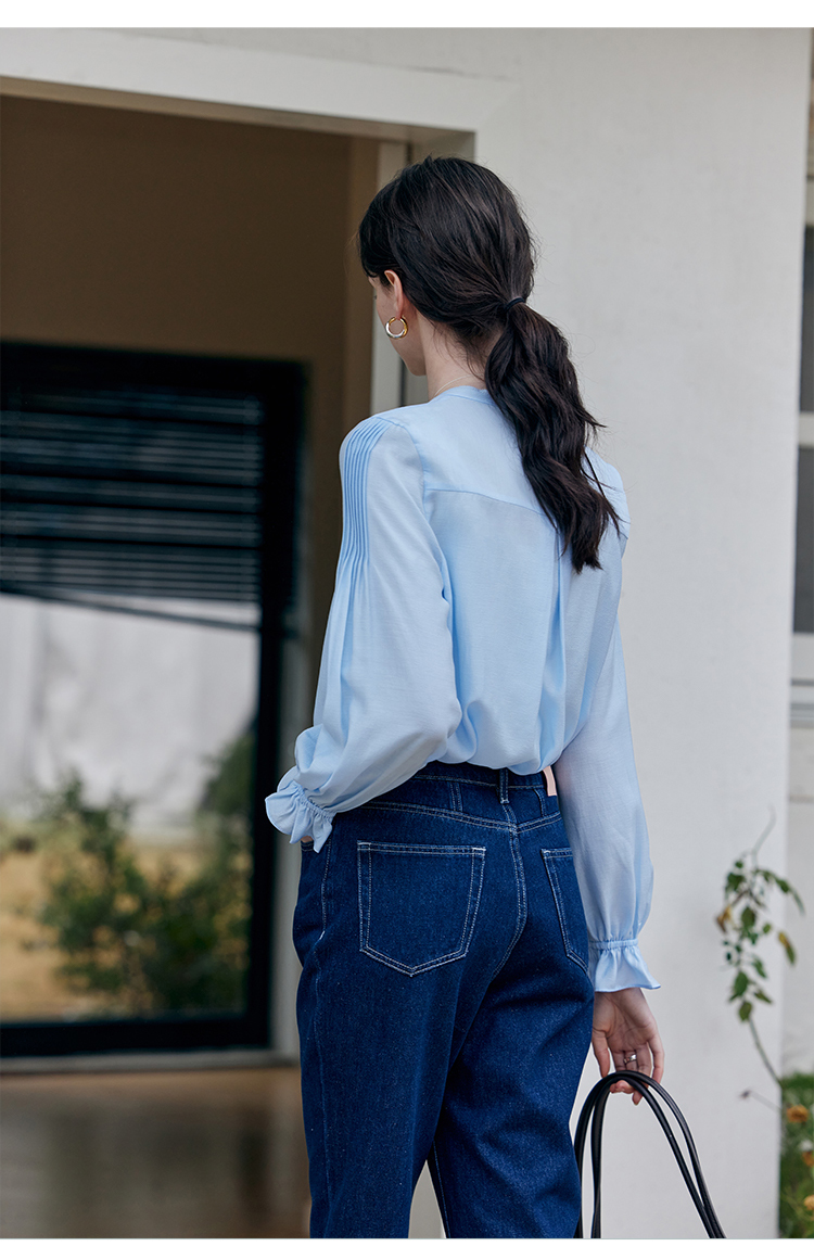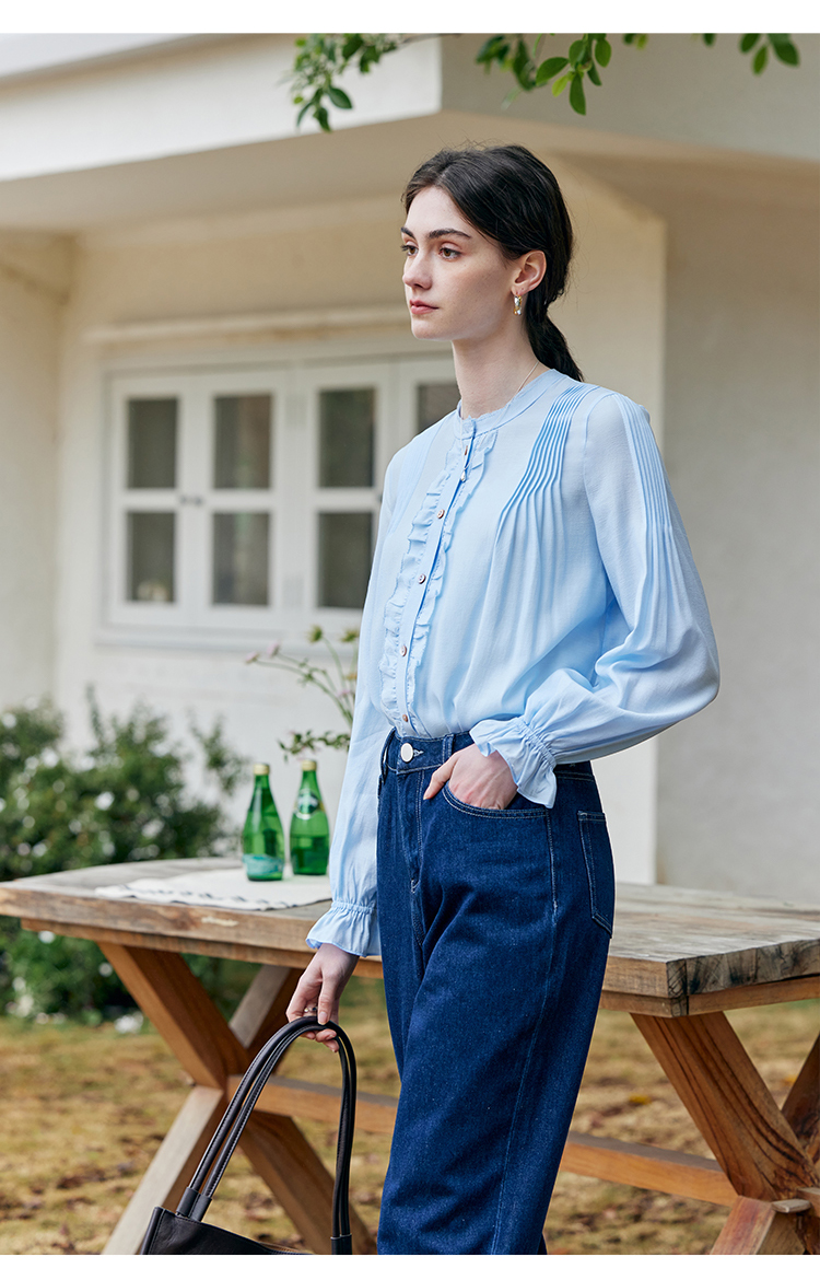 HeyDress法式花边醋酸衬衫女春季复古宽松立领宫廷风浪漫气质上衣