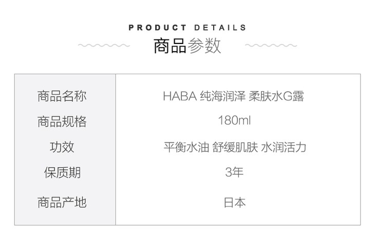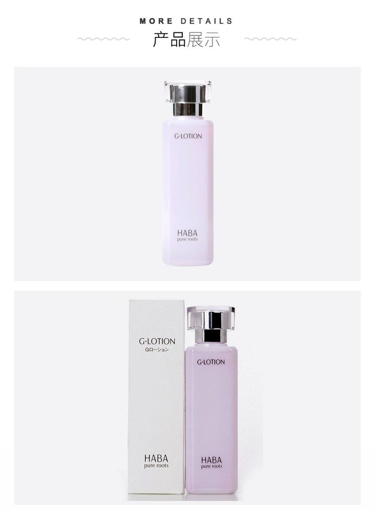 日本HABA无添加补水保湿润泽柔肤水G露化妆水180mlHABA的G露🔆無添加主義」著稱:🌸不含防腐劑、酒精、石化界面活性劑、殺菌劑、香料香精等,💡敏感肌的妹子們眼睛亮起來啦!🍓孕媽媽也可以用哦💪🏻~保濕成分透明質酸等天然精華成分,💦清爽的使用感覺,肌膚水嫩肌膚㊙️傳說中的日本皇室御用美肌配方🌻促進肌膚再生、舒緩,有效安撫脆弱或受刺激肌膚,🌈深層活化修護,散發紅潤光採☘️