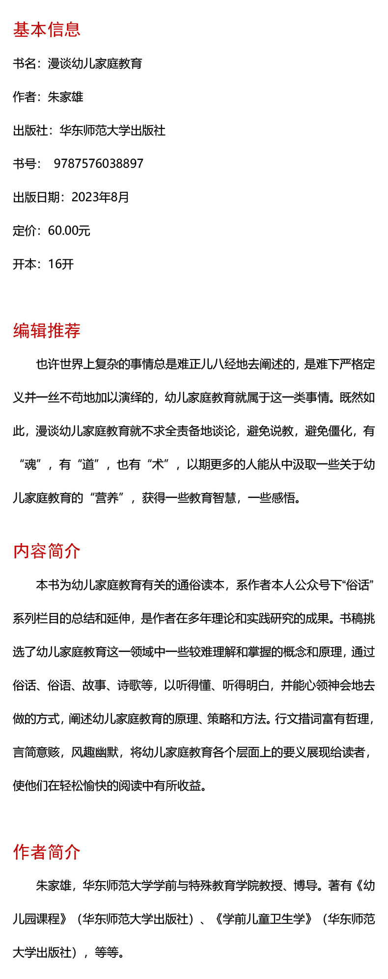 【朱家雄教授育儿系列书籍】幼儿识字与早期阅读 我的幼儿教育故事 漫谈幼儿家庭教育 趣说幼童 俗话幼儿园课程 YT