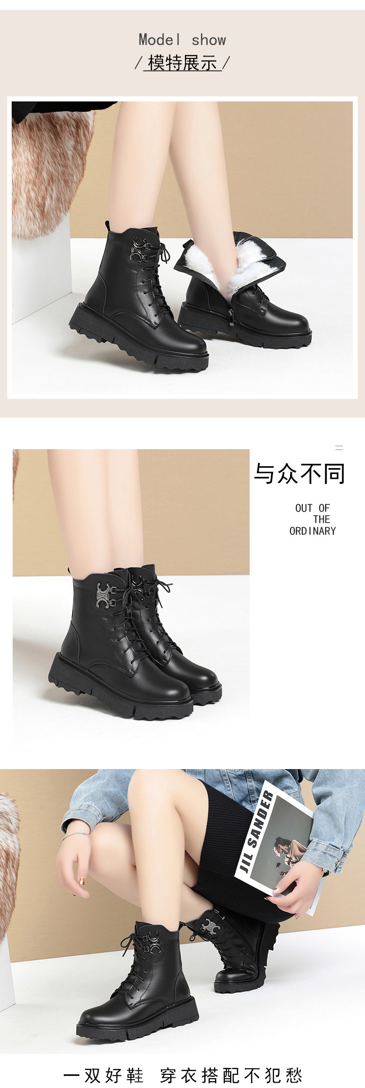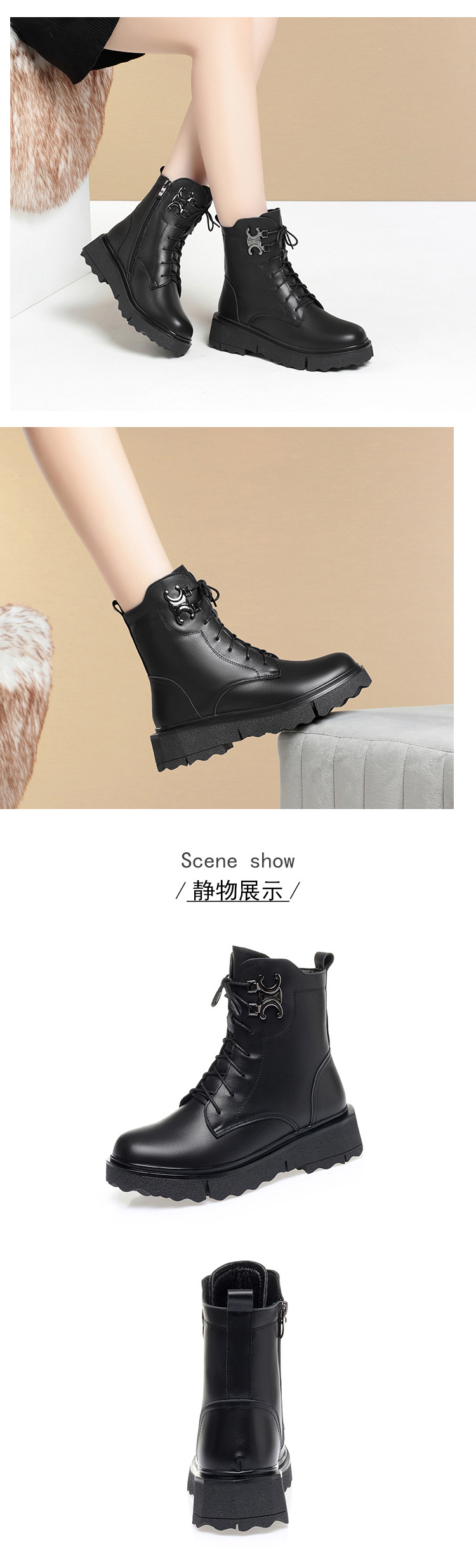 XV-DM5817跨境21秋季新款女靴中跟粗跟英伦复古马丁靴DM5817