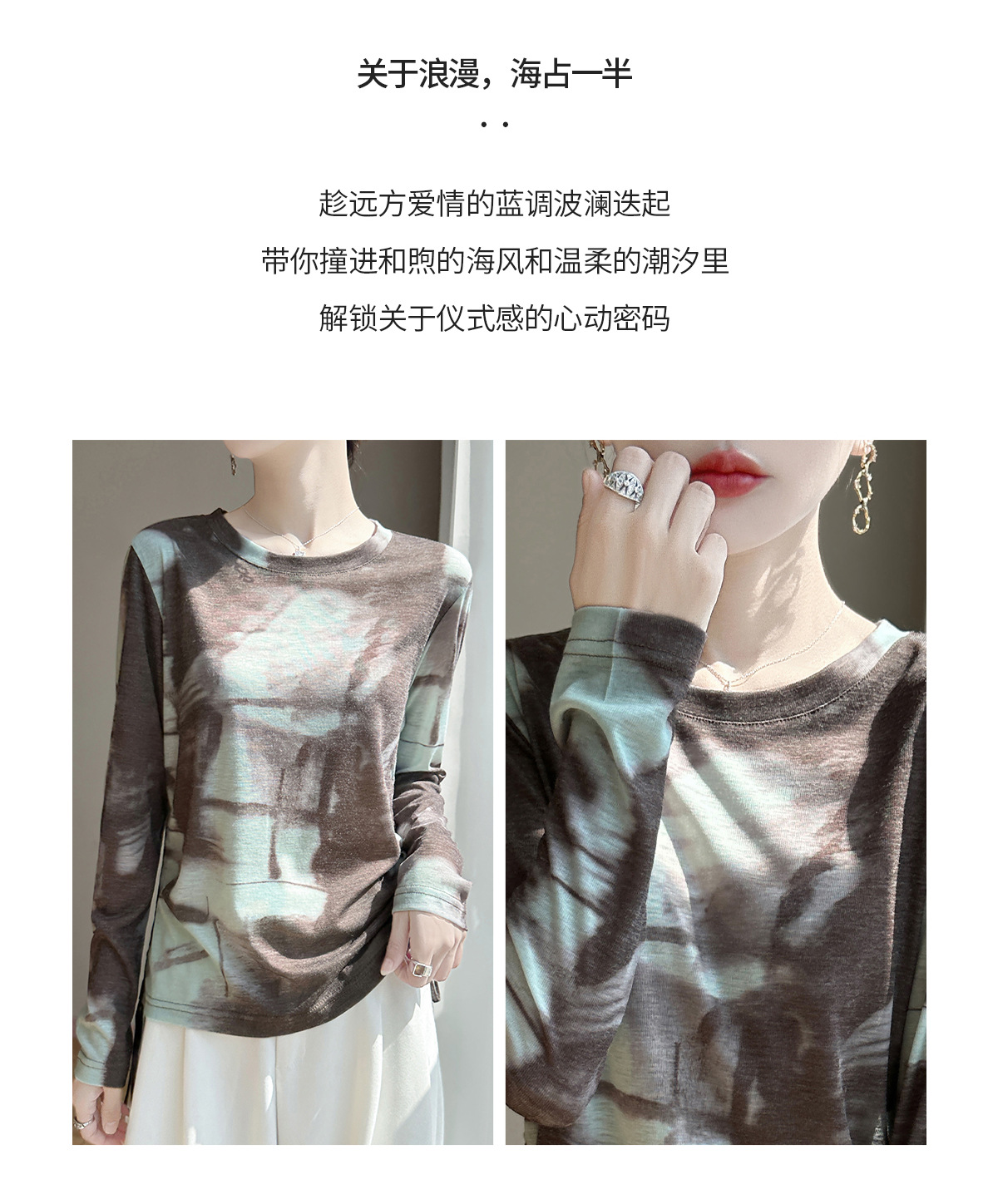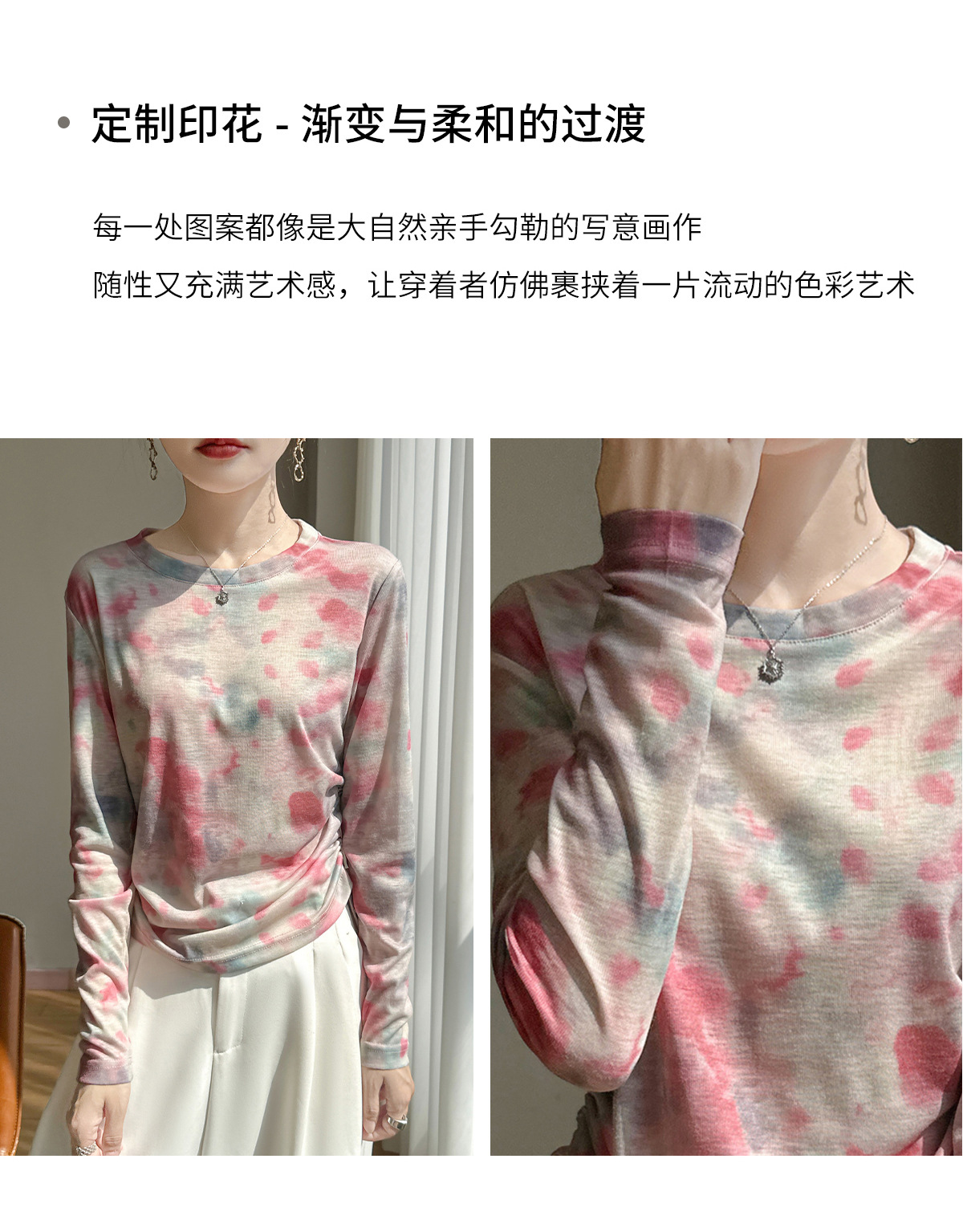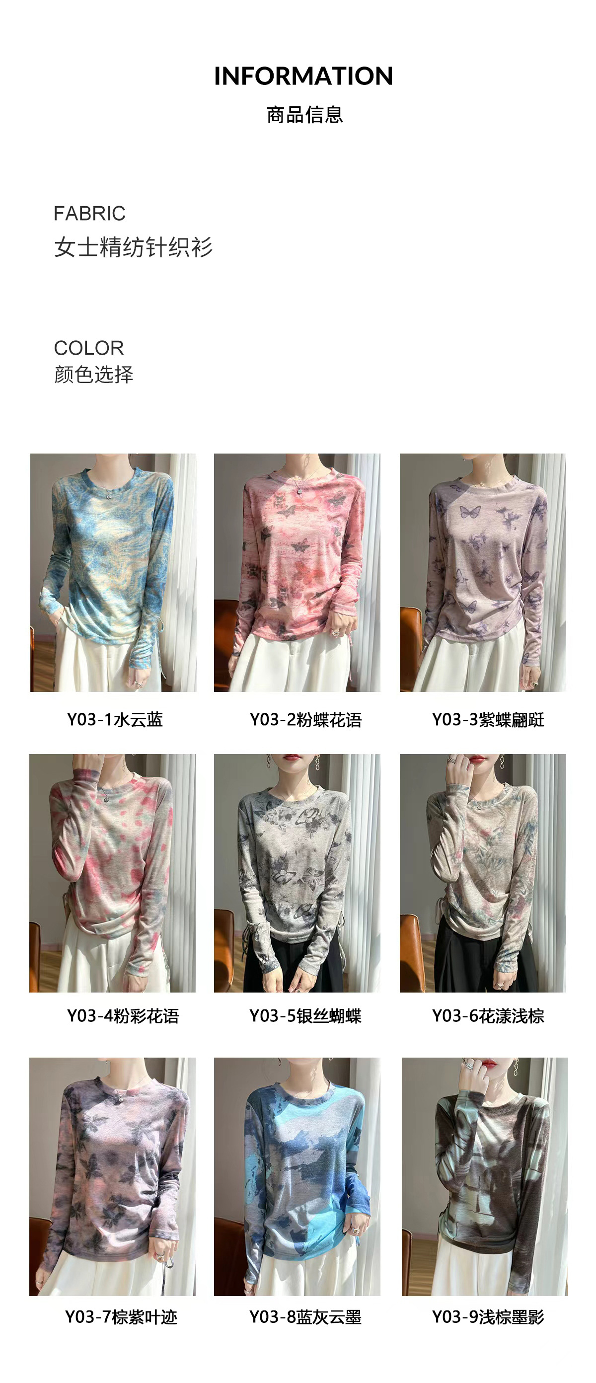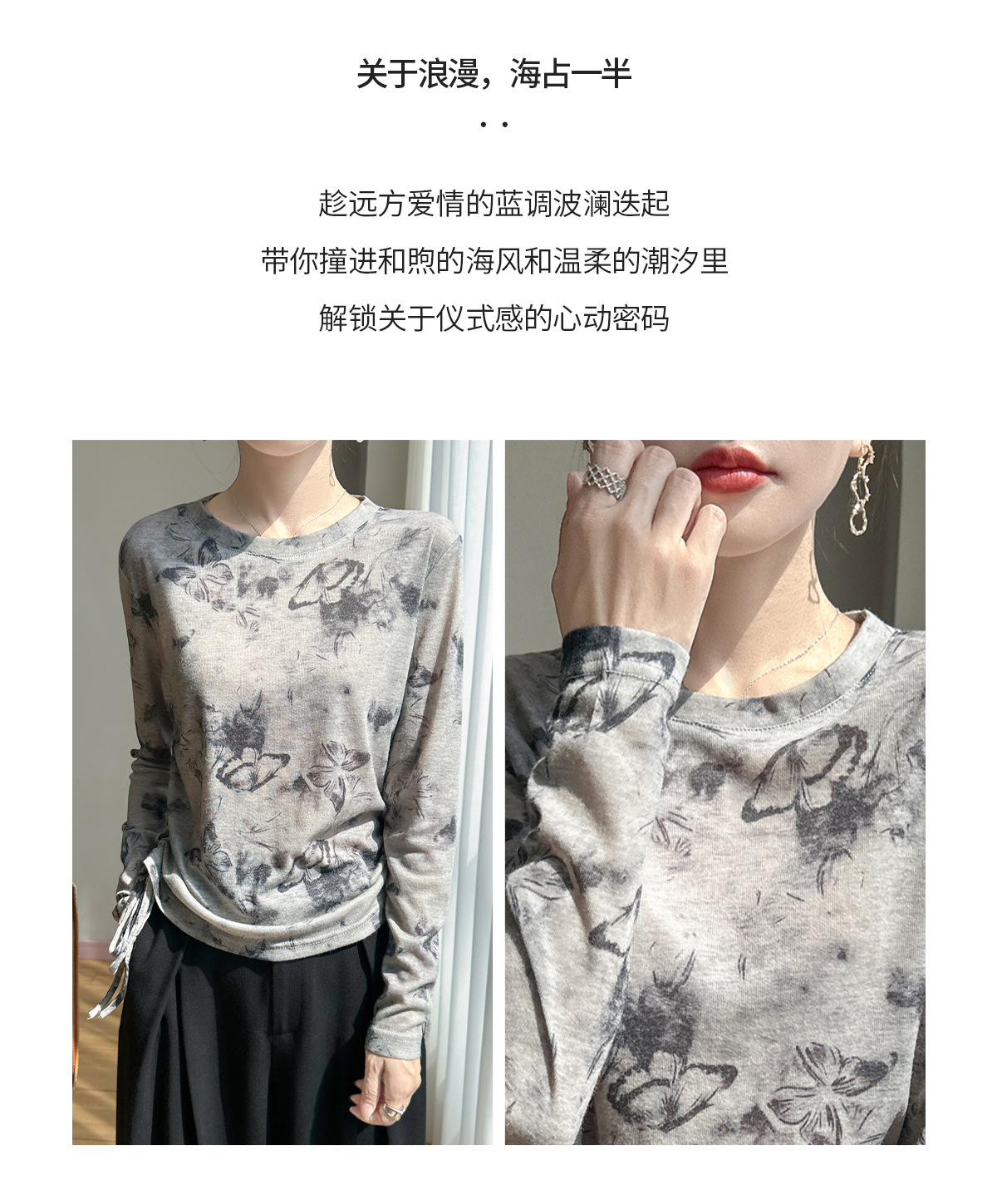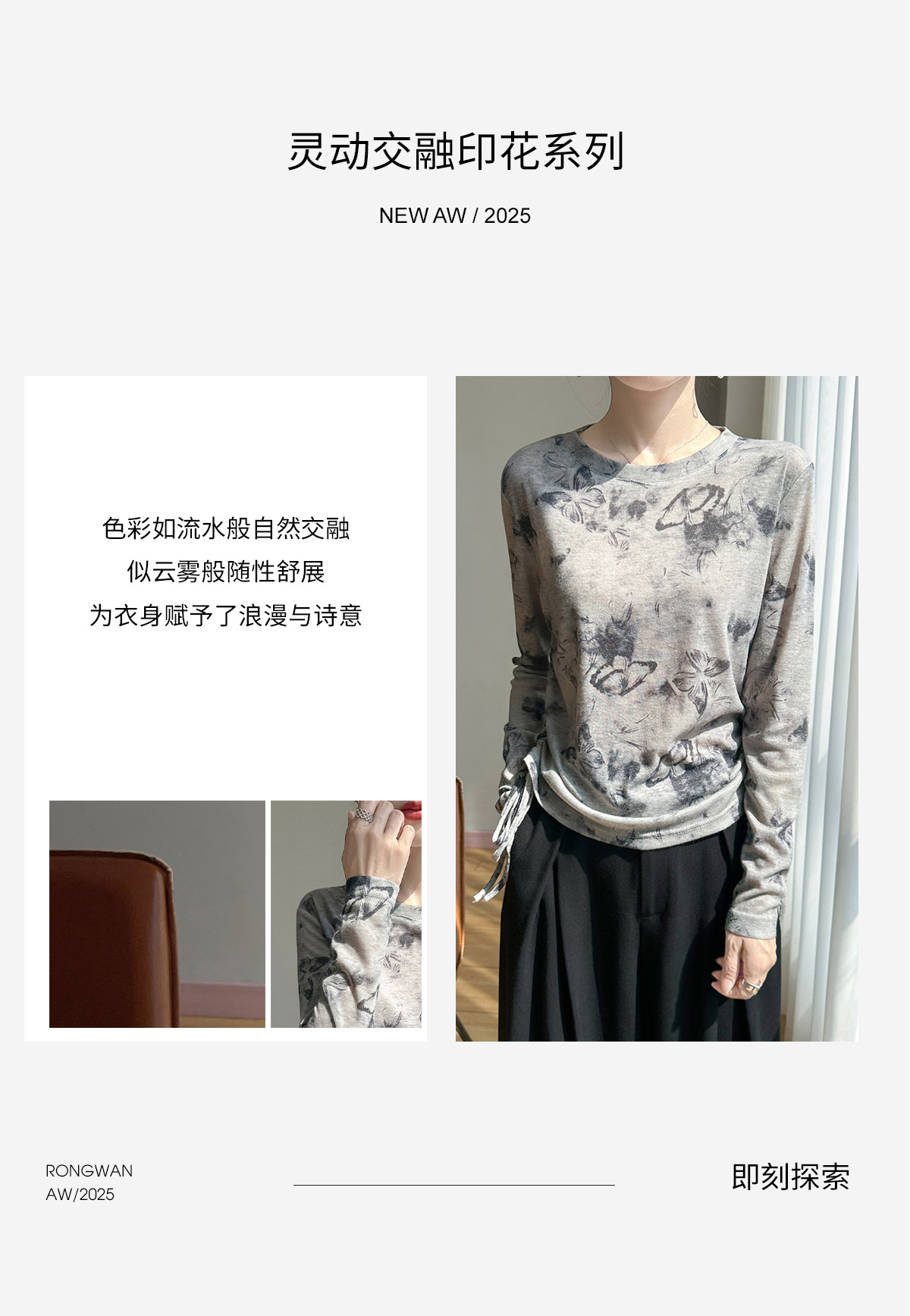 百媚生 法式设计感晕染印花针织衫女圆领长袖上衣RW-Y03-20