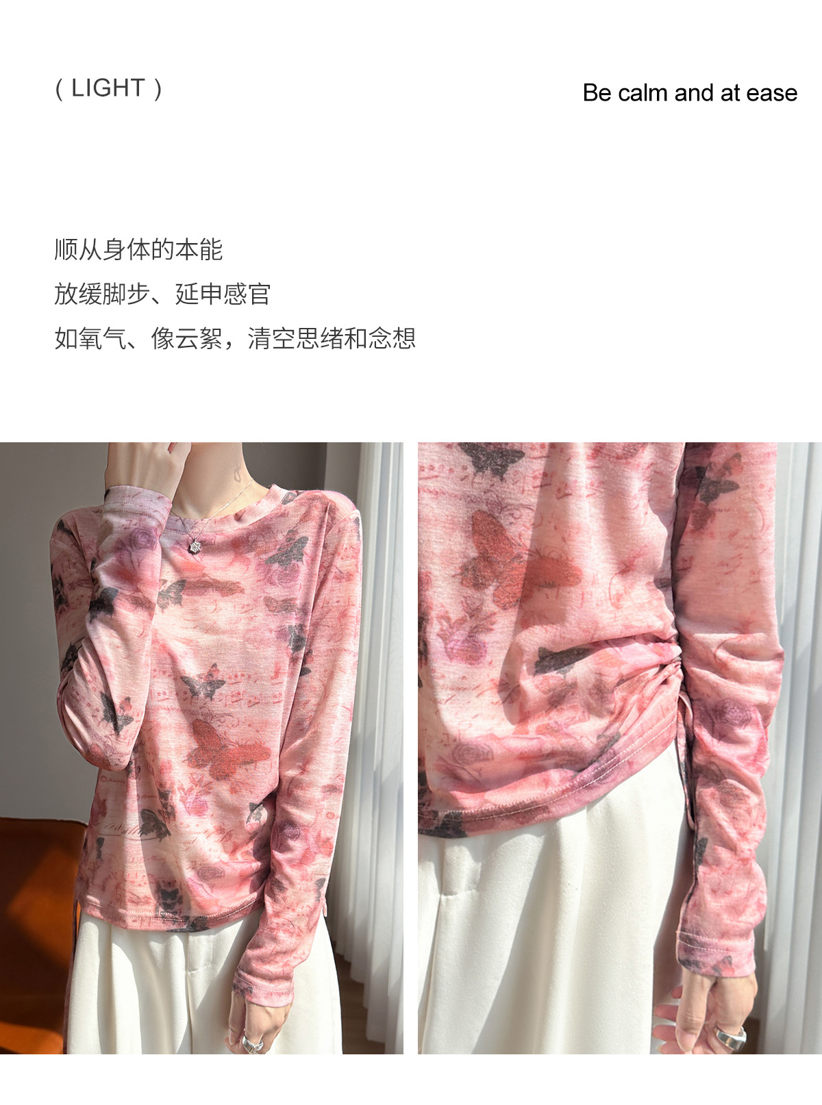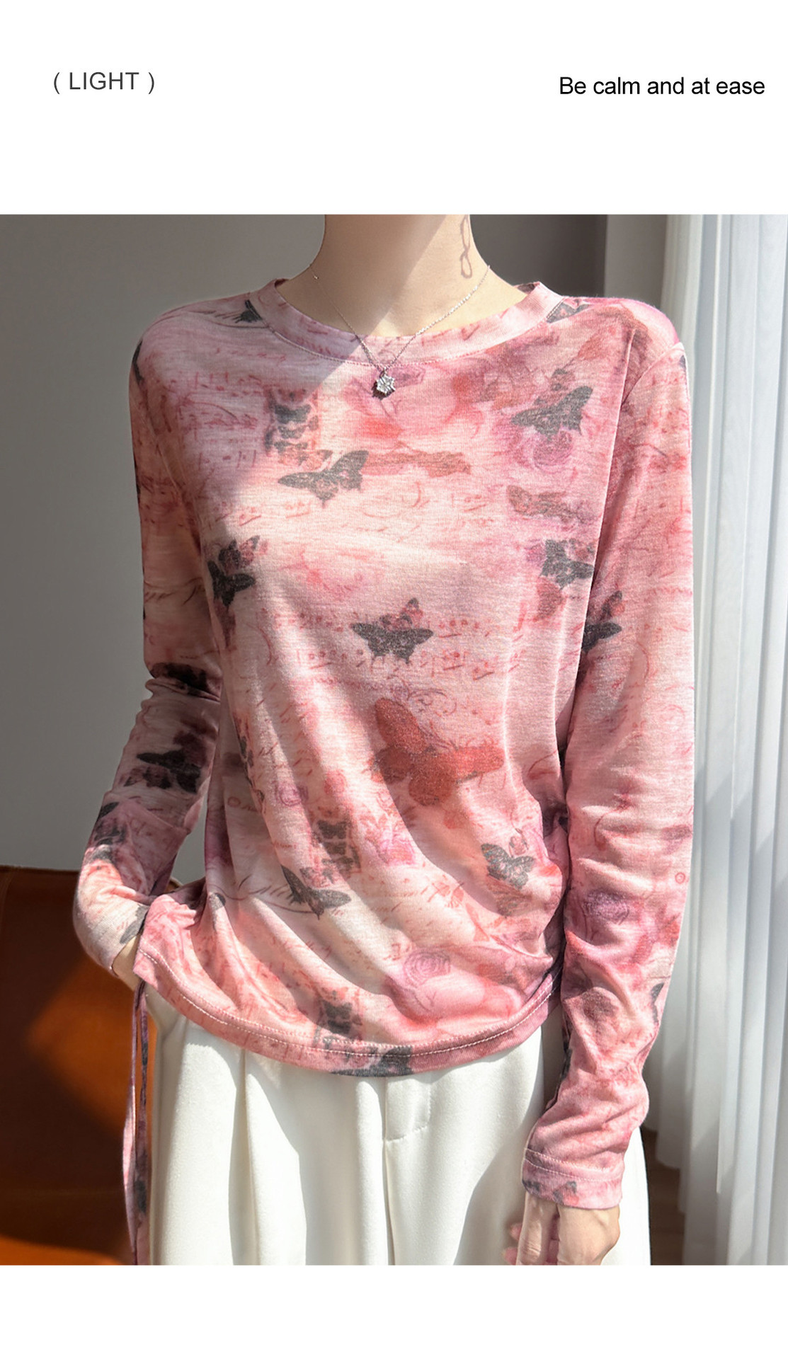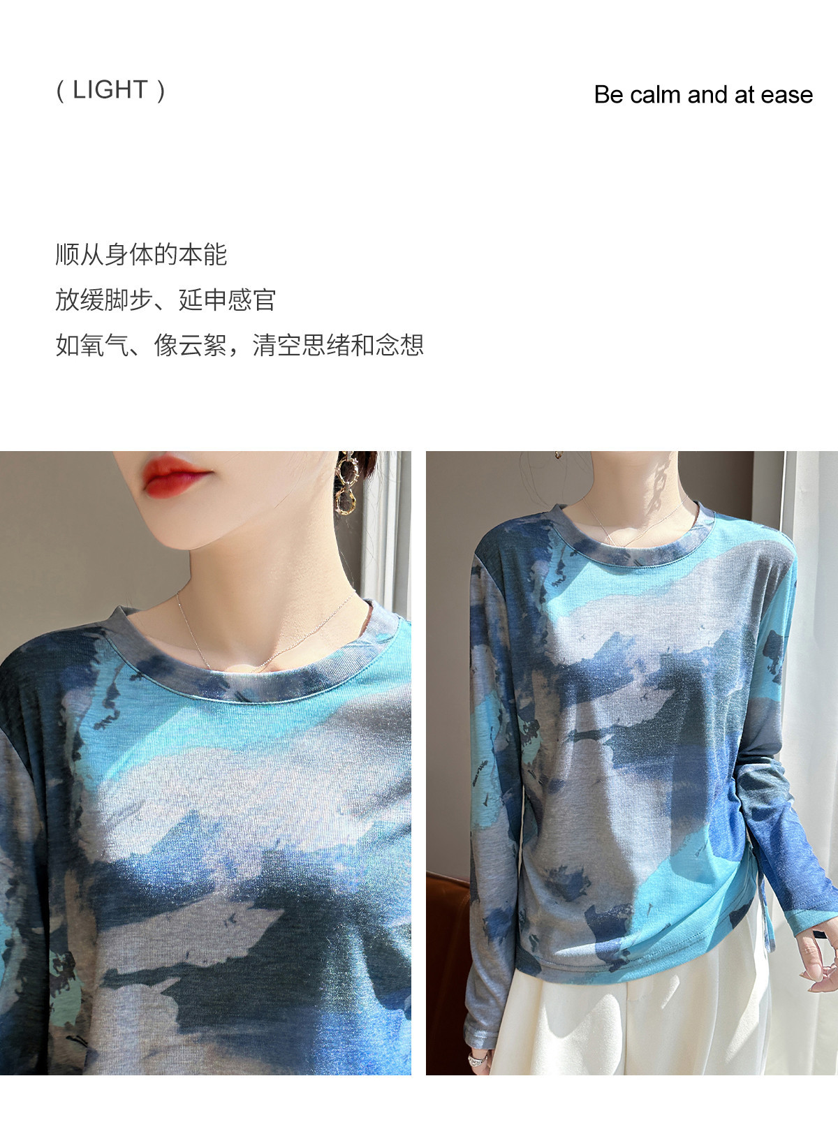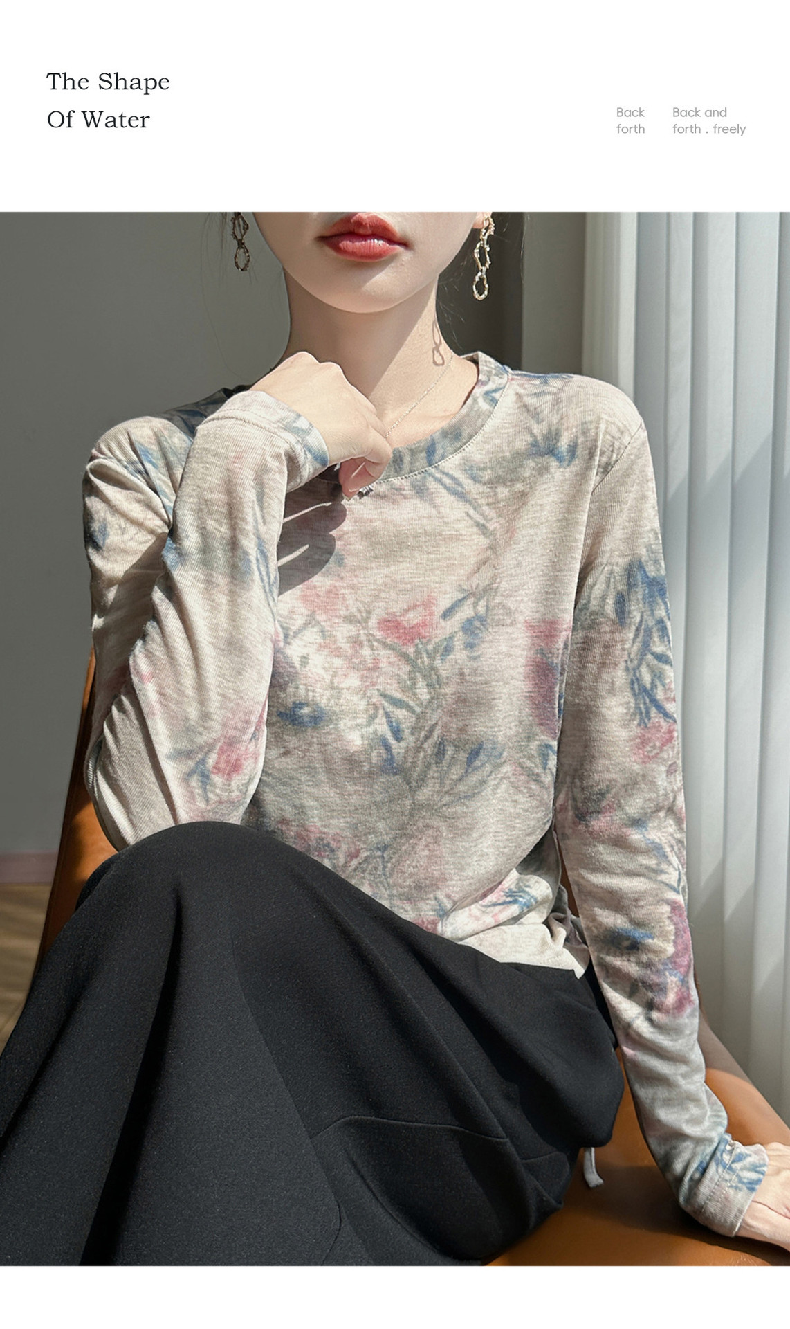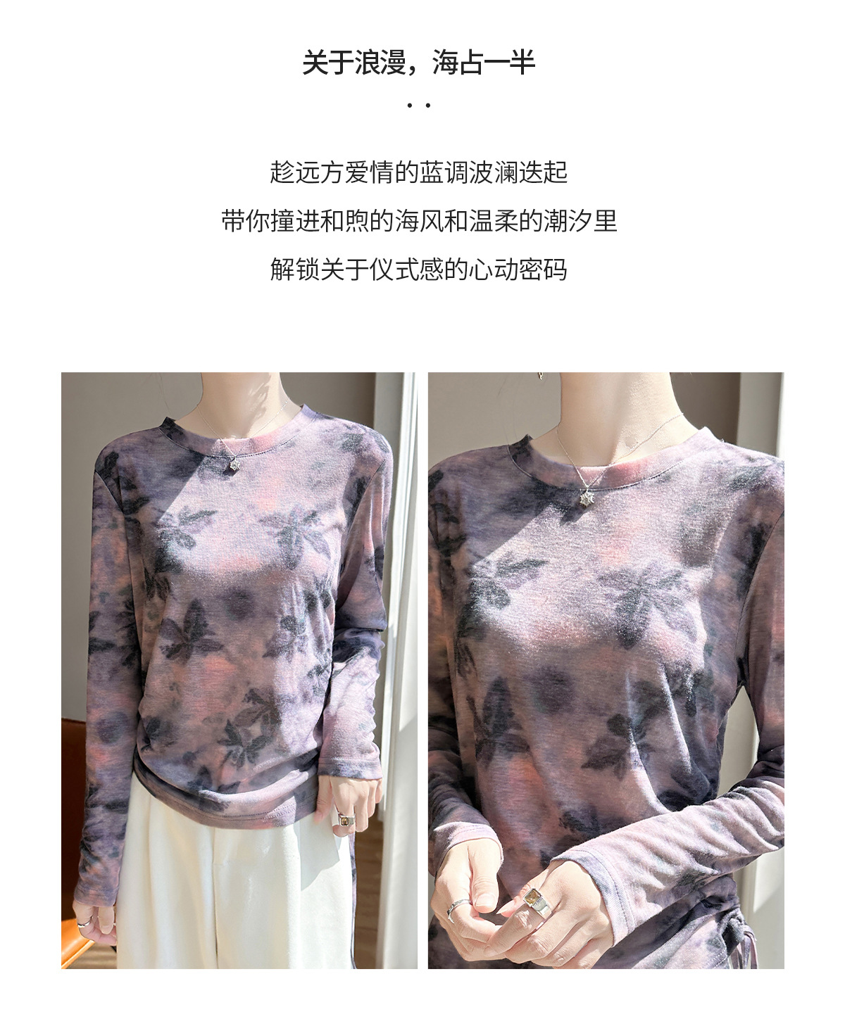 百媚生 法式设计感晕染印花针织衫女圆领长袖上衣RW-Y03-20